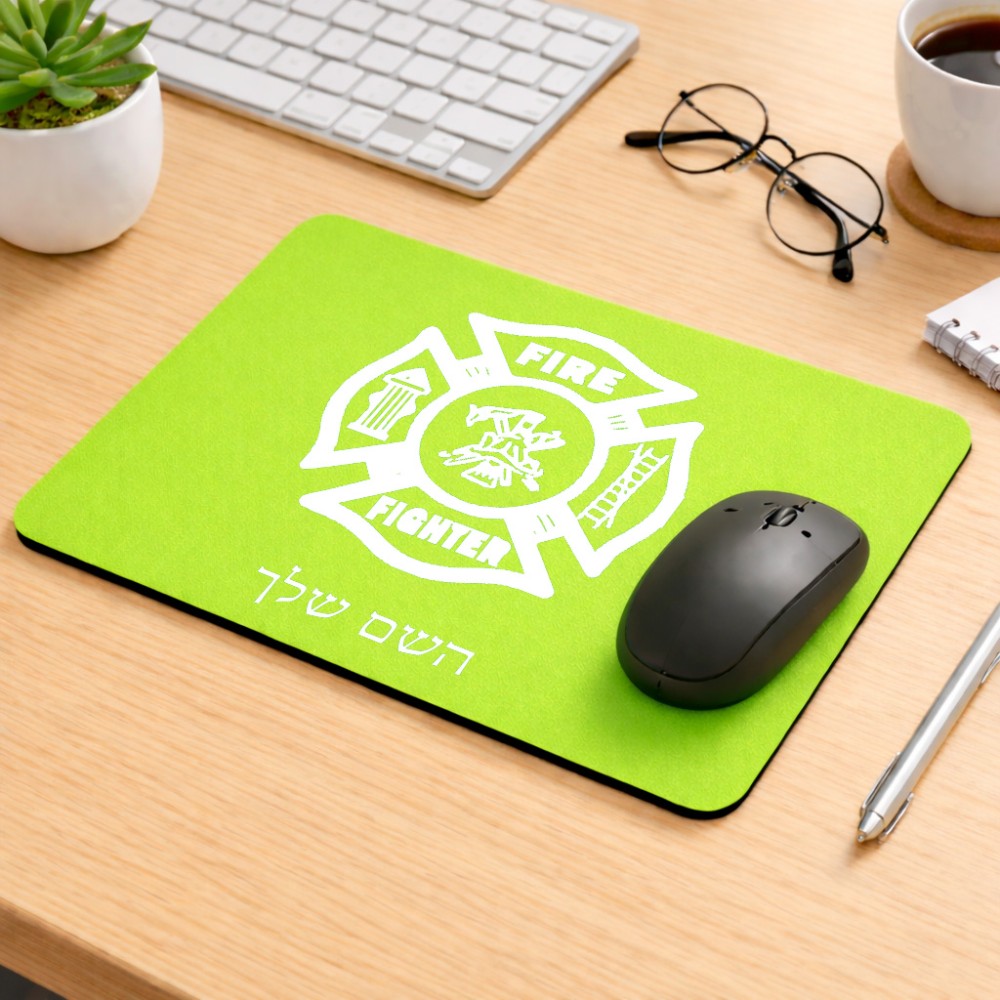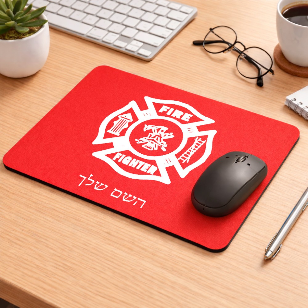 פד לעכבר בעיצוב אישי עם השם שלך בעיצוב כבאי - תגית גודל הפד 22 × 18 ס"מ. את השם המבוקש ניתן לציין בהזמנה, אם לא צויין אנחנו ניצור קשר לבירור.