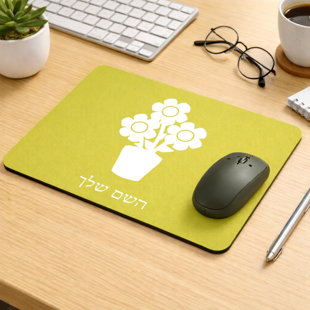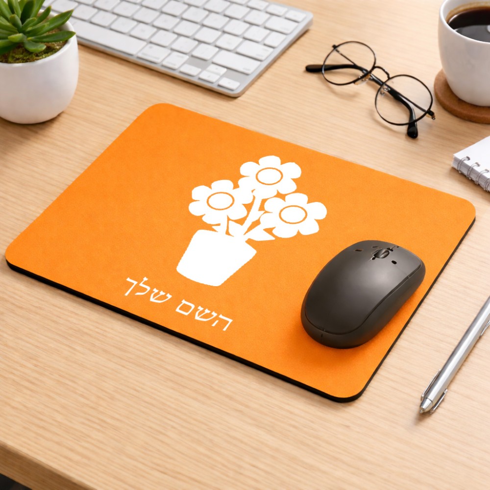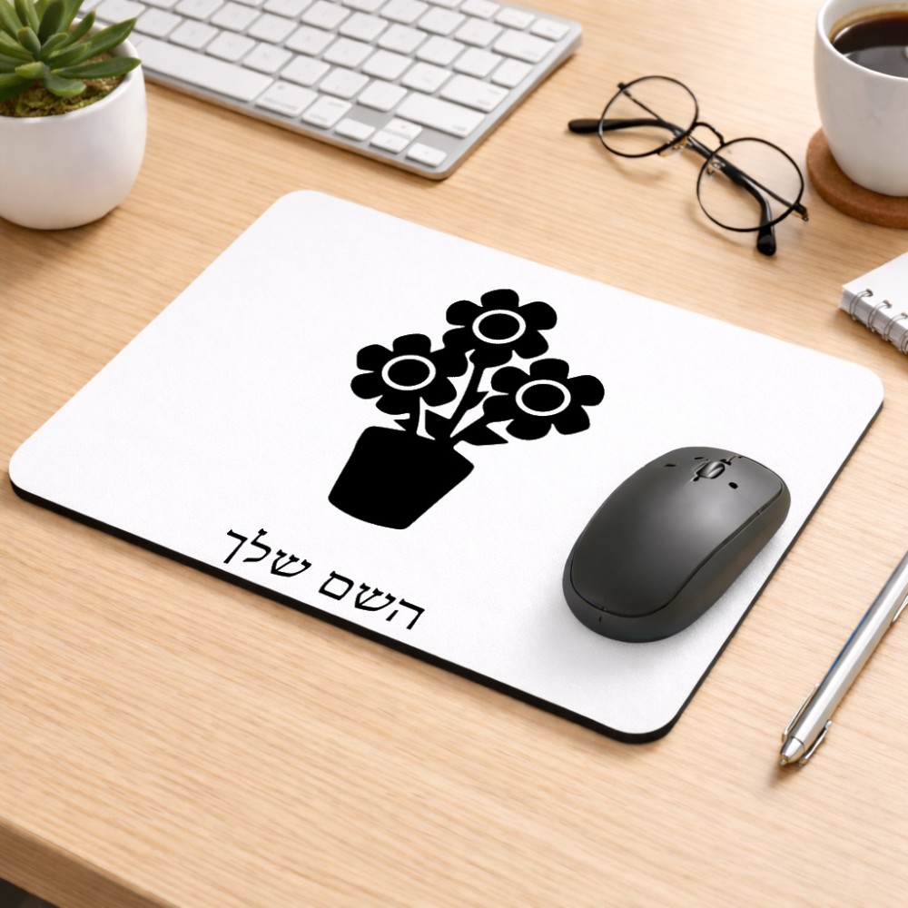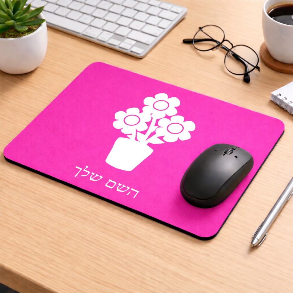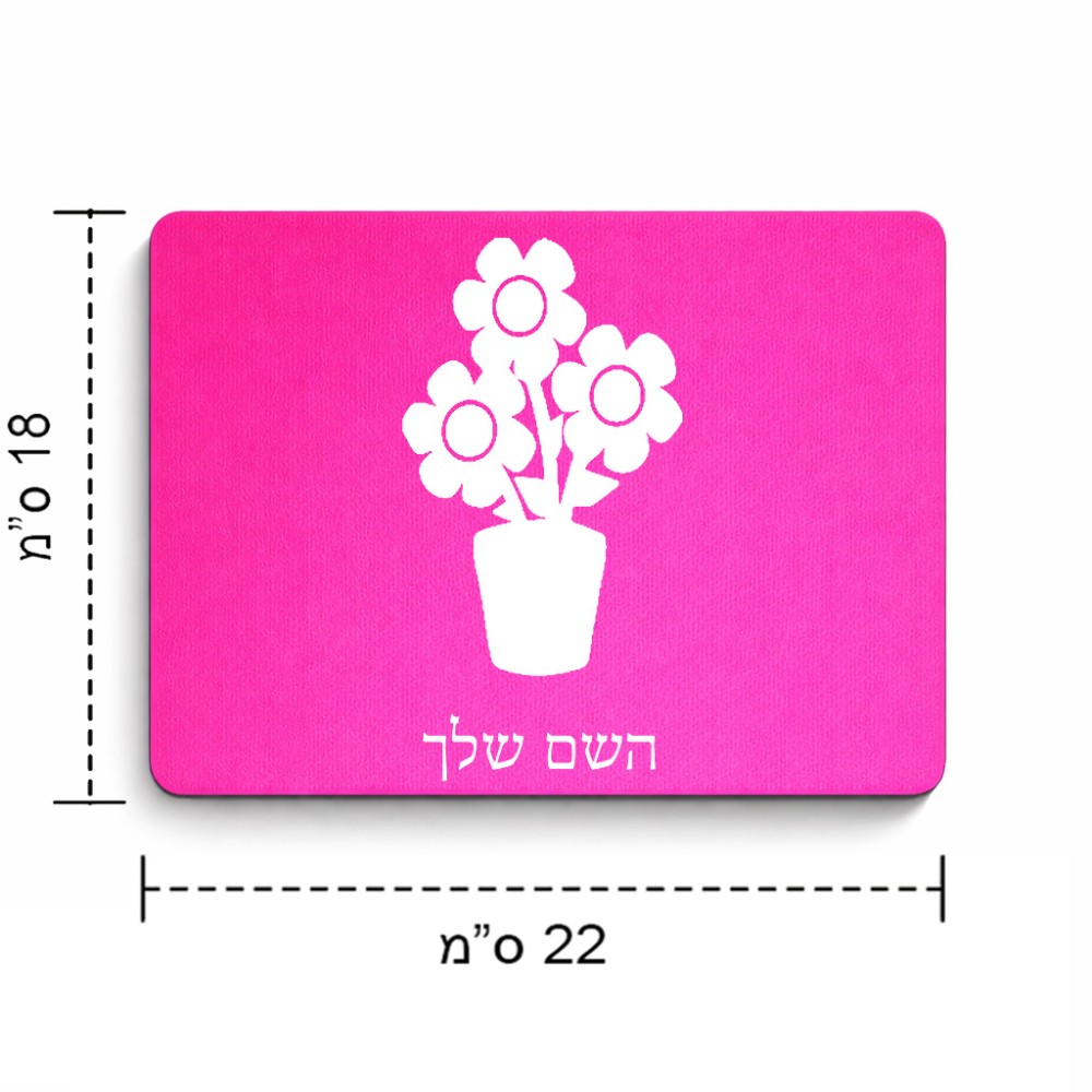 פד לעכבר בעיצוב אישי עם השם שלך בעיצוב פרח גודל הפד 22 × 18 ס"מ