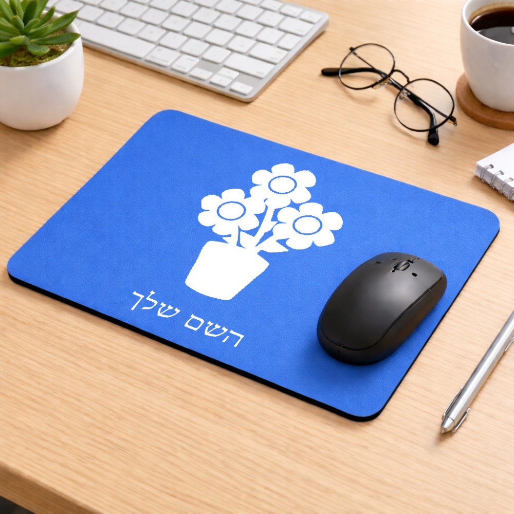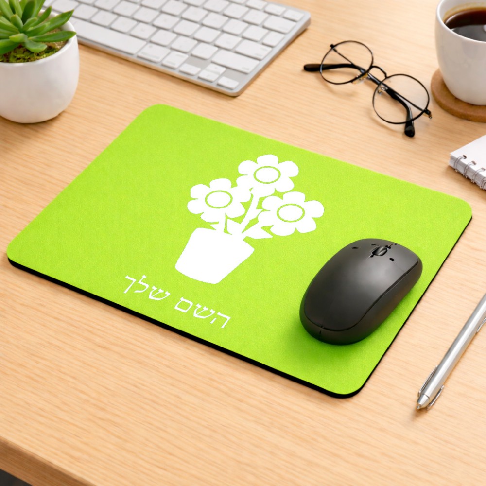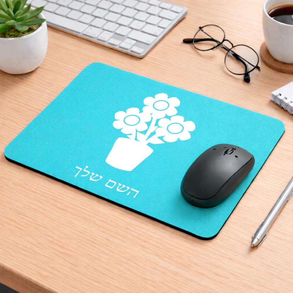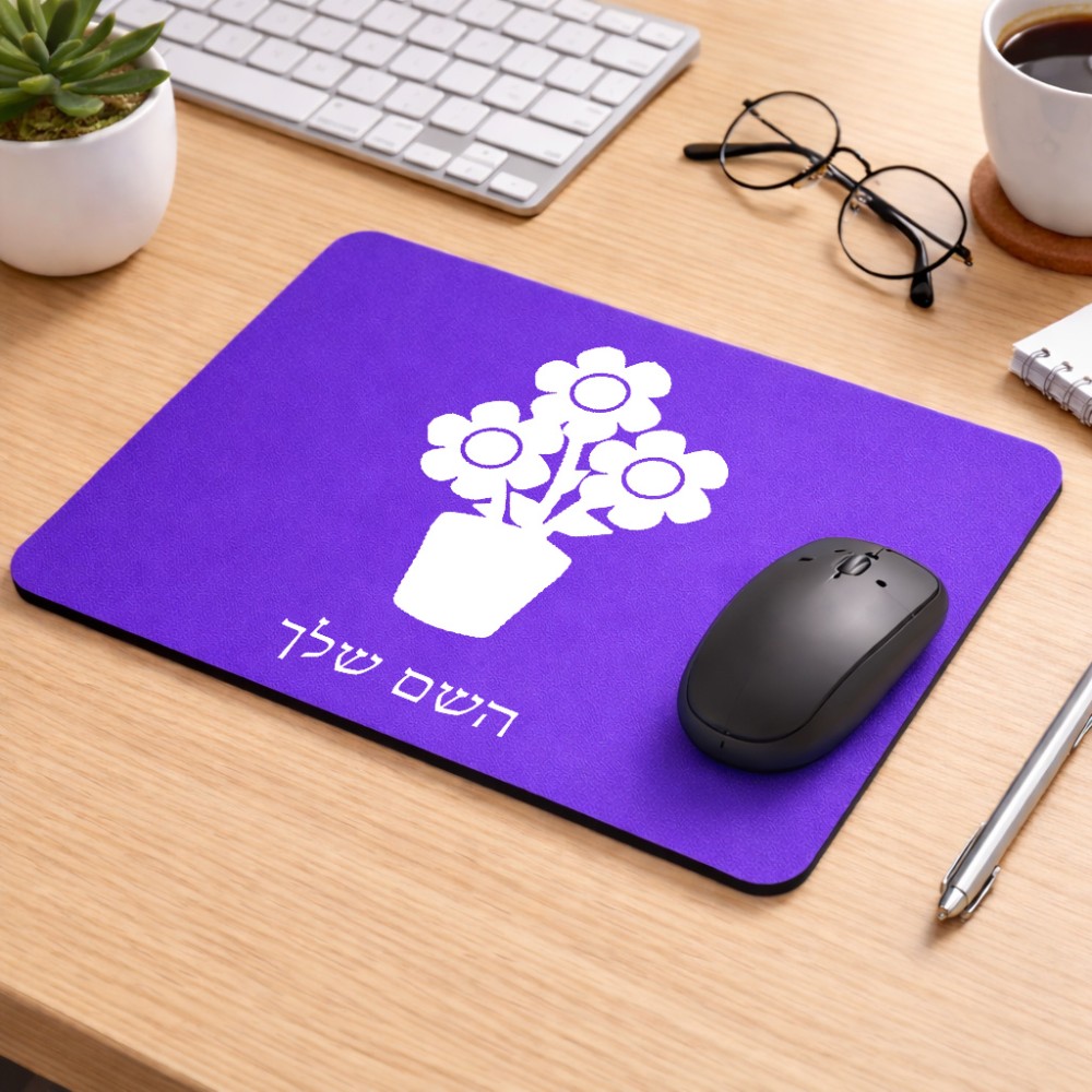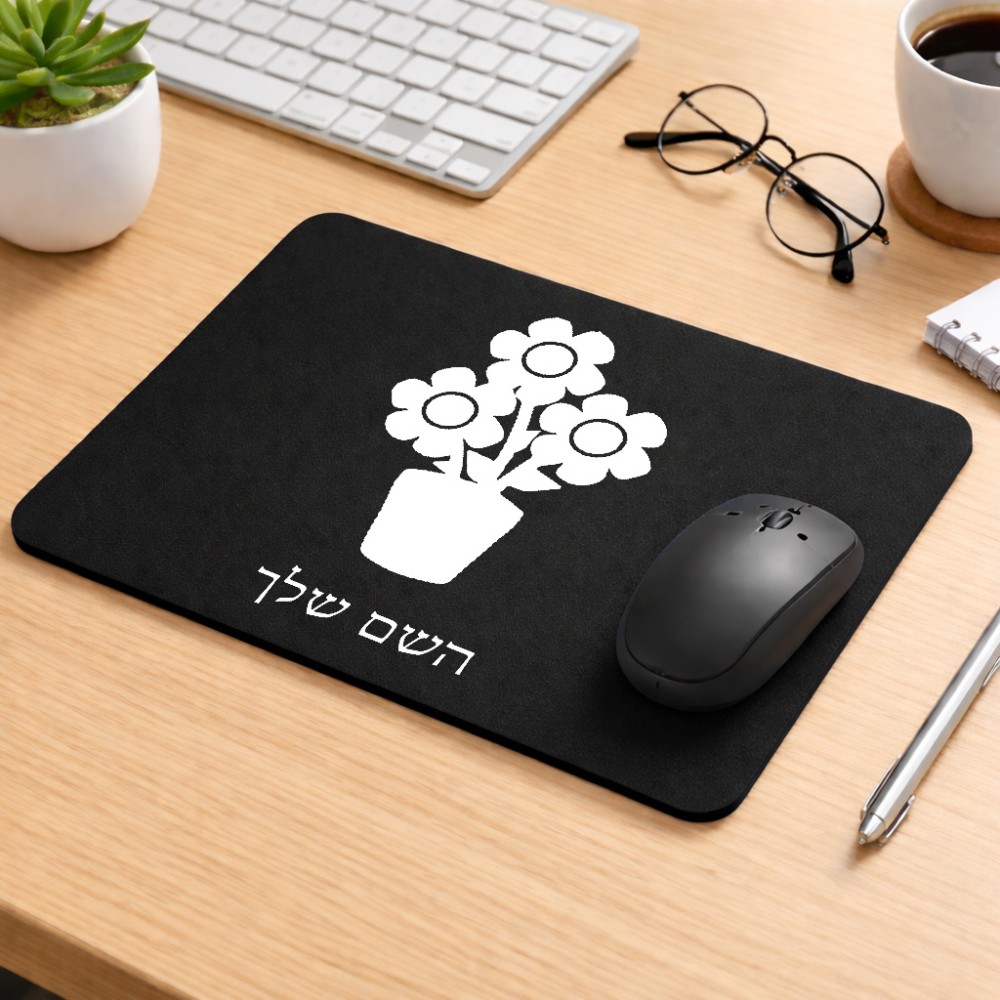 פד לעכבר בעיצוב אישי עם השם שלך בעיצוב פרח גודל הפד 22 × 18 ס"מ