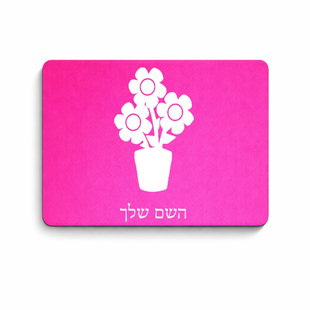 פד לעכבר בעיצוב אישי עם השם שלך בעיצוב פרח גודל הפד 22 × 18 ס"מ. את השם המבוקש ניתן לציין בהזמנה, אם לא צויין אנחנו ניצור קשר לבירור.