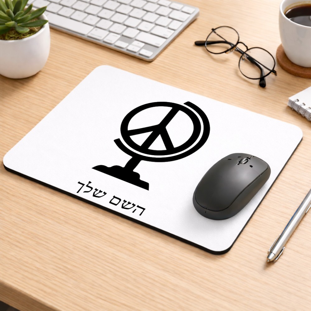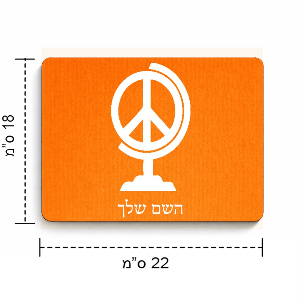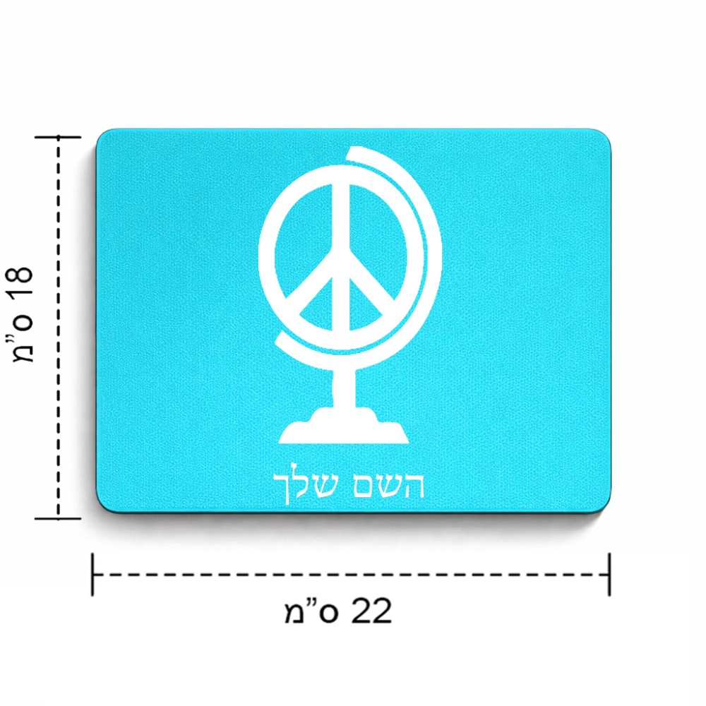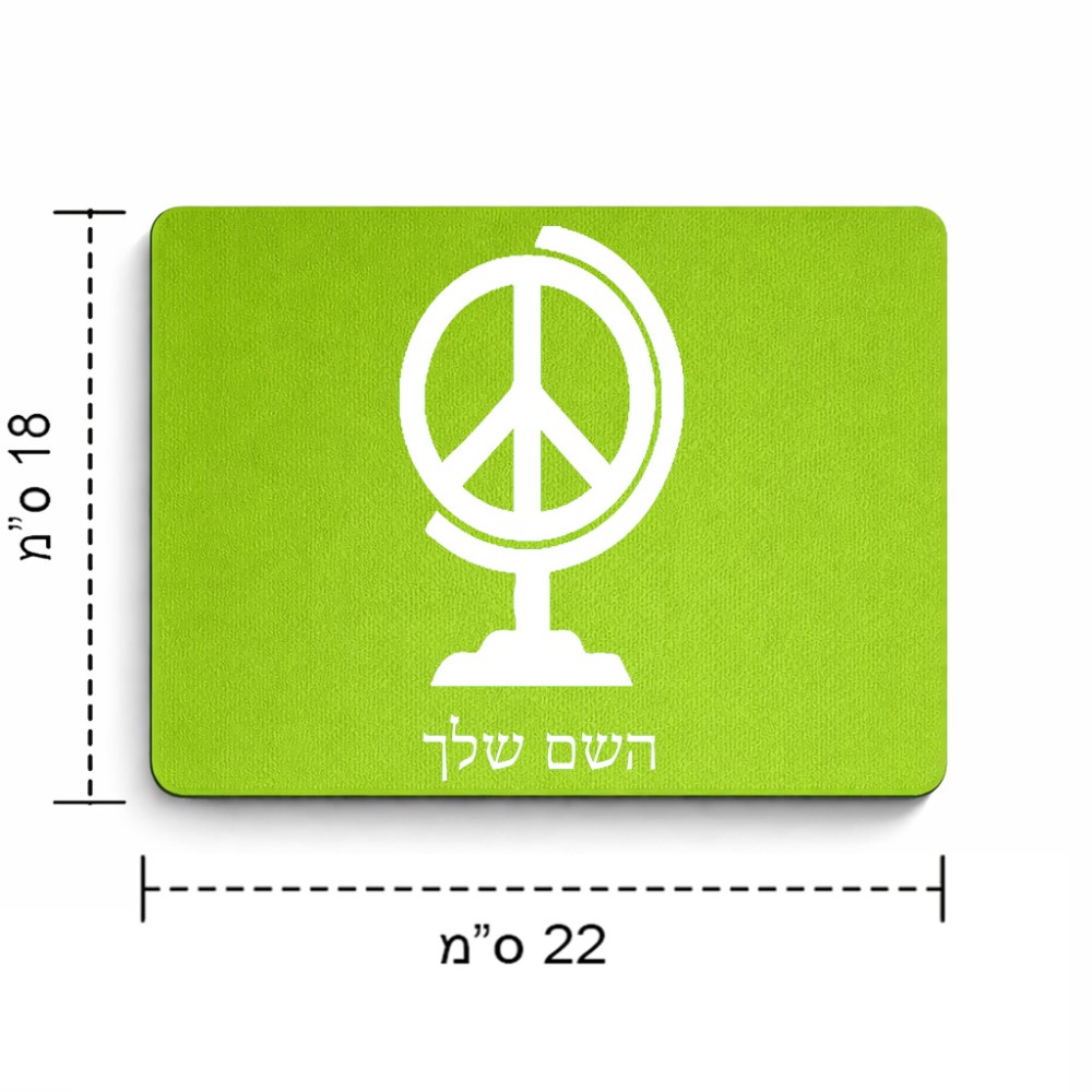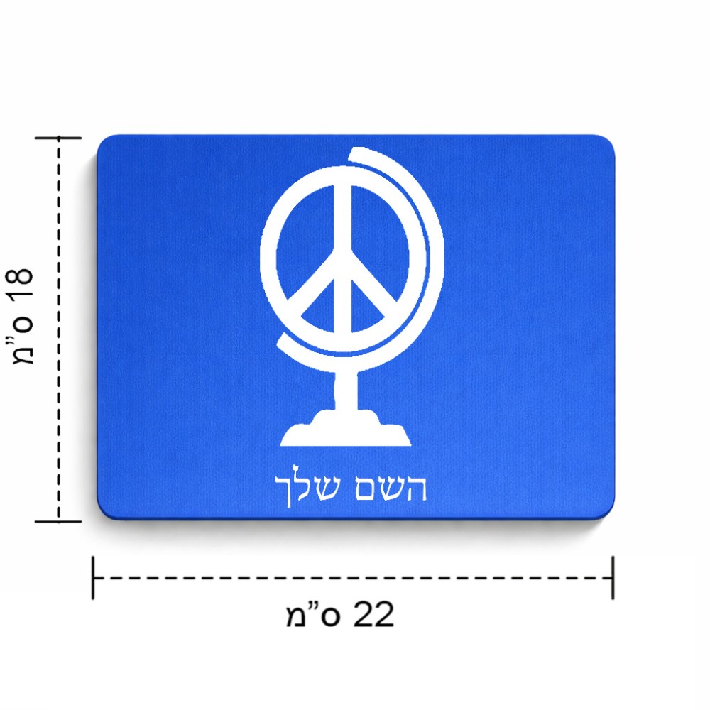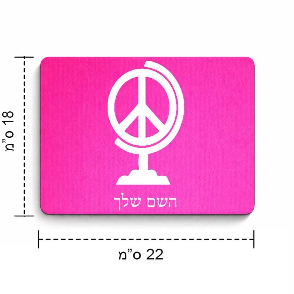 פד לעכבר בעיצוב אישי עם השם שלך בעיצוב גלובוסי שלום גודל הפד 22 × 18 ס"מ. את השם המבוקש ניתן לציין בהזמנה, אם לא צויין אנחנו ניצור קשר לבירור.