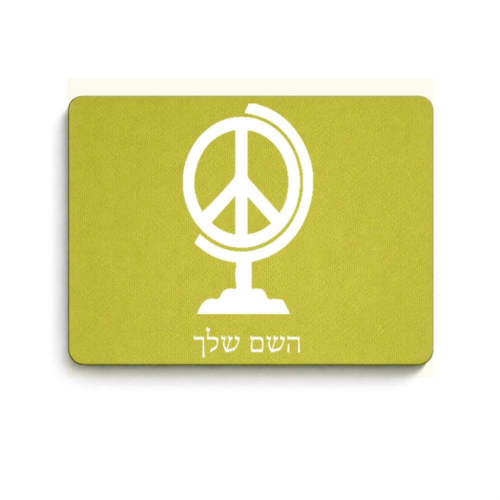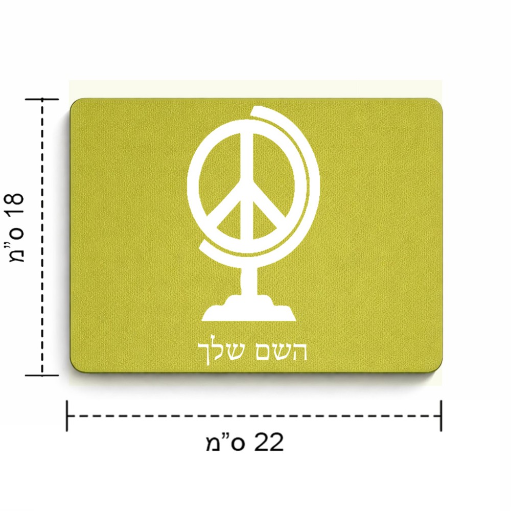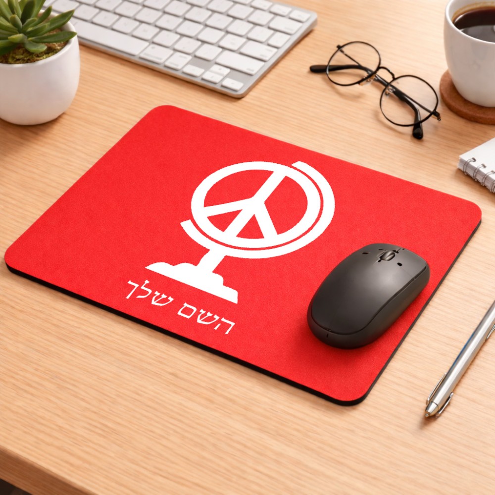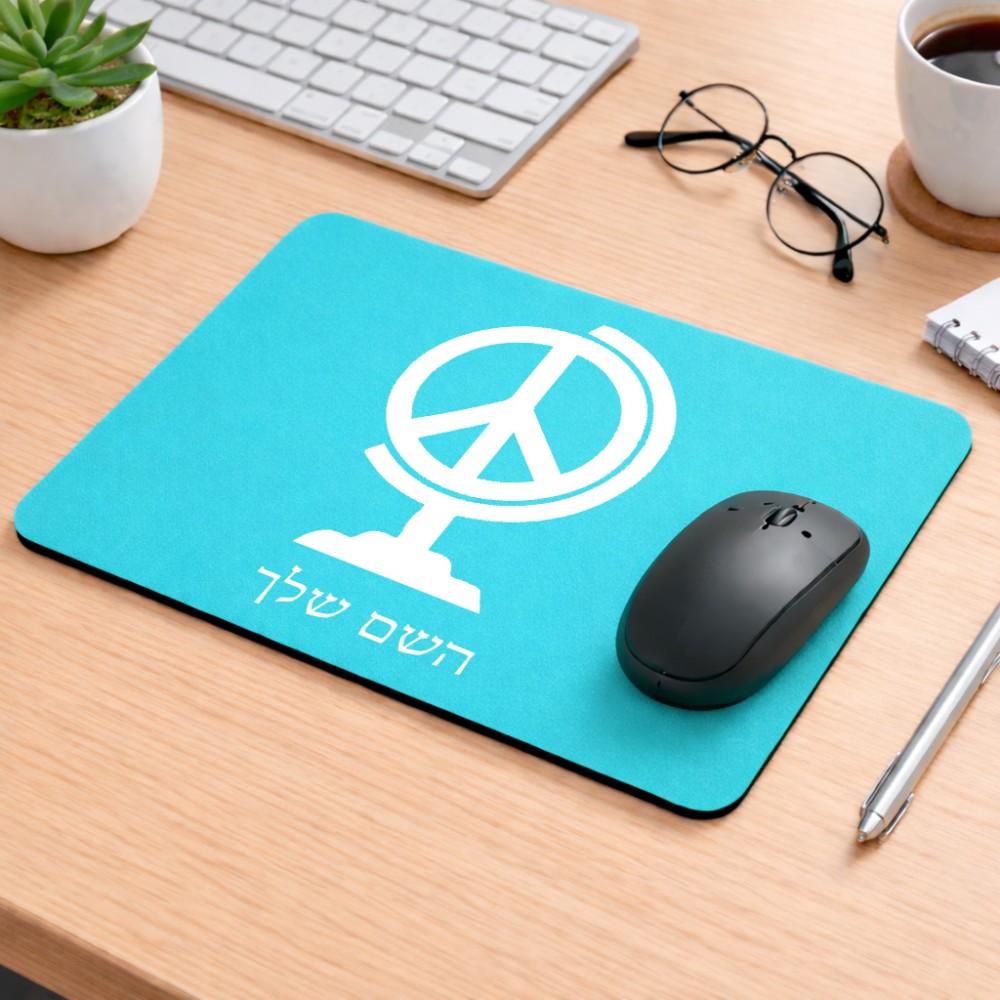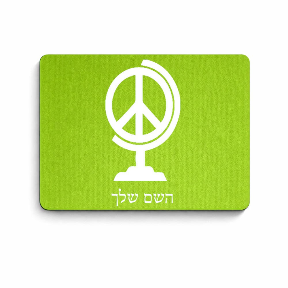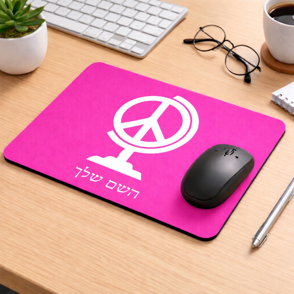 פד לעכבר בעיצוב אישי עם השם שלך בעיצוב גלובוסי שלום גודל הפד 22 × 18 ס"מ. את השם המבוקש ניתן לציין בהזמנה, אם לא צויין אנחנו ניצור קשר לבירור.