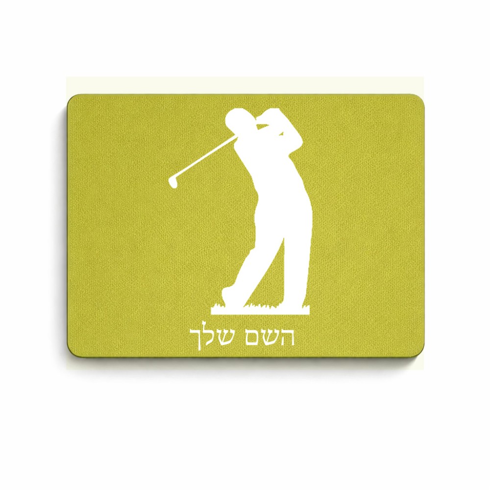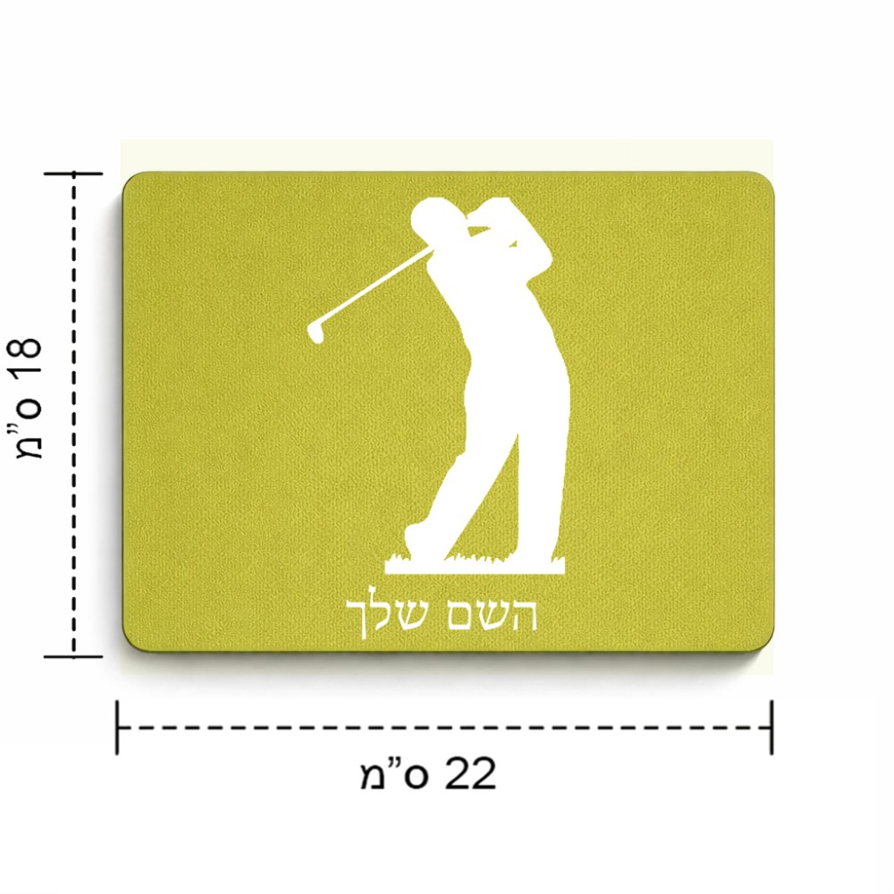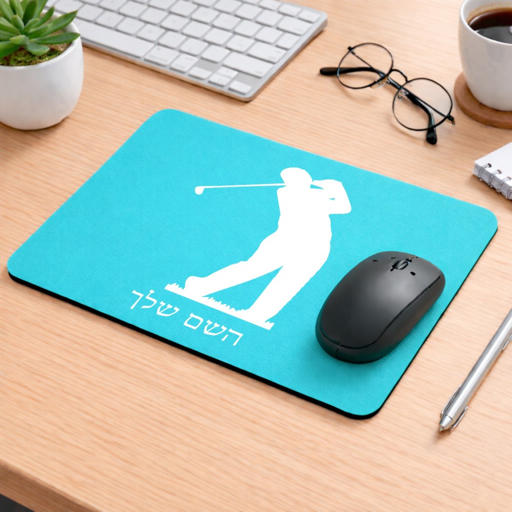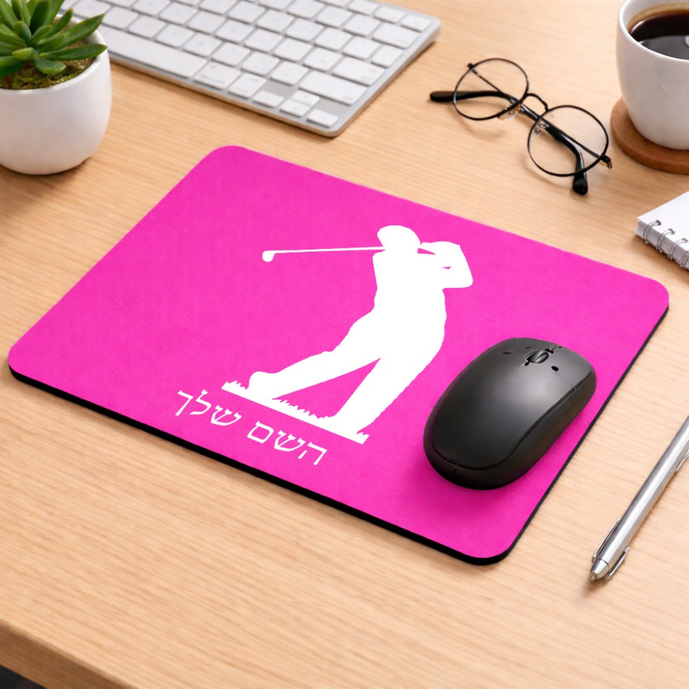 פד לעכבר בעיצוב אישי עם השם שלך בעיצוב שחקן גולף גודל הפד 22 × 18 ס"מ. את השם המבוקש ניתן לציין בהזמנה, אם לא צויין אנחנו ניצור קשר לבירור.