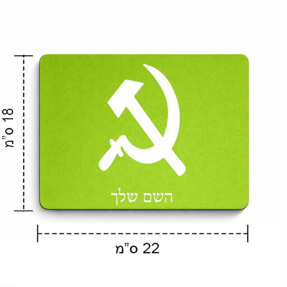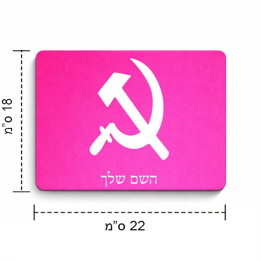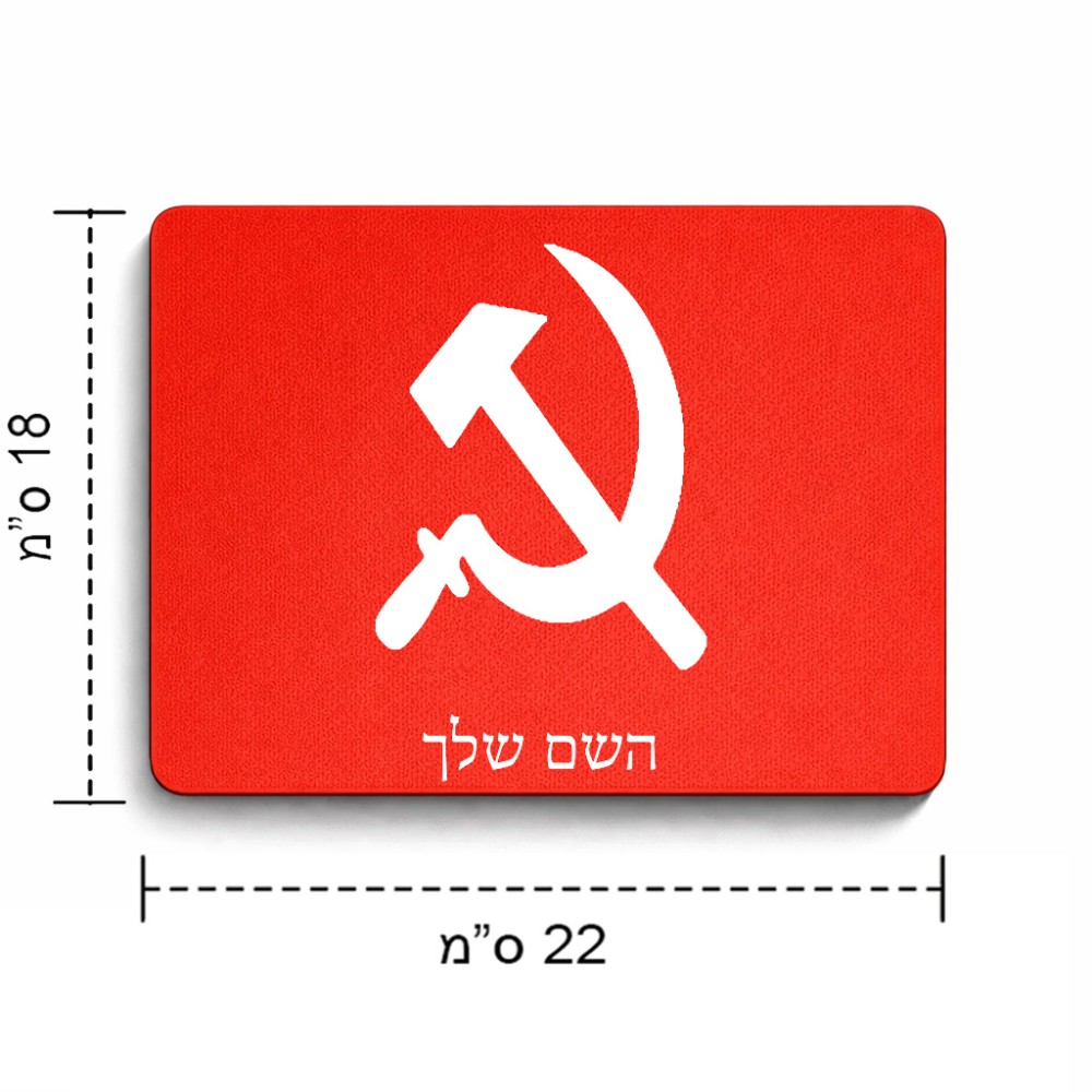 פד לעכבר בעיצוב אישי עם השם שלך בעיצוב פטיש ומגל גודל הפד 22 × 18 ס"מ. את השם המבוקש ניתן לציין בהזמנה, אם לא צויין אנחנו ניצור קשר לבירור.