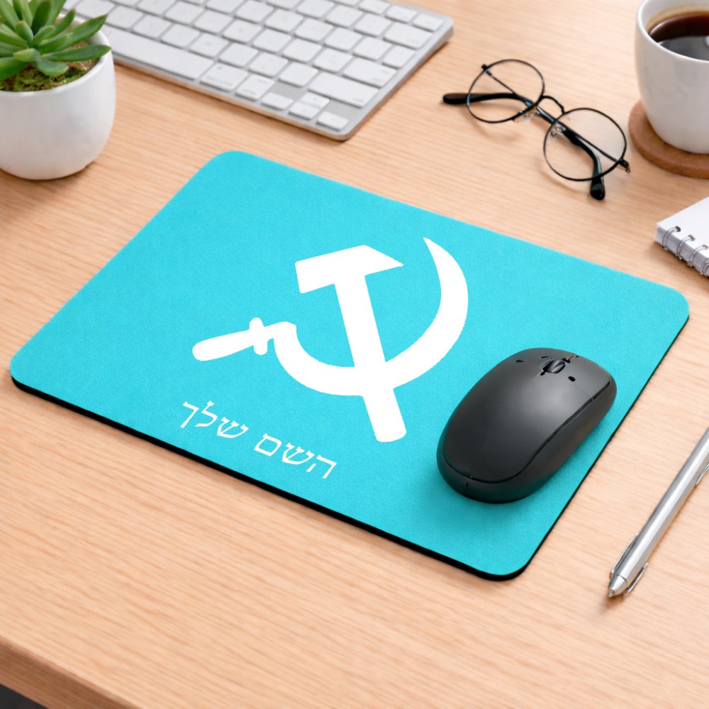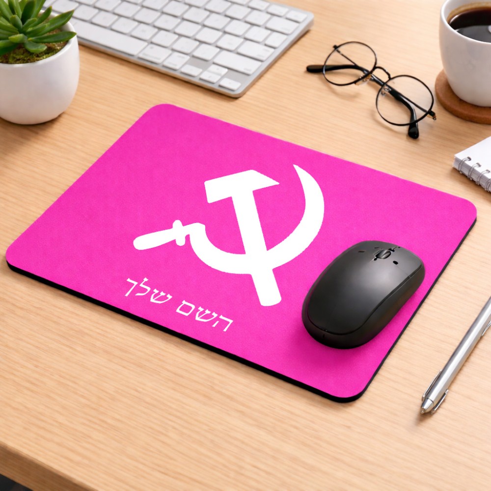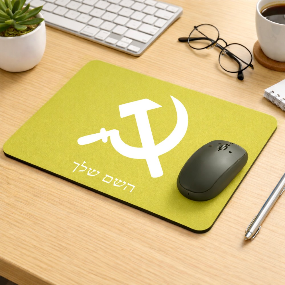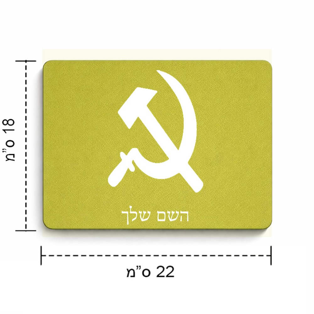פד לעכבר בעיצוב אישי עם השם שלך בעיצוב פטיש ומגל גודל הפד 22 × 18 ס"מ. את השם המבוקש ניתן לציין בהזמנה, אם לא צויין אנחנו ניצור קשר לבירור.