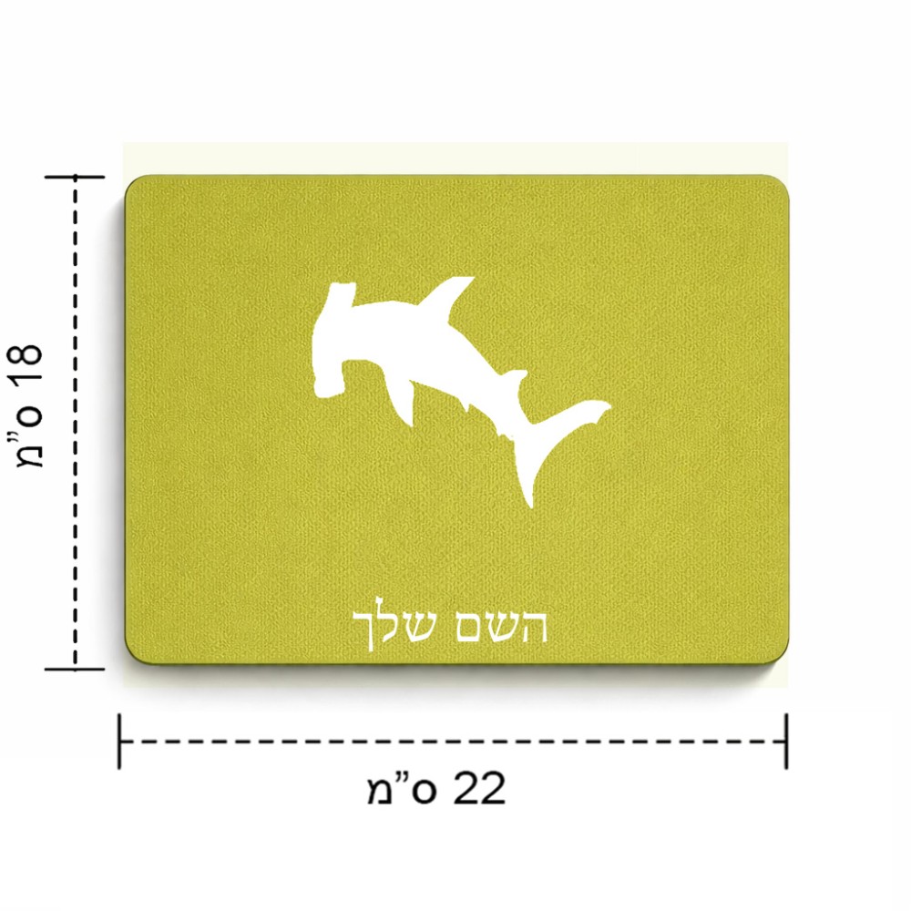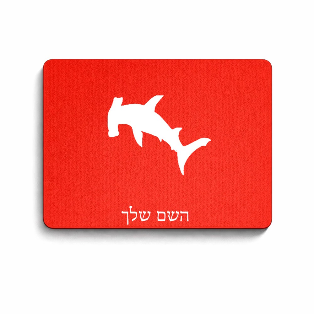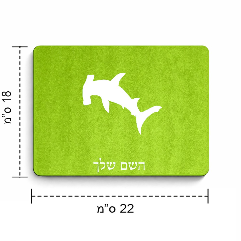 פד לעכבר בעיצוב אישי עם השם שלך בעיצוב כריש ראש פטיש גודל הפד 22 × 18 ס"מ. את השם המבוקש ניתן לציין בהזמנה, אם לא צויין אנחנו ניצור קשר לבירור.