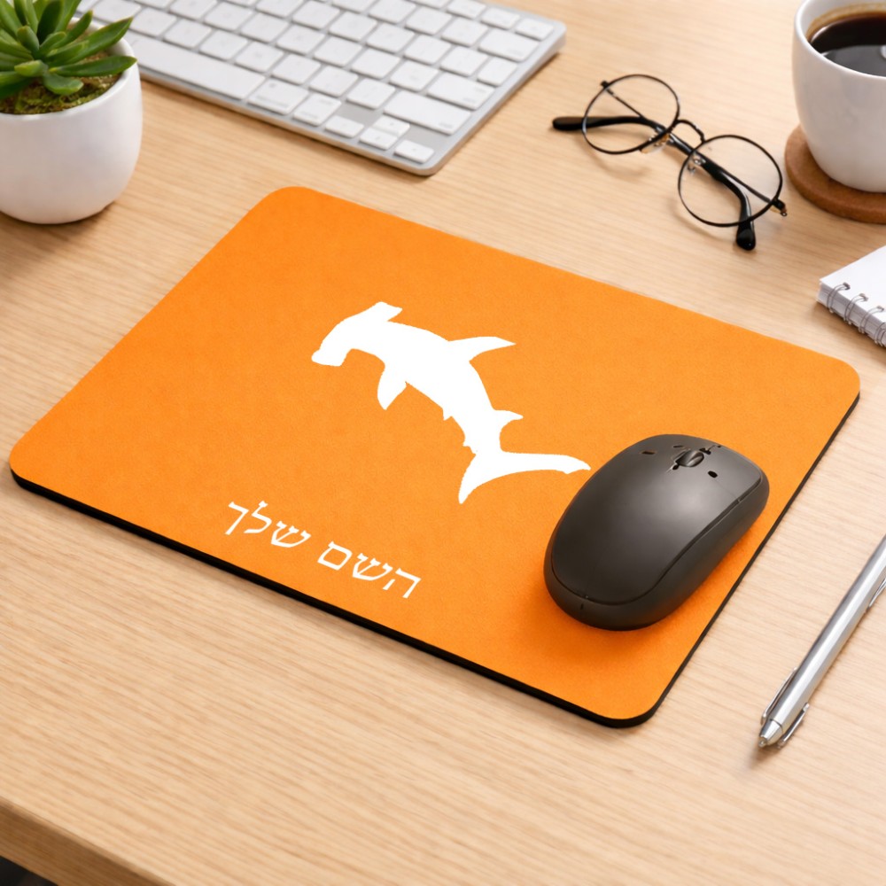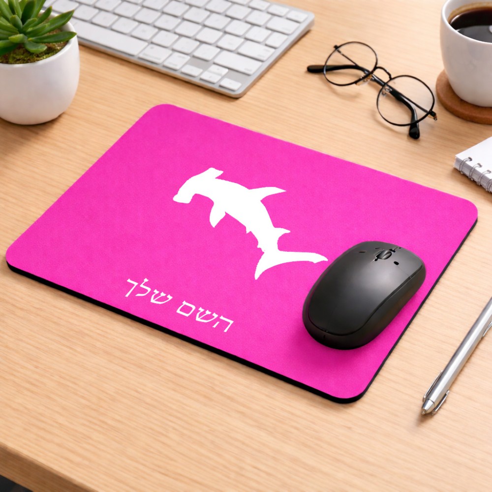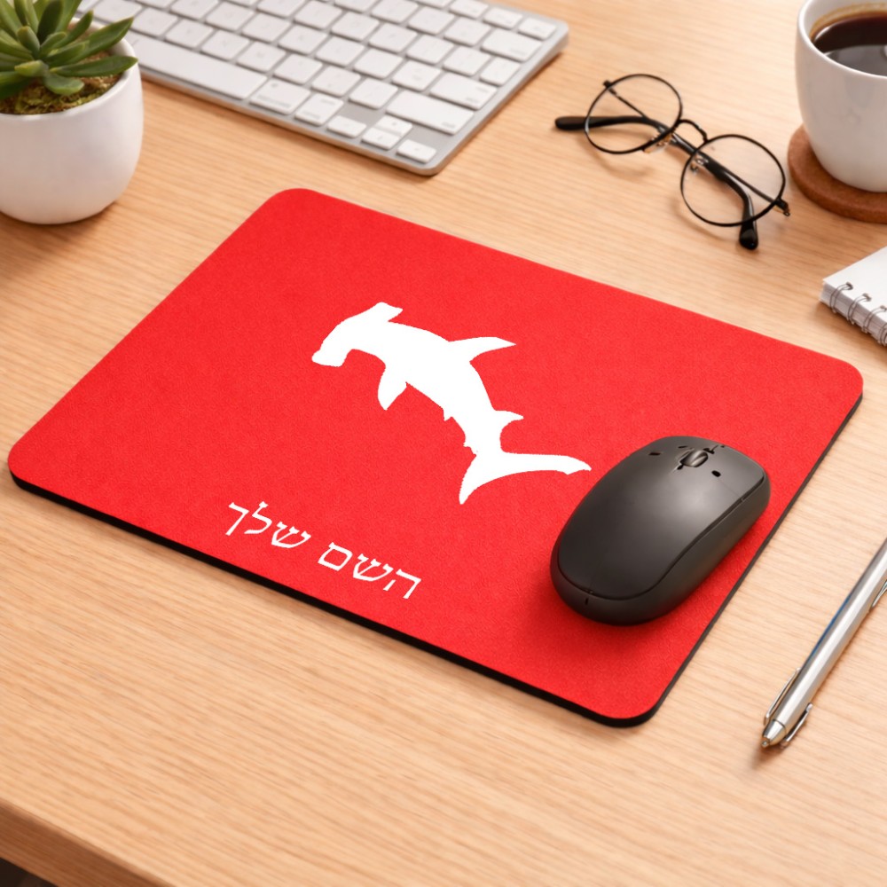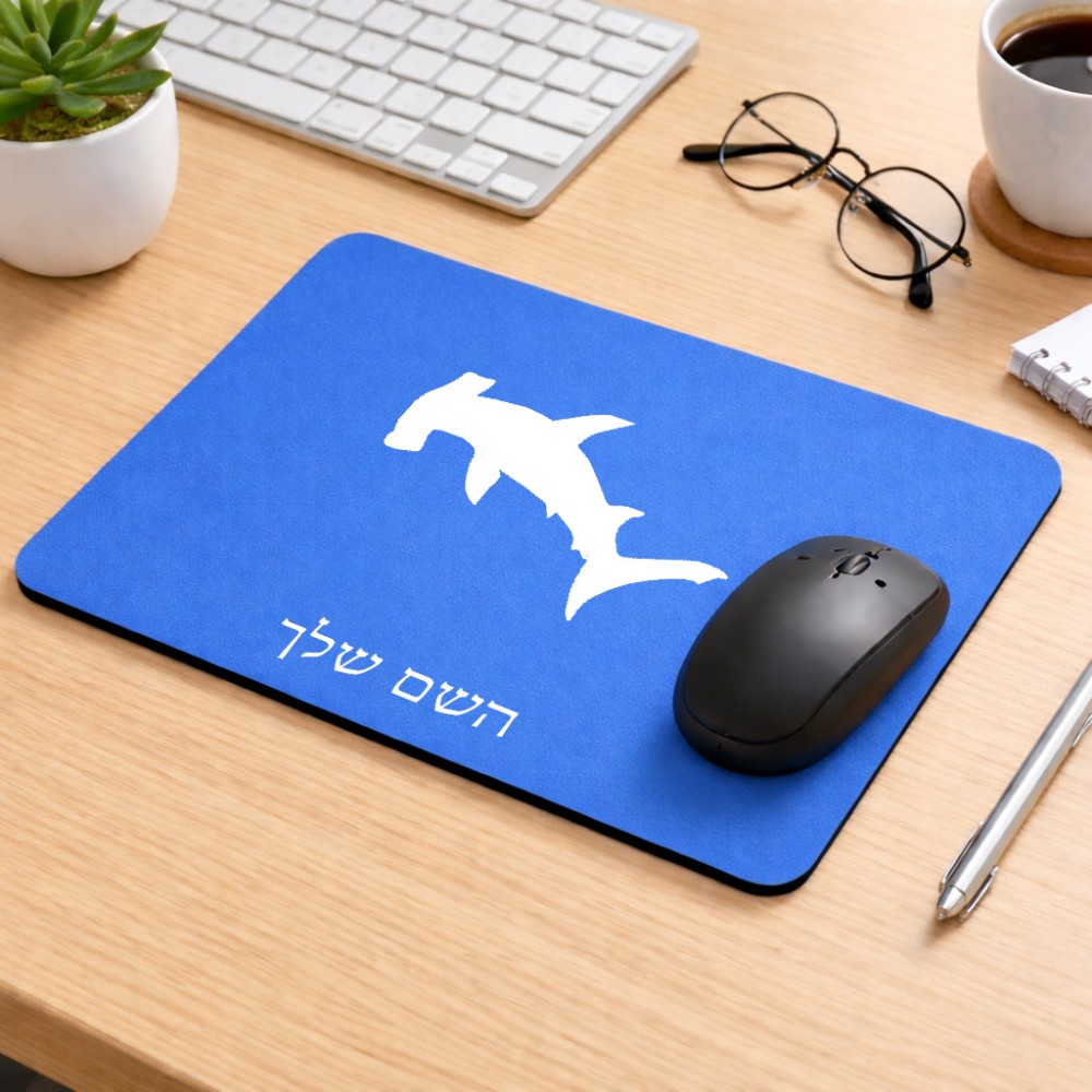 פד לעכבר בעיצוב אישי עם השם שלך בעיצוב כריש ראש פטיש גודל הפד 22 × 18 ס"מ. את השם המבוקש ניתן לציין בהזמנה, אם לא צויין אנחנו ניצור קשר לבירור.