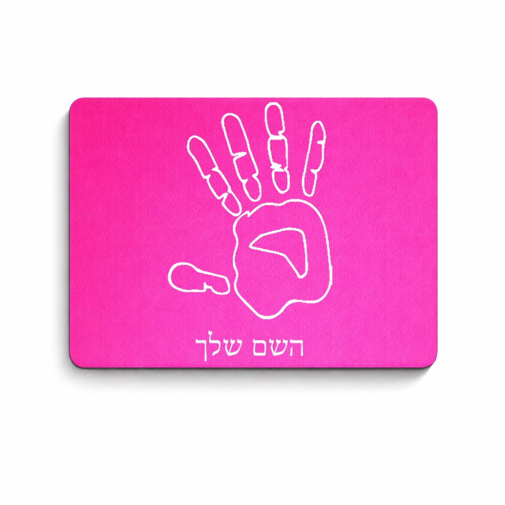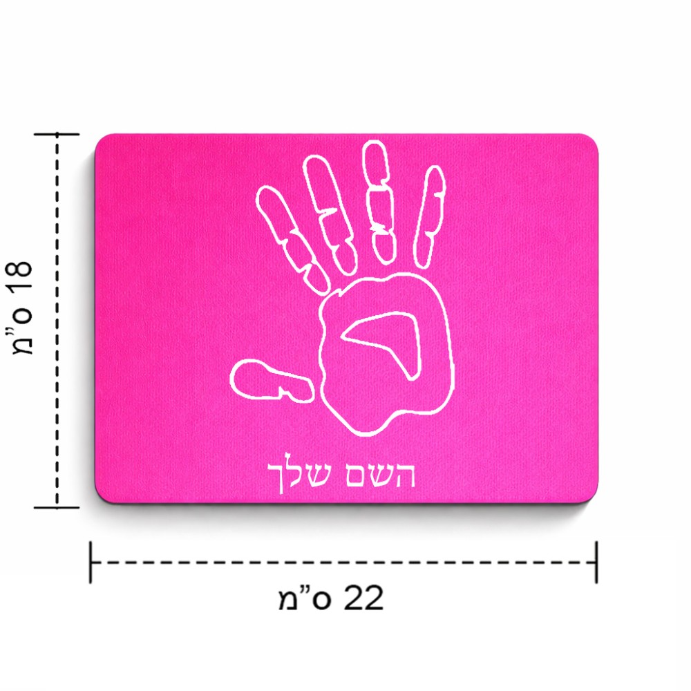 פד לעכבר בעיצוב אישי עם השם שלך בעיצוב יד גודל הפד 22 × 18 ס"מ. את השם המבוקש ניתן לציין בהזמנה, אם לא צויין אנחנו ניצור קשר לבירור.
