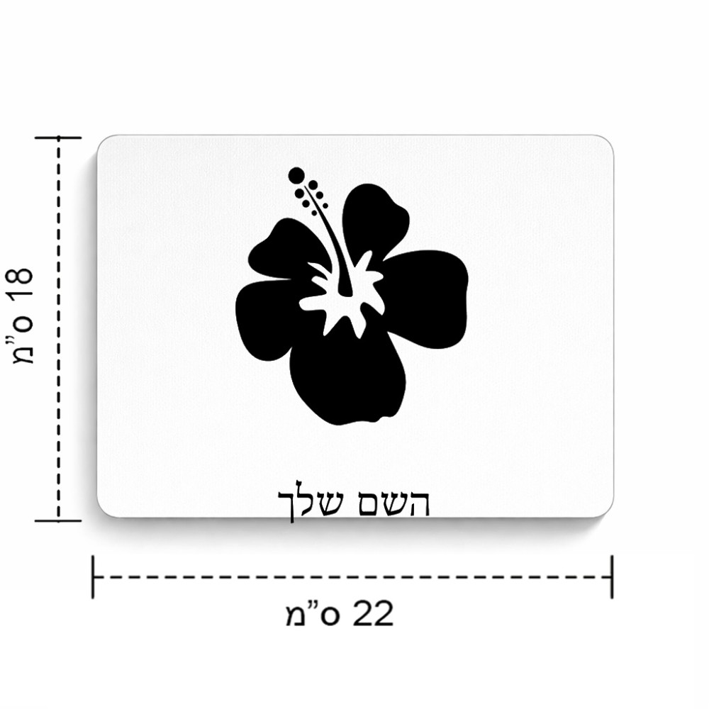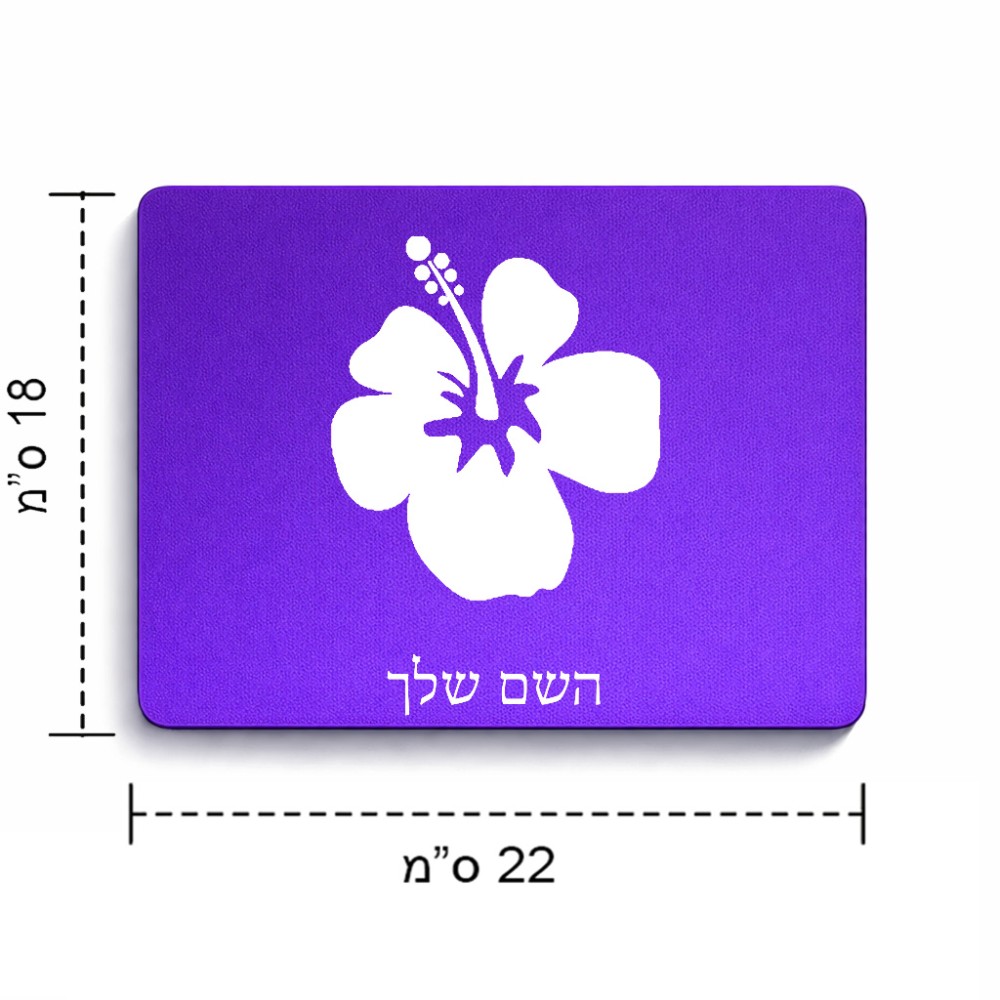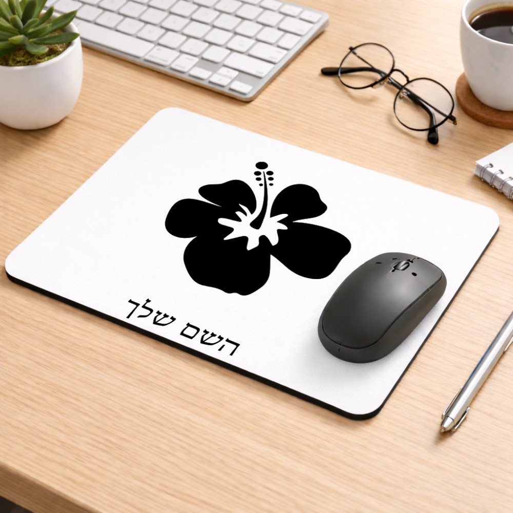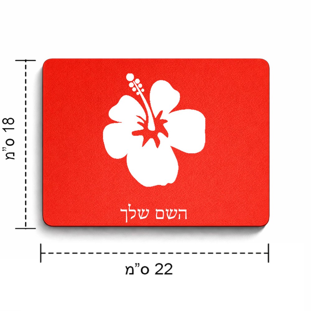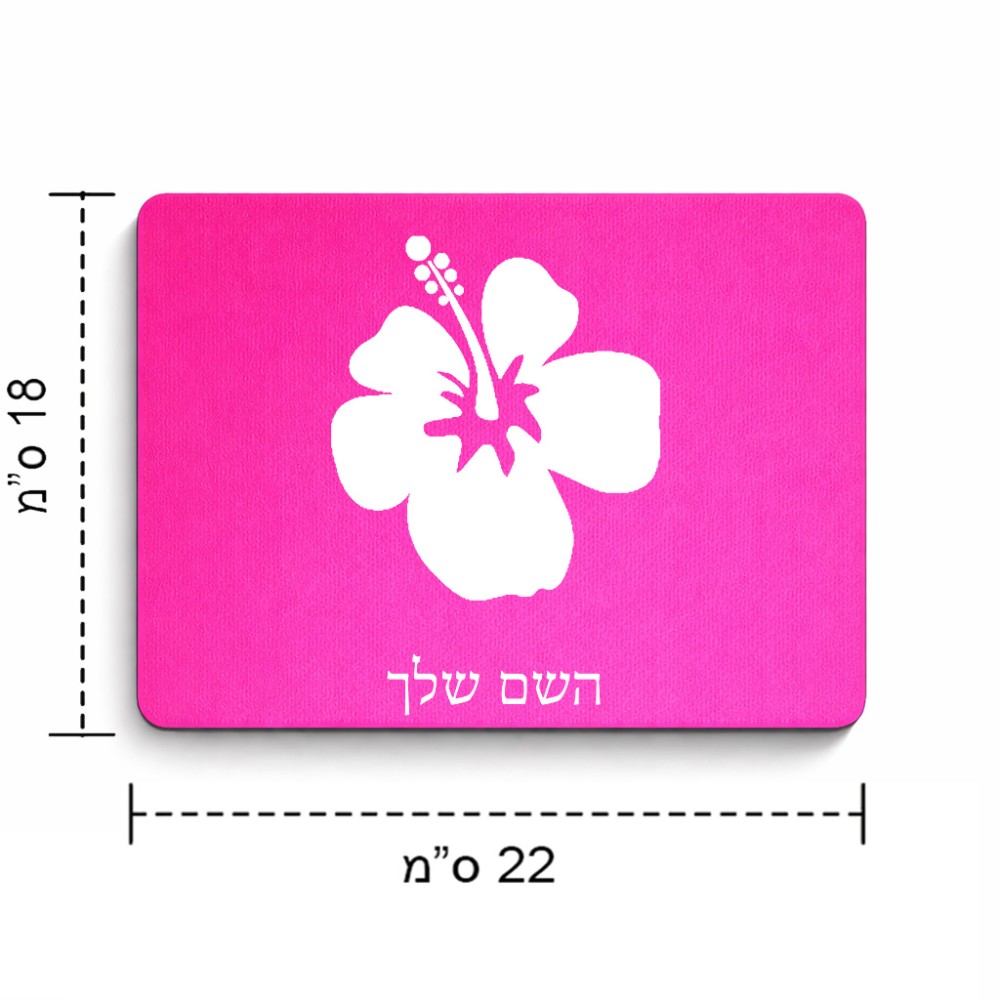 פד לעכבר בעיצוב אישי עם השם שלך בעיצוב פרח היביסקוס גודל הפד 22 × 18 ס"מ. את השם המבוקש ניתן לציין בהזמנה, אם לא צויין אנחנו ניצור קשר לבירור.