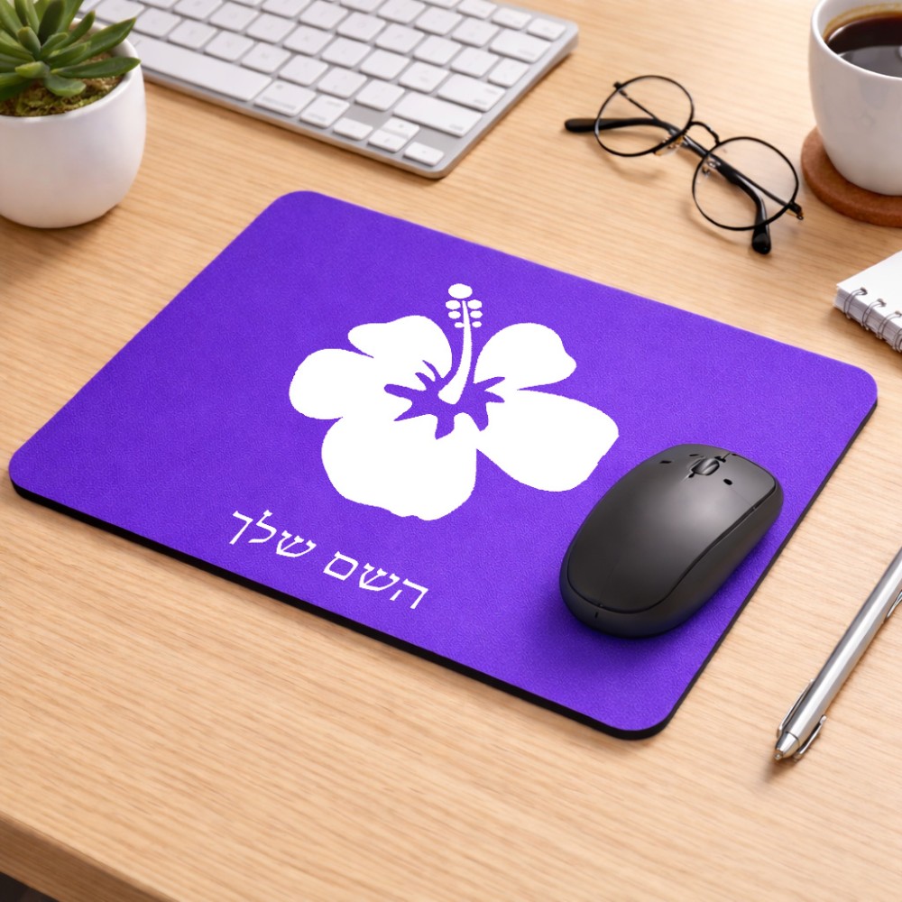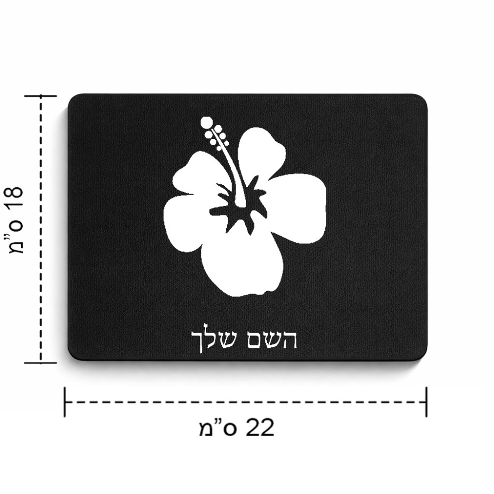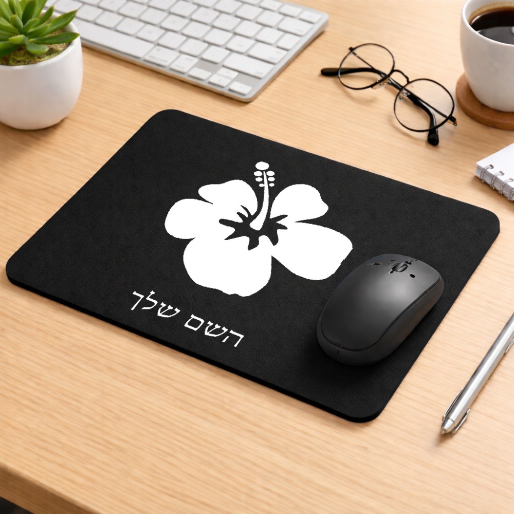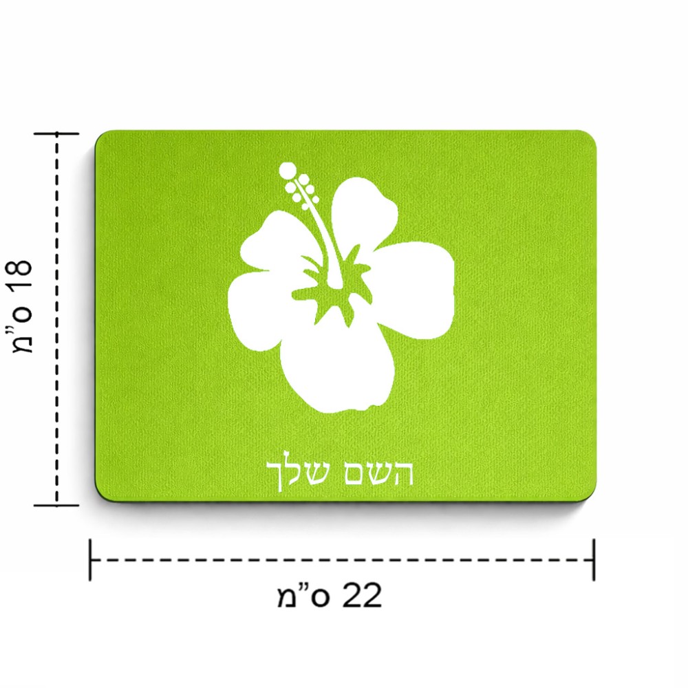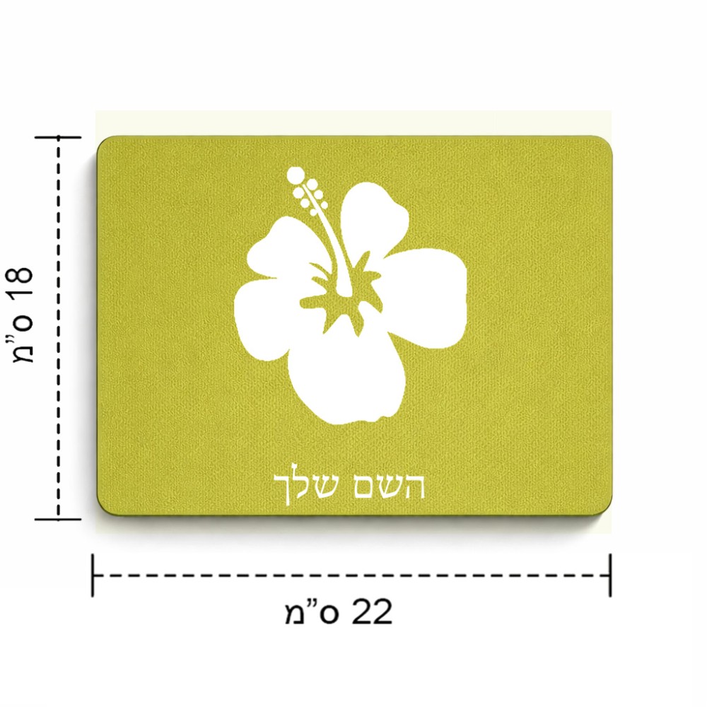 פד לעכבר בעיצוב אישי עם השם שלך בעיצוב פרח היביסקוס גודל הפד 22 × 18 ס"מ. את השם המבוקש ניתן לציין בהזמנה, אם לא צויין אנחנו ניצור קשר לבירור.
