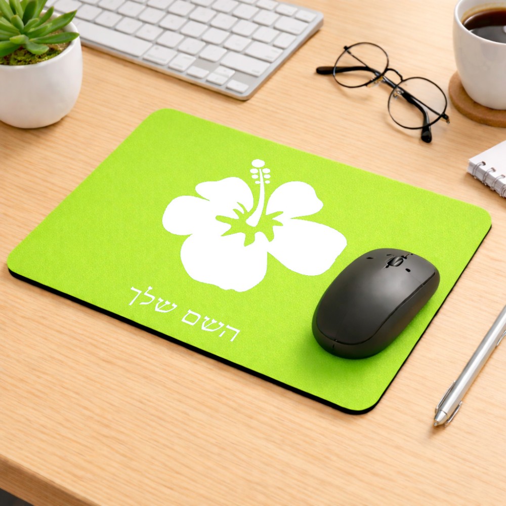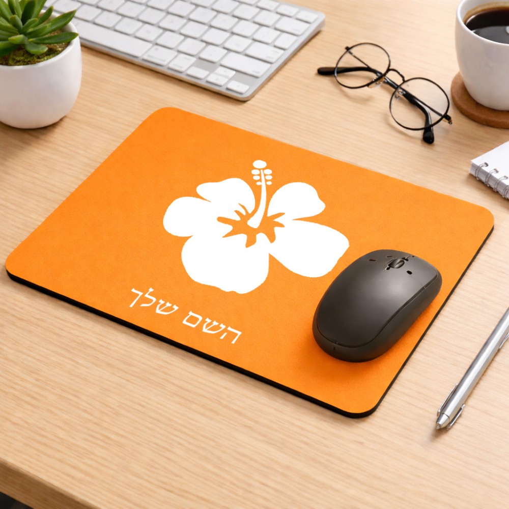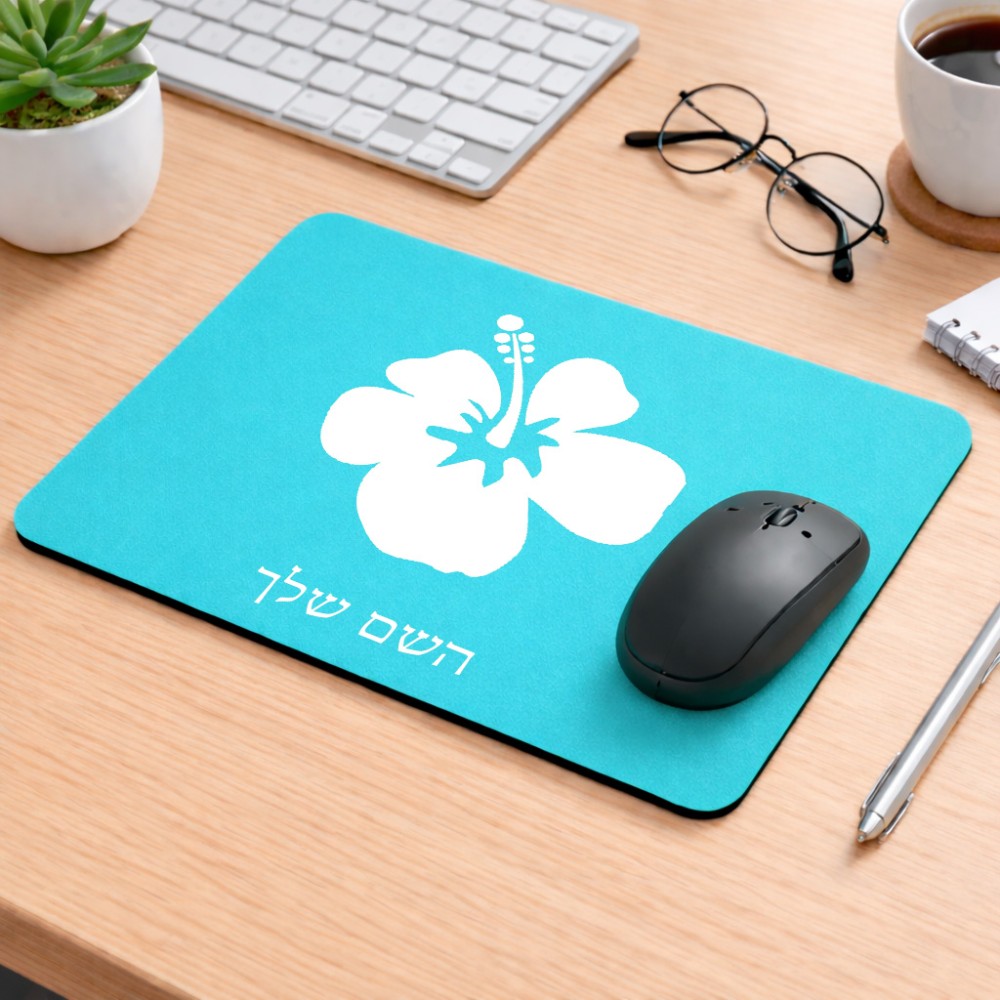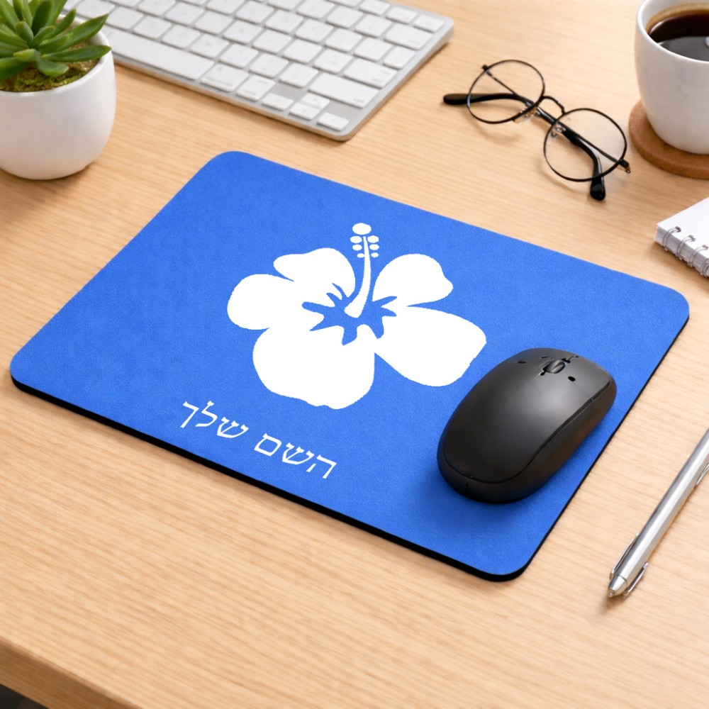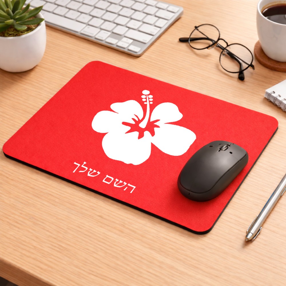 פד לעכבר בעיצוב אישי עם השם שלך בעיצוב פרח היביסקוס גודל הפד 22 × 18 ס"מ. את השם המבוקש ניתן לציין בהזמנה, אם לא צויין אנחנו ניצור קשר לבירור.