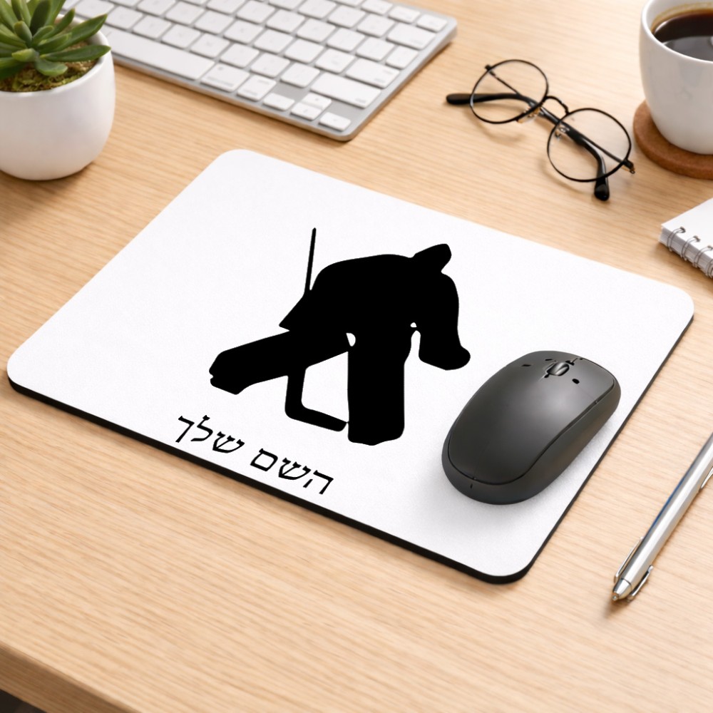 פד לעכבר בעיצוב אישי עם השם שלך בעיצוב הוקי שוערים גודל הפד 22 × 18 ס"מ. את השם המבוקש ניתן לציין בהזמנה, אם לא צויין אנחנו ניצור קשר לבירור.