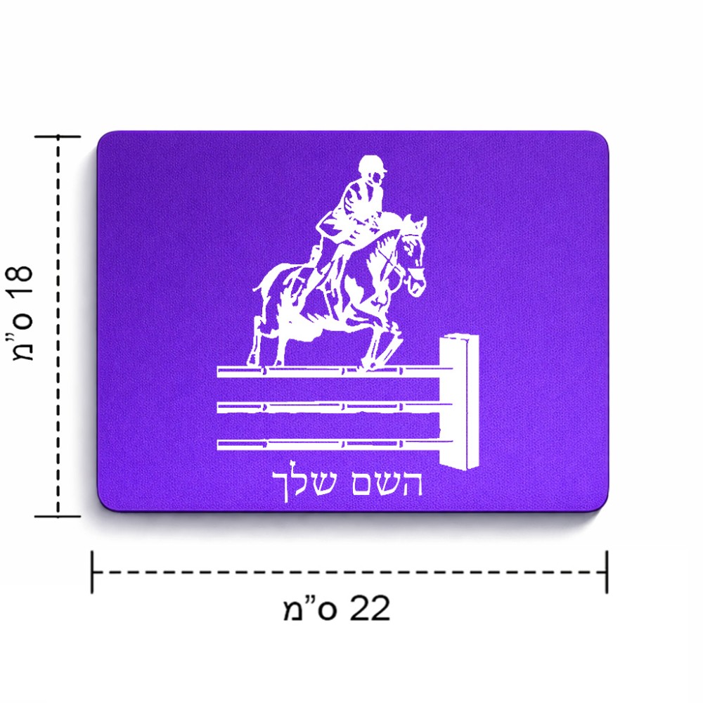 פד לעכבר בעיצוב אישי עם השם שלך בעיצוב רוכב סוסים גודל הפד 22 × 18 ס"מ. את השם המבוקש ניתן לציין בהזמנה, אם לא צויין אנחנו ניצור קשר לבירור.