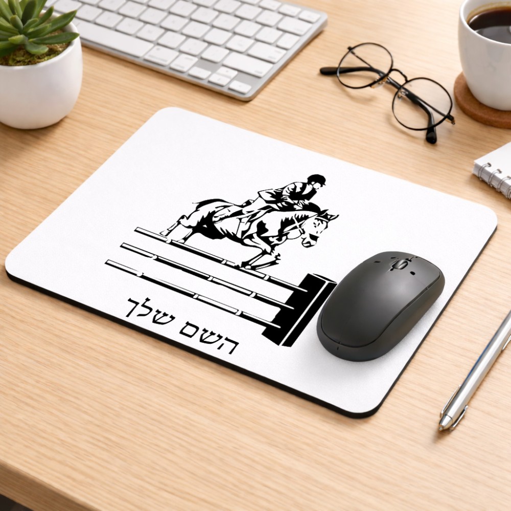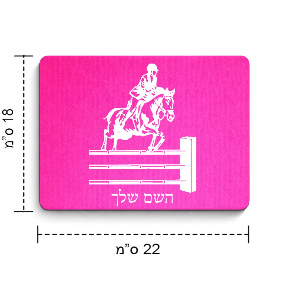 פד לעכבר בעיצוב אישי עם השם שלך בעיצוב רוכב סוסים גודל הפד 22 × 18 ס"מ