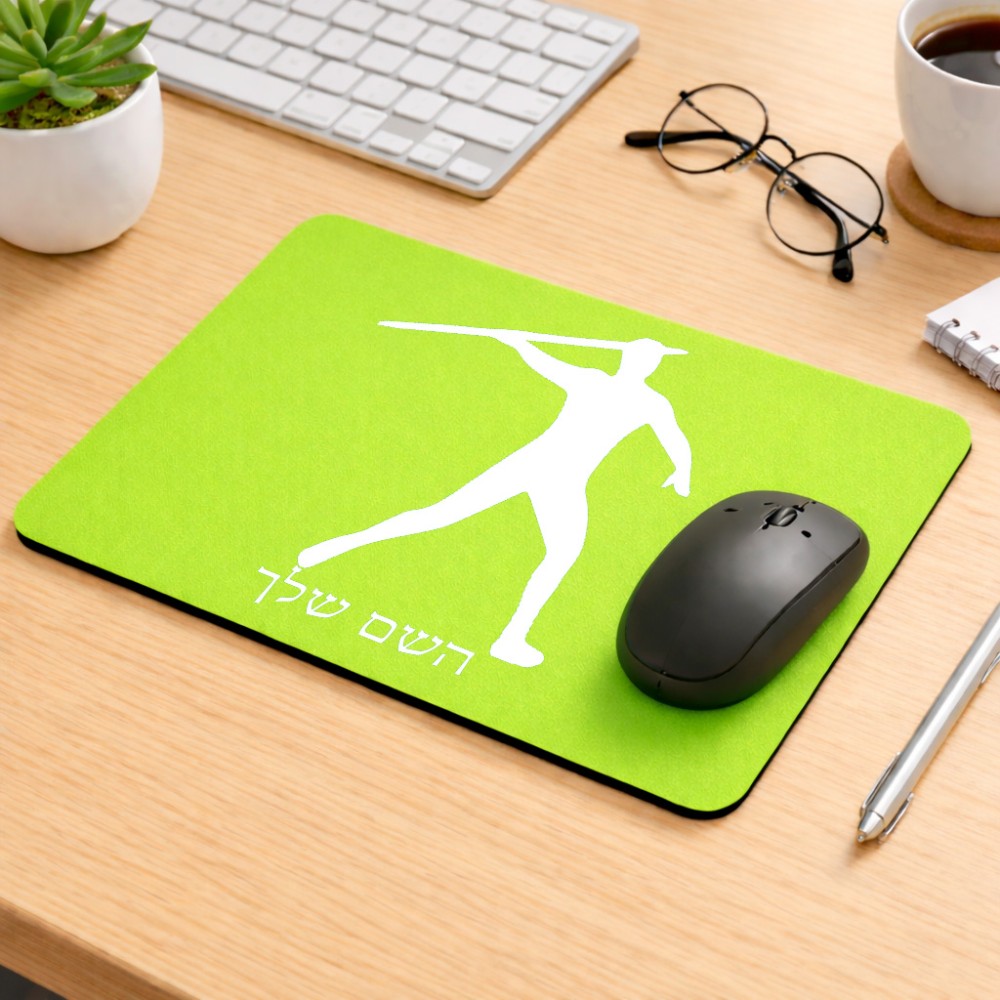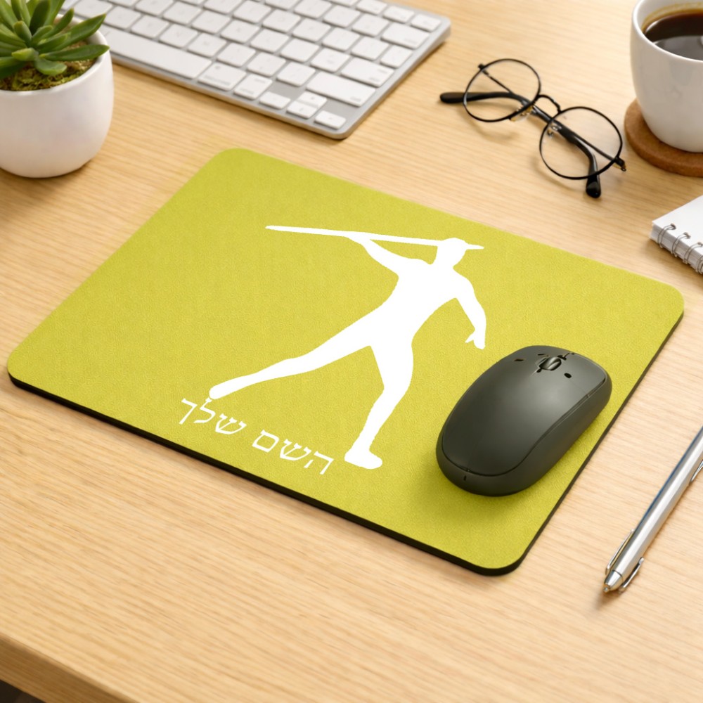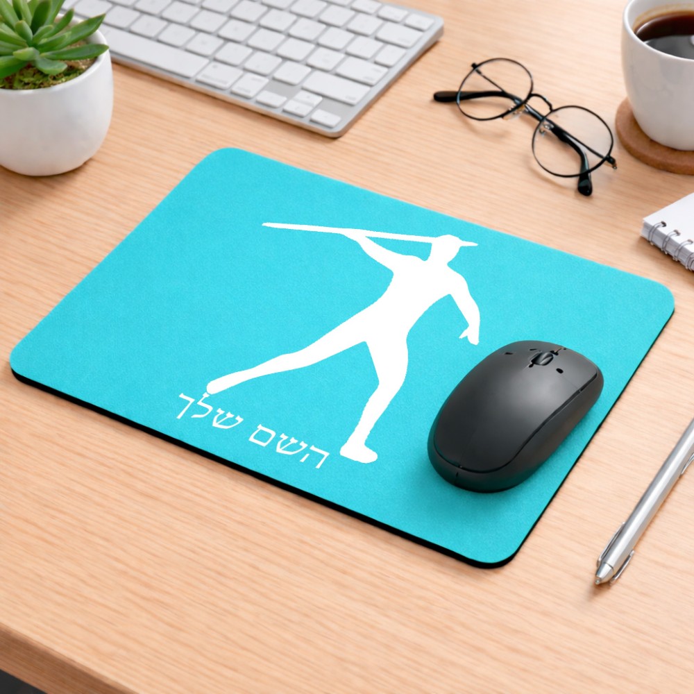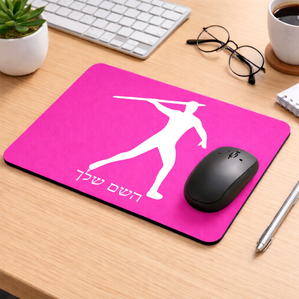 פד לעכבר בעיצוב אישי עם השם שלך בעיצוב זורק כידון גודל הפד 22 × 18 ס"מ. את השם המבוקש ניתן לציין בהזמנה, אם לא צויין אנחנו ניצור קשר לבירור.