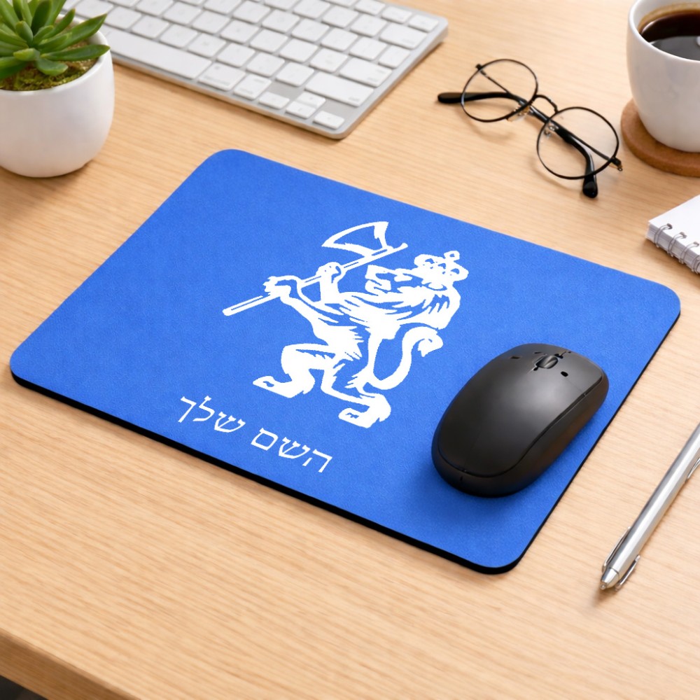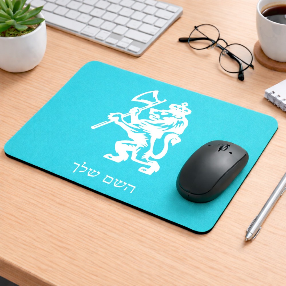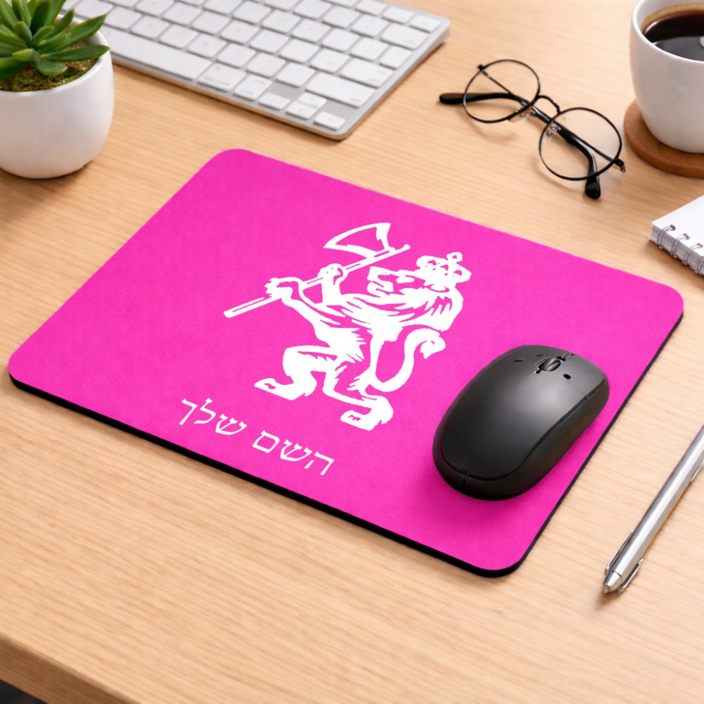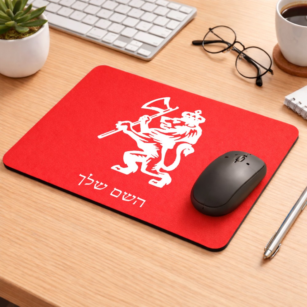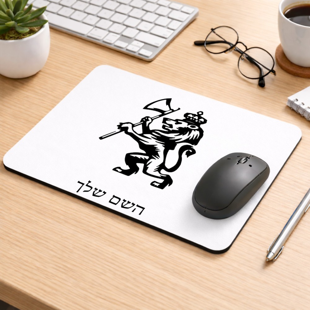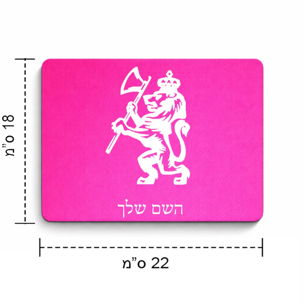 פד לעכבר בעיצוב אישי עם השם שלך בעיצוב אריה גודל הפד 22 × 18 ס"מ
