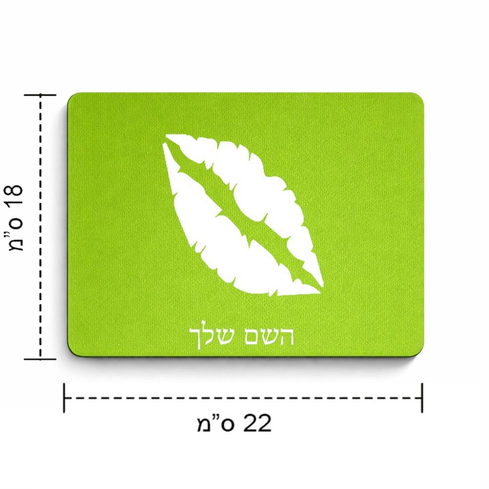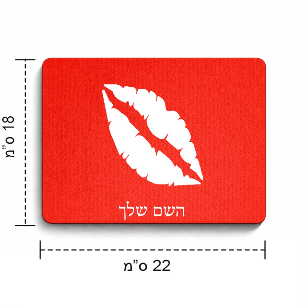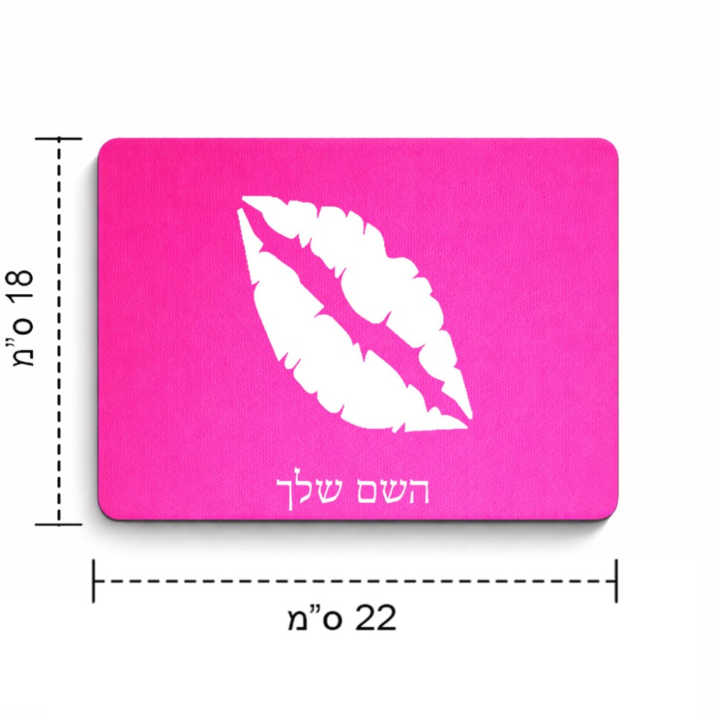 פד לעכבר בעיצוב אישי עם השם שלך בעיצוב שפתיים - נשיקה גודל הפד 22 × 18 ס"מ. את השם המבוקש ניתן לציין בהזמנה, אם לא צויין אנחנו ניצור קשר לבירור.