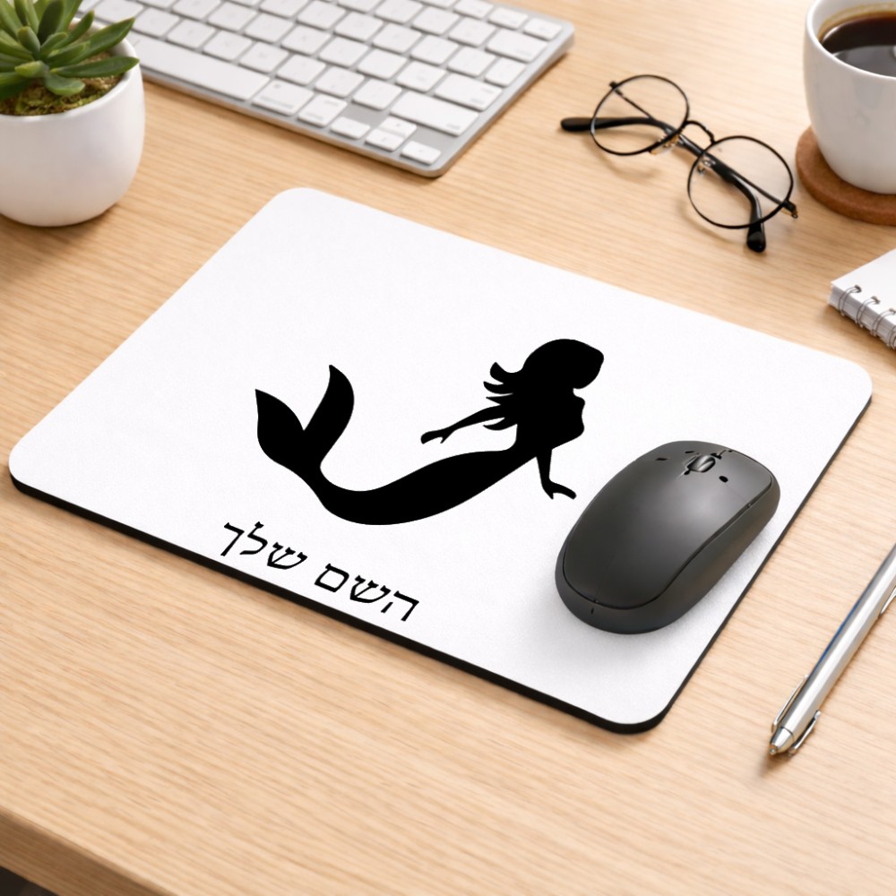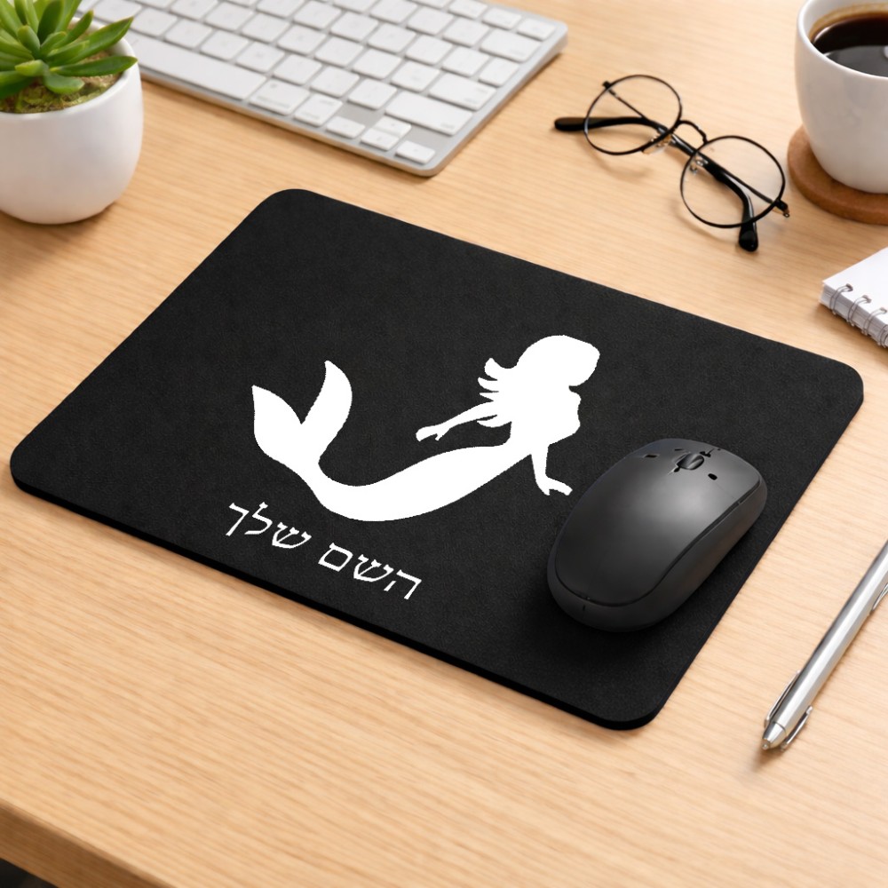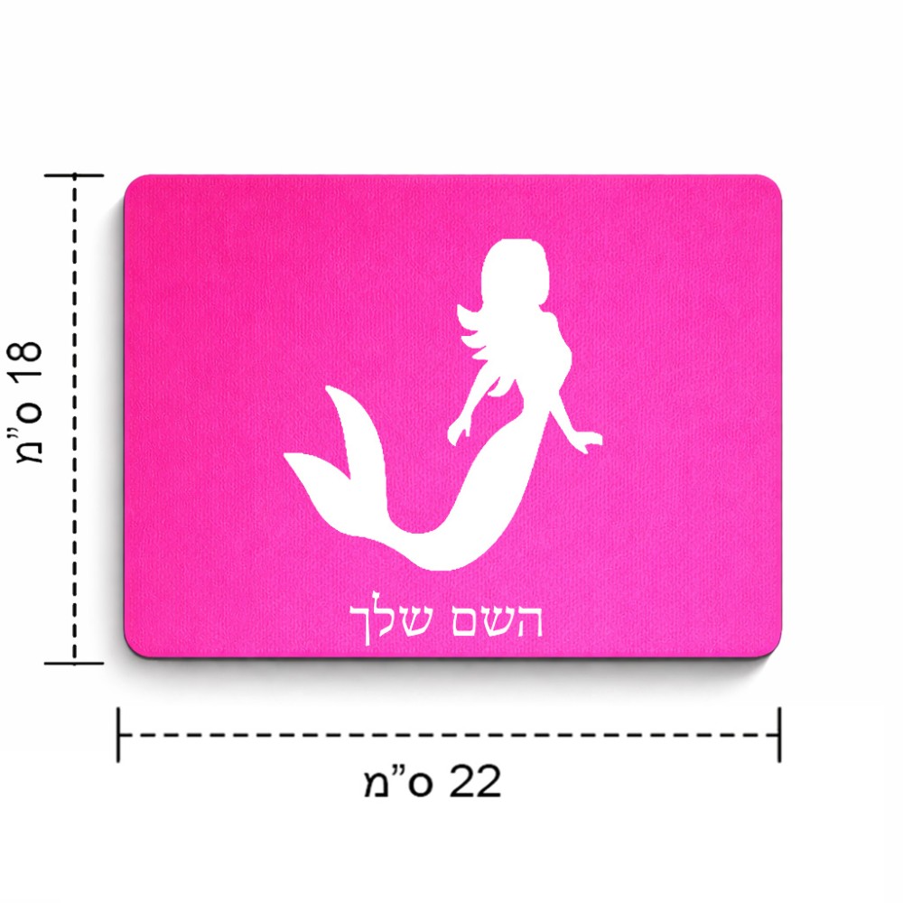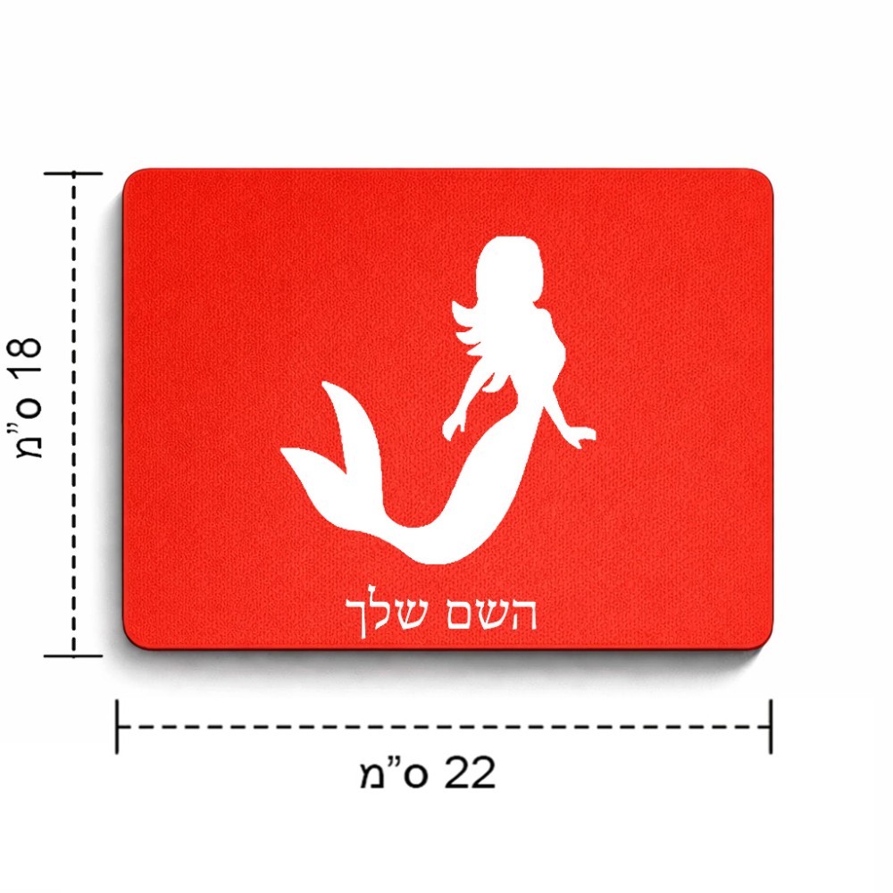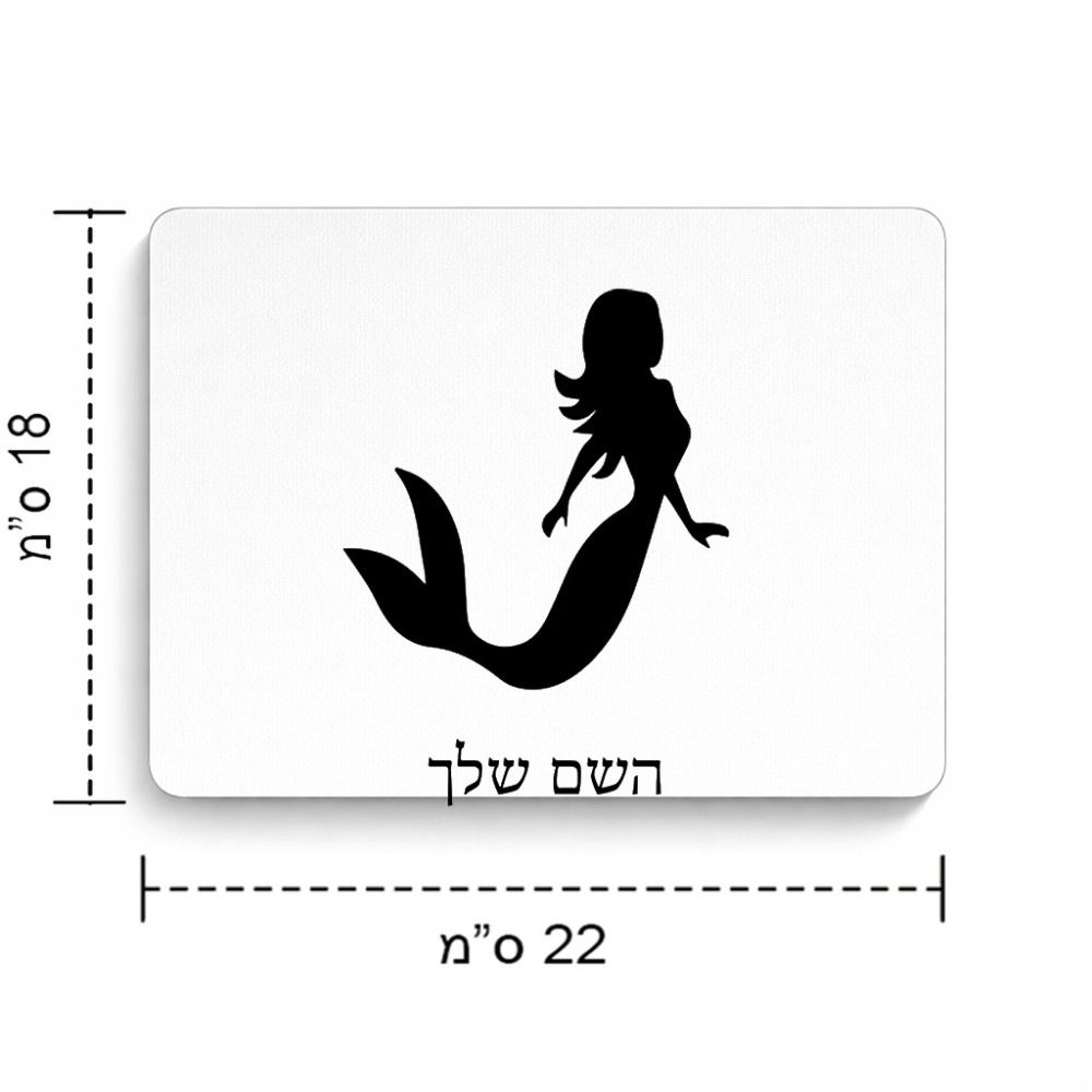 פד לעכבר בעיצוב אישי עם השם שלך בעיצוב בתולת ים - אישה גודל הפד 22 × 18 ס"מ. את השם המבוקש ניתן לציין בהזמנה, אם לא צויין אנחנו ניצור קשר לבירור.