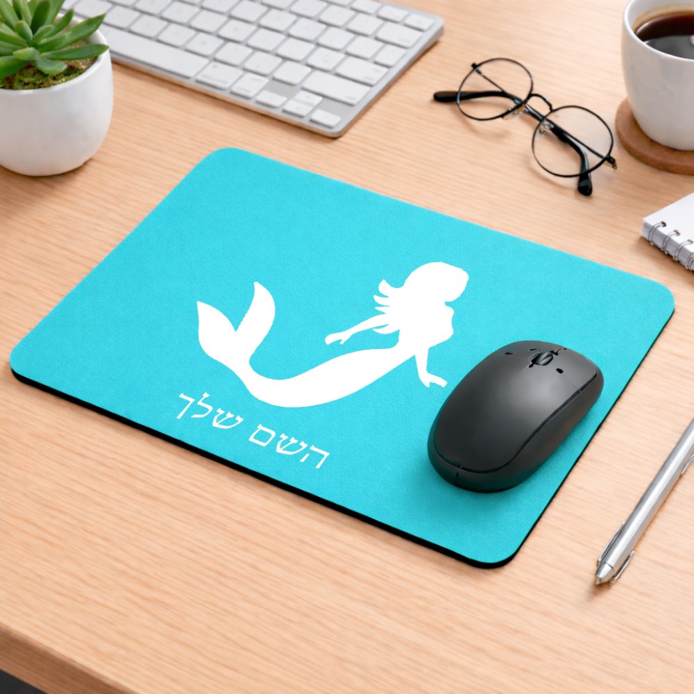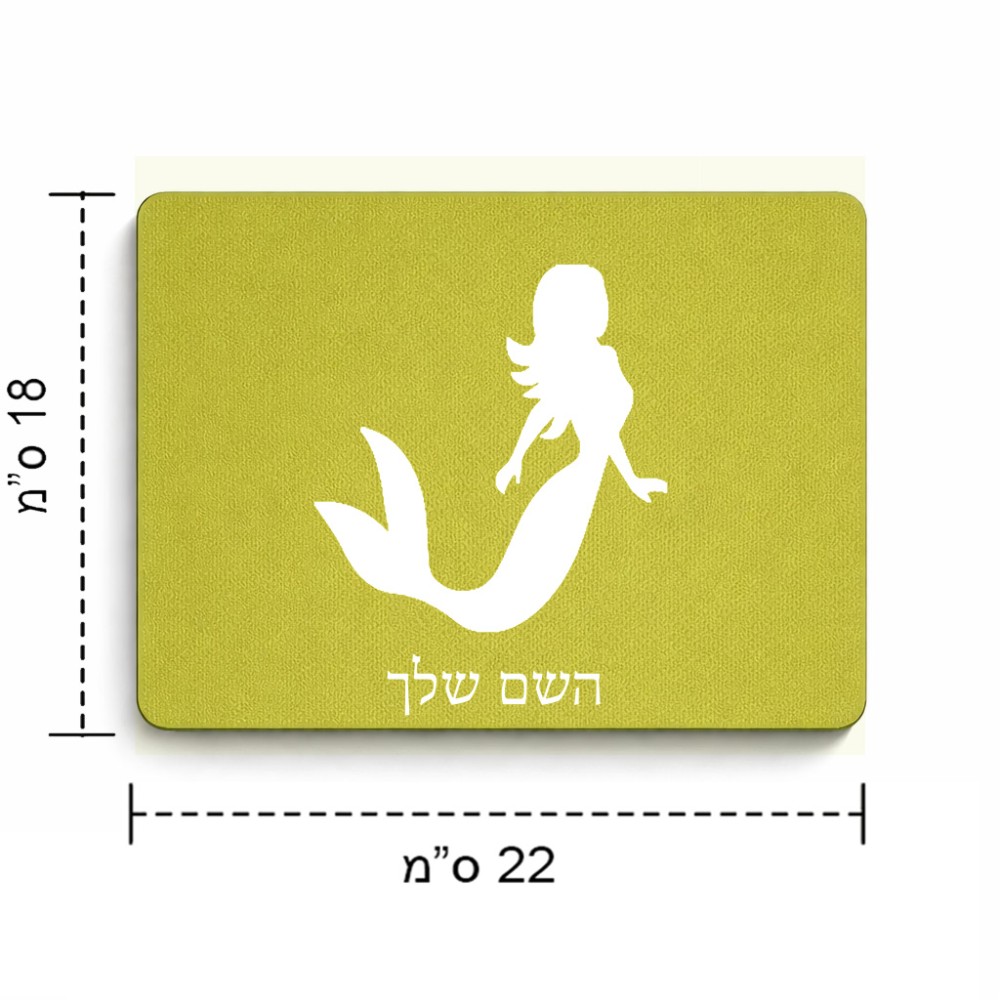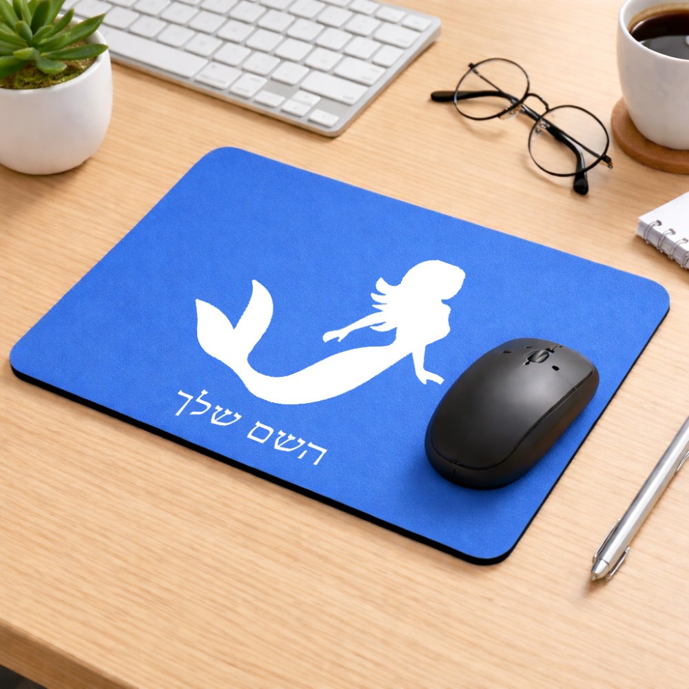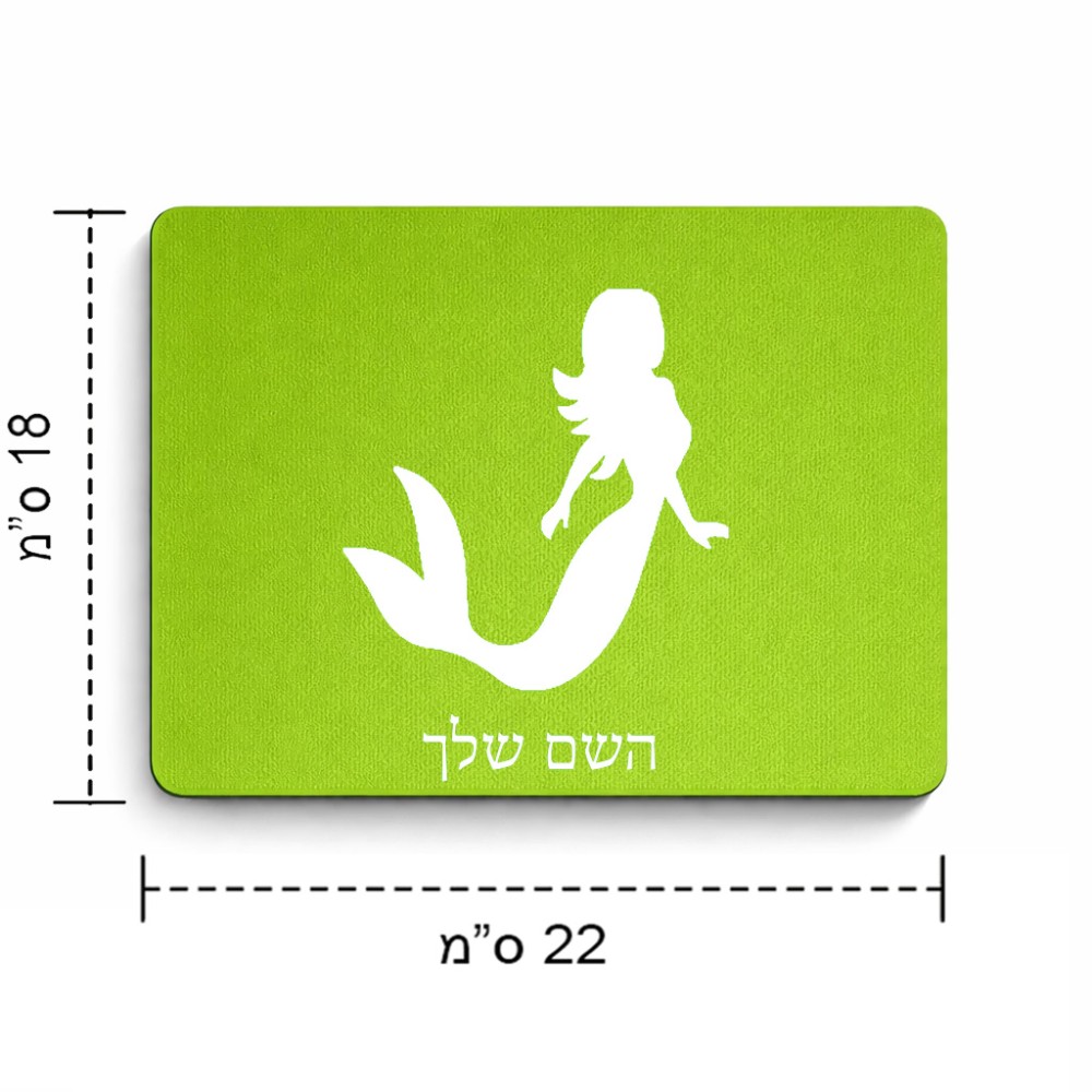 פד לעכבר בעיצוב אישי עם השם שלך בעיצוב בתולת ים - אישה גודל הפד 22 × 18 ס"מ. את השם המבוקש ניתן לציין בהזמנה, אם לא צויין אנחנו ניצור קשר לבירור.