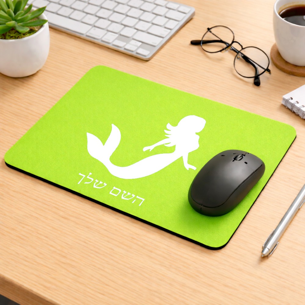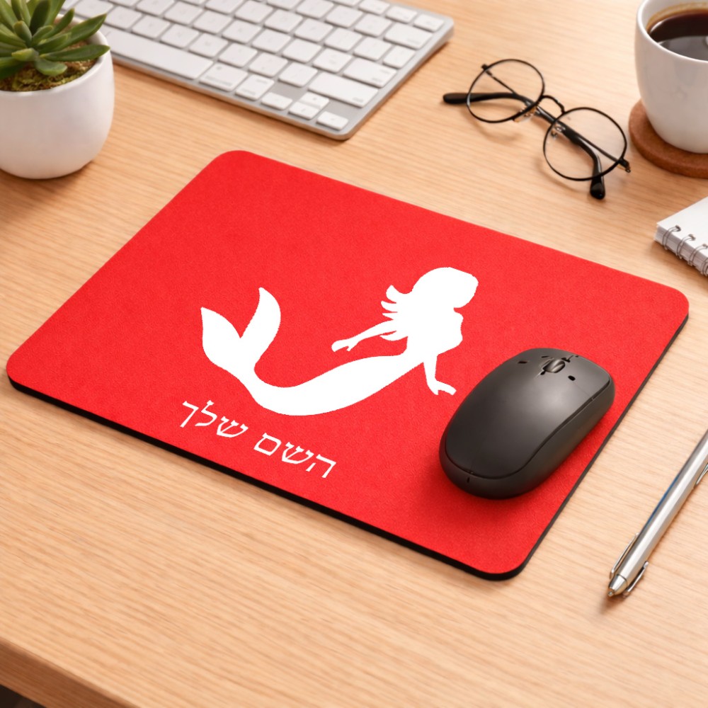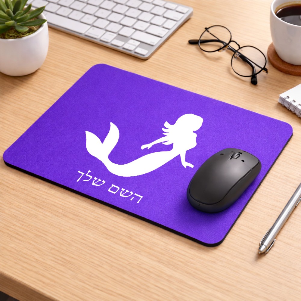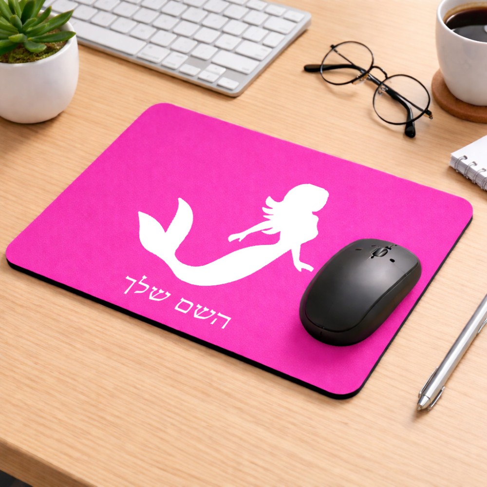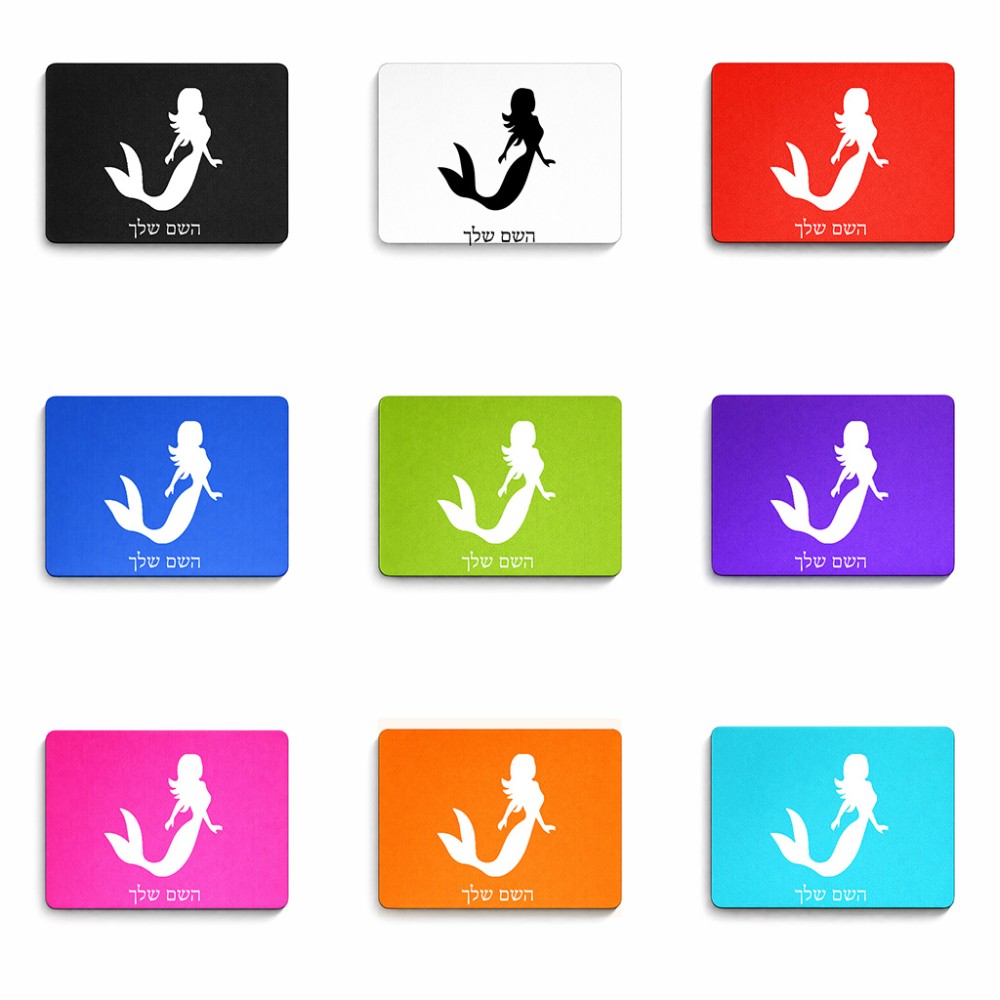 פד לעכבר בעיצוב אישי עם השם שלך בעיצוב בתולת ים - אישה גודל הפד 22 × 18 ס"מ. את השם המבוקש ניתן לציין בהזמנה, אם לא צויין אנחנו ניצור קשר לבירור.