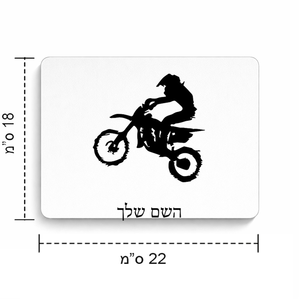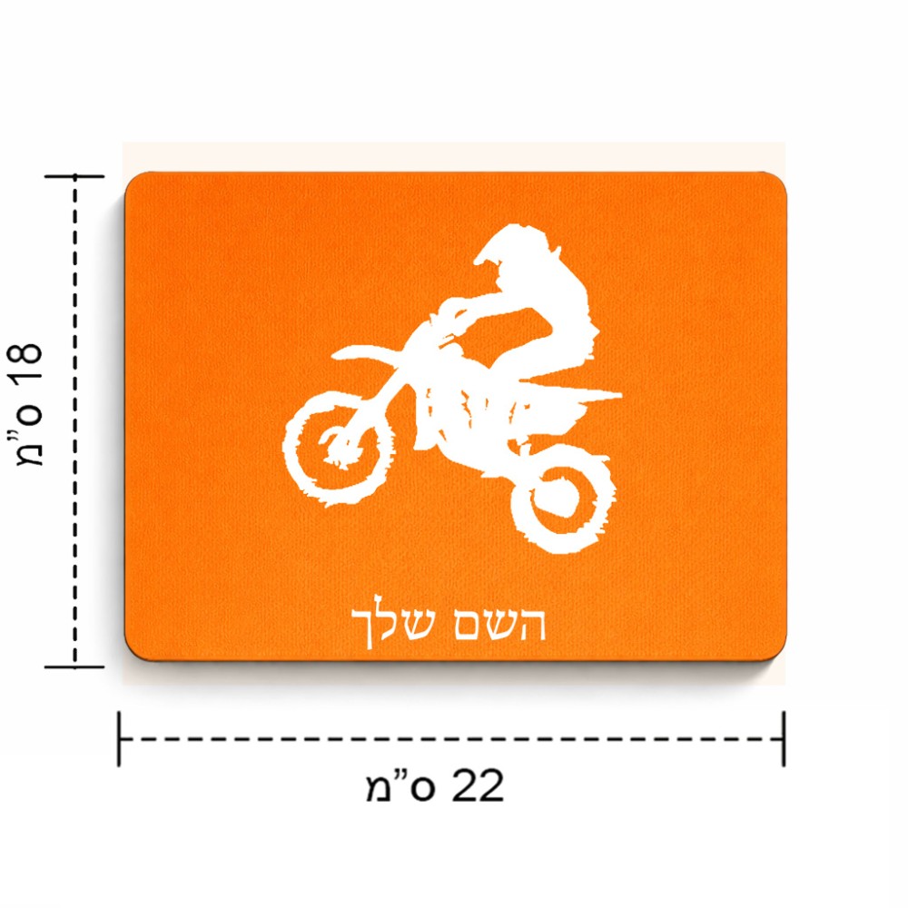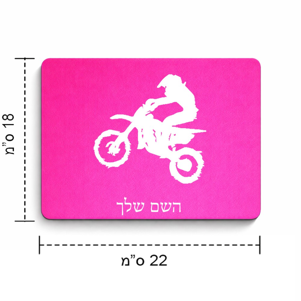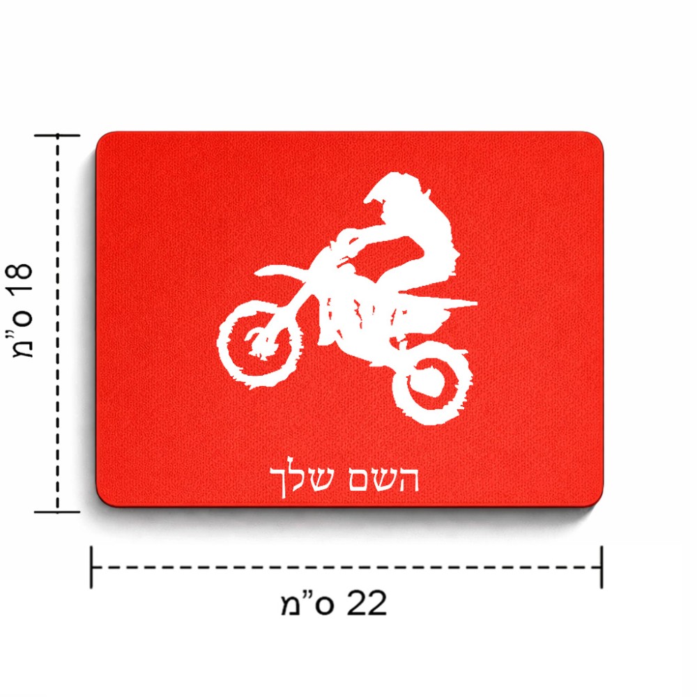 פד לעכבר בעיצוב אישי עם השם שלך בעיצוב מוטוקרוס גודל הפד 22 × 18 ס"מ. את השם המבוקש ניתן לציין בהזמנה, אם לא צויין אנחנו ניצור קשר לבירור.
