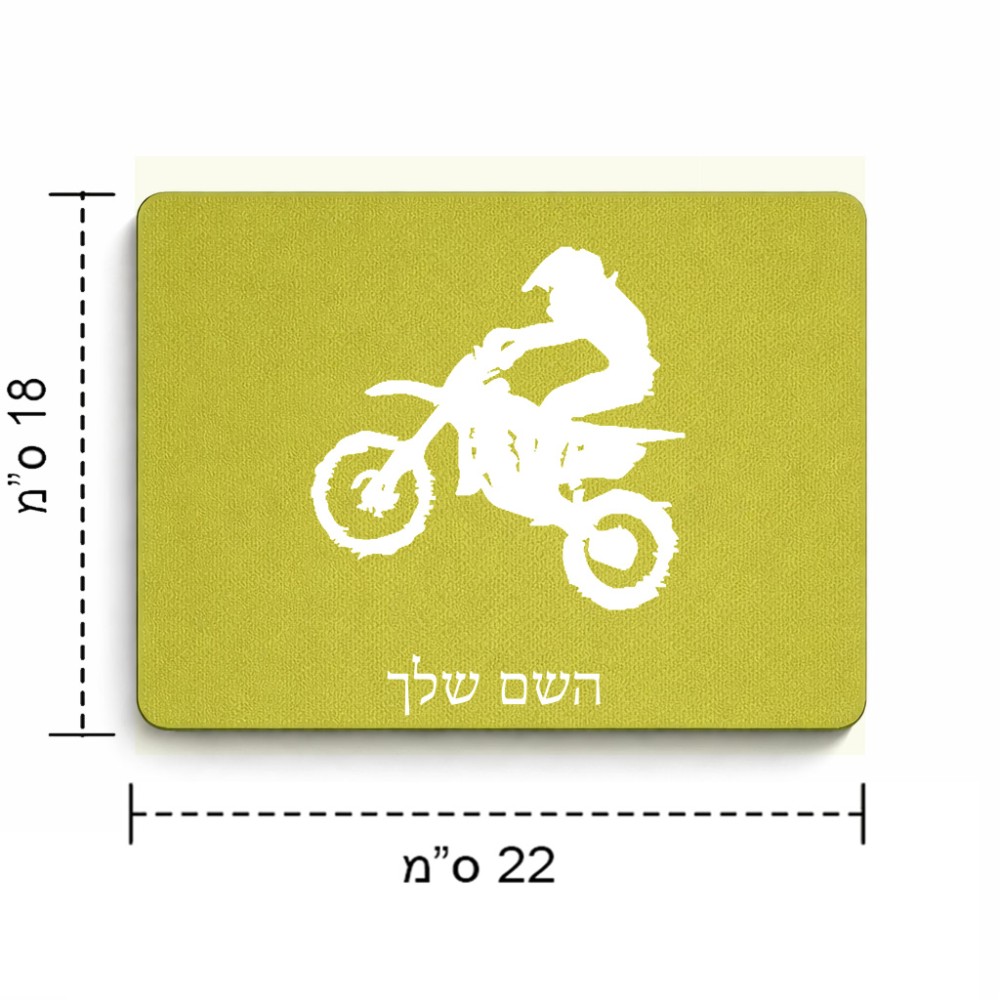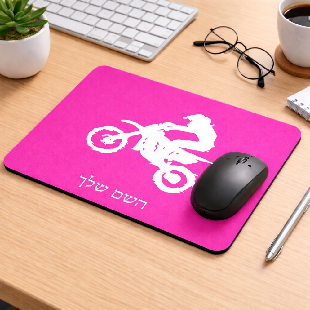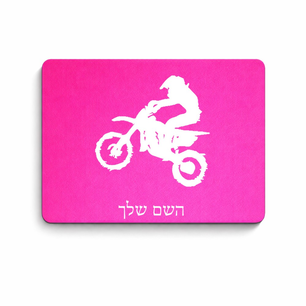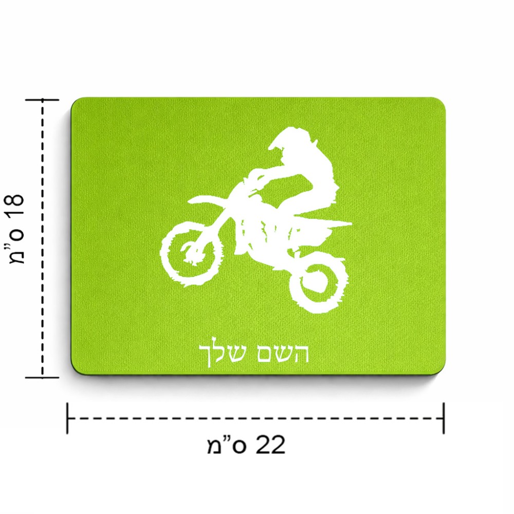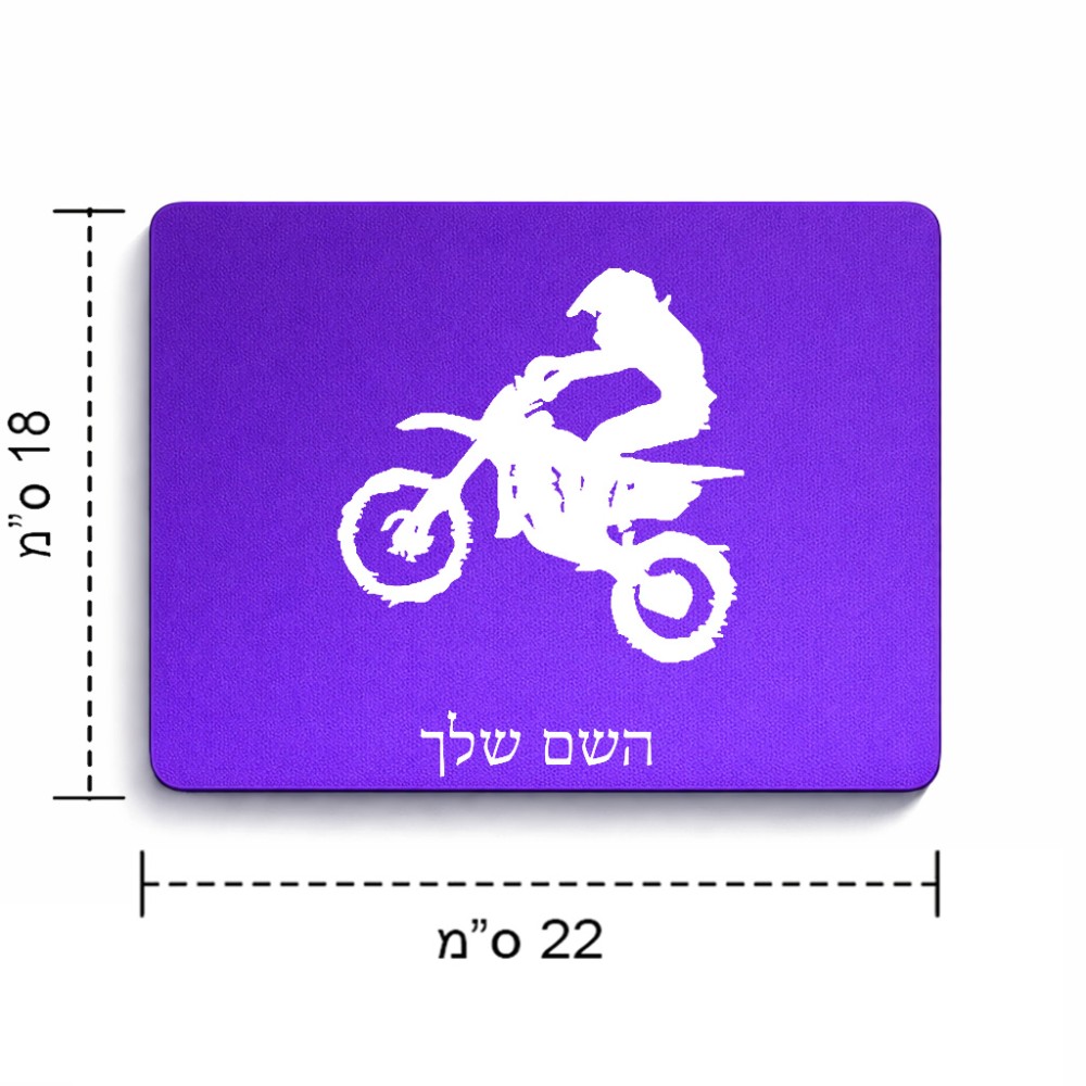 פד לעכבר בעיצוב אישי עם השם שלך בעיצוב מוטוקרוס גודל הפד 22 × 18 ס"מ. את השם המבוקש ניתן לציין בהזמנה, אם לא צויין אנחנו ניצור קשר לבירור.
