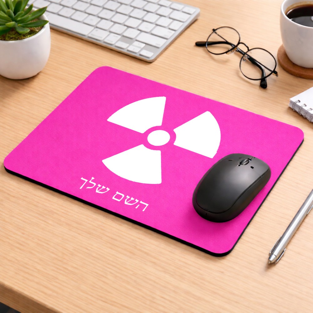 פד לעכבר בעיצוב אישי עם השם שלך בעיצוב פצצת אטום גרעינית גודל הפד 22 × 18 ס"מ. את השם המבוקש ניתן לציין בהזמנה, אם לא צויין אנחנו ניצור קשר לבירור.