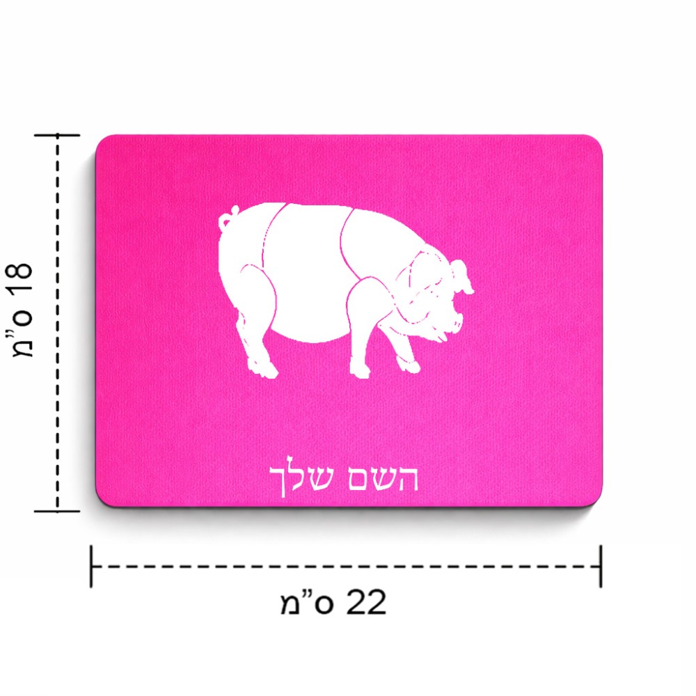 פד לעכבר בעיצוב אישי עם השם שלך בעיצוב חזיר גודל הפד 22 × 18 ס"מ. את השם המבוקש ניתן לציין בהזמנה, אם לא צויין אנחנו ניצור קשר לבירור.