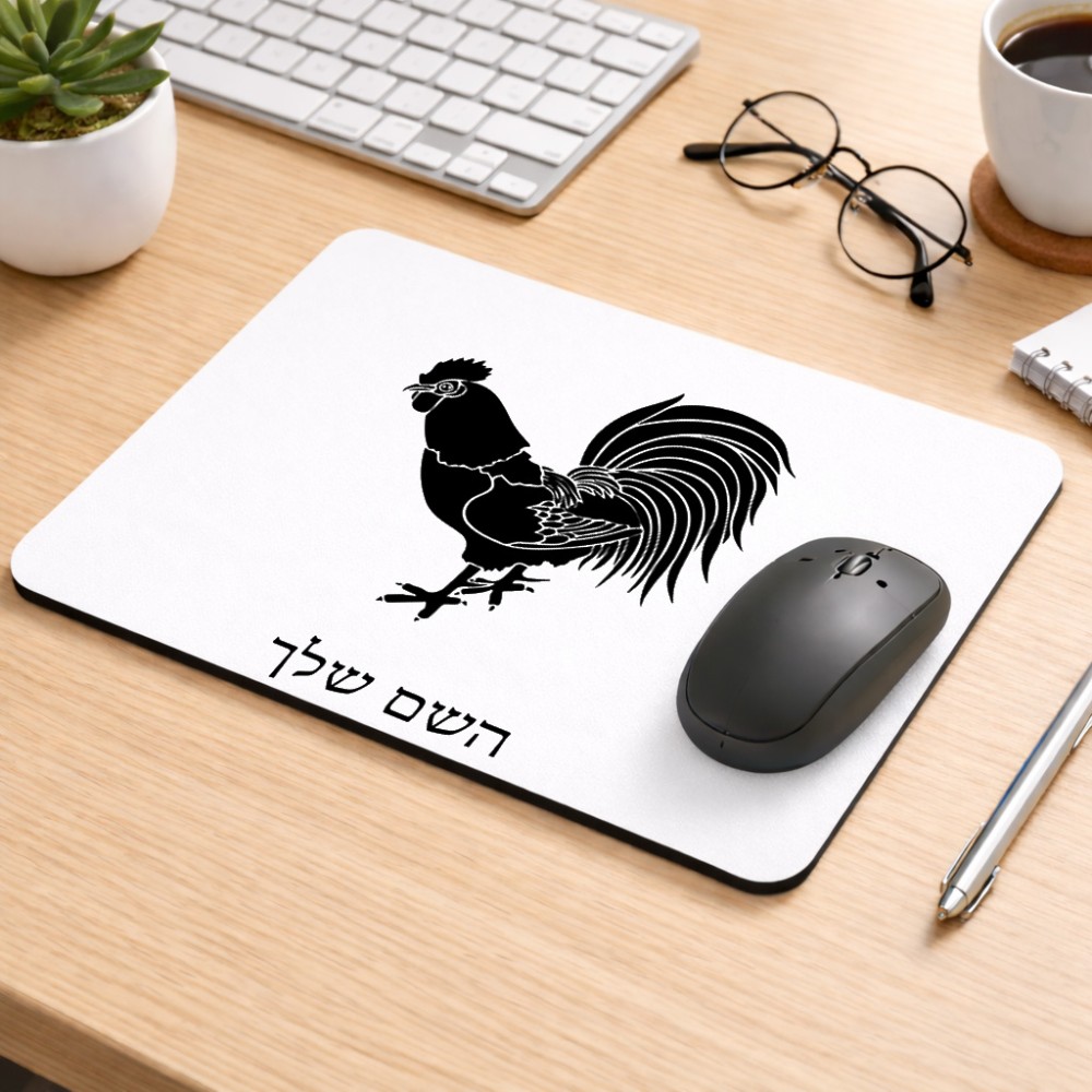 פד לעכבר בעיצוב אישי עם השם שלך בעיצוב תרנגול גודל הפד 22 × 18 ס"מ. את השם המבוקש ניתן לציין בהזמנה, אם לא צויין אנחנו ניצור קשר לבירור.