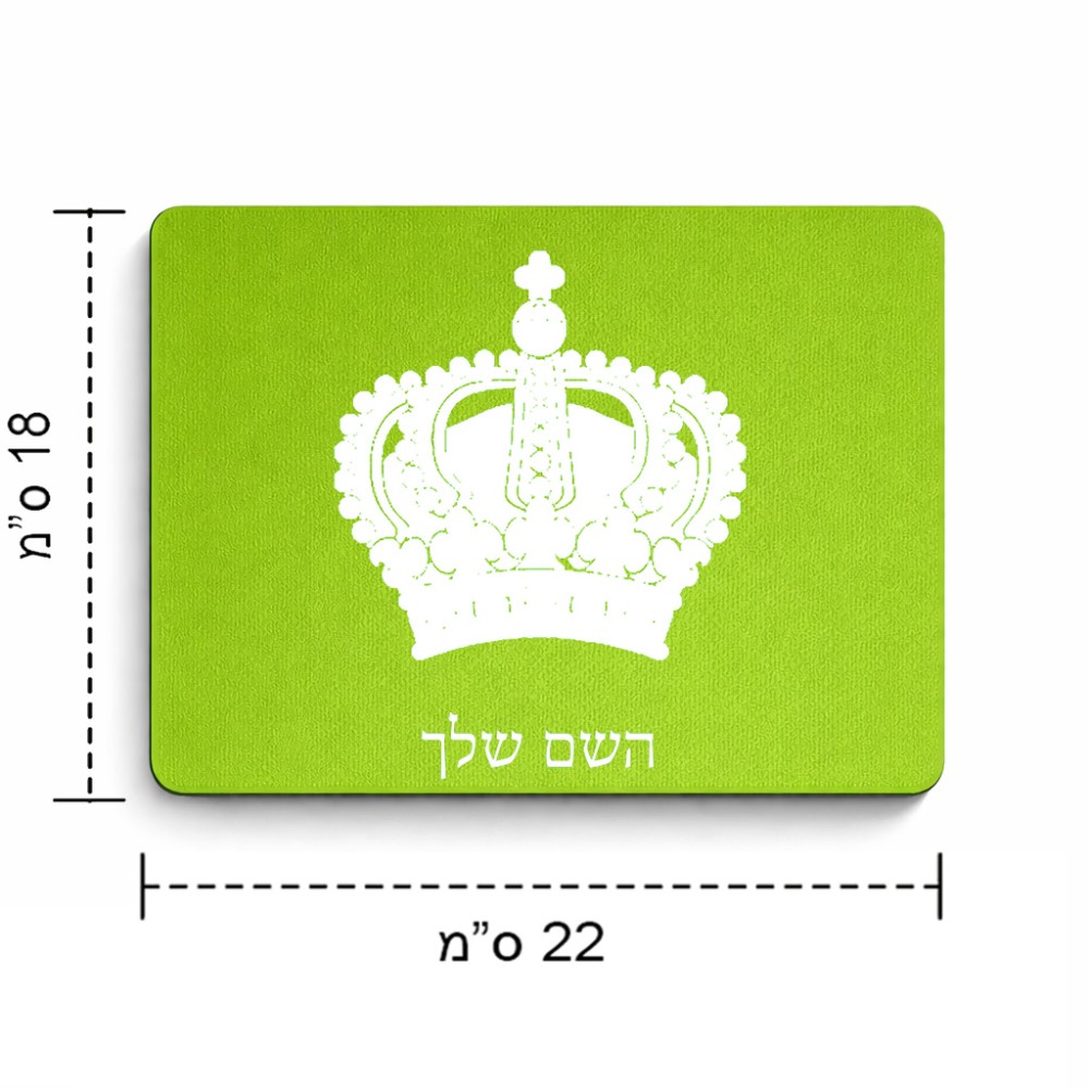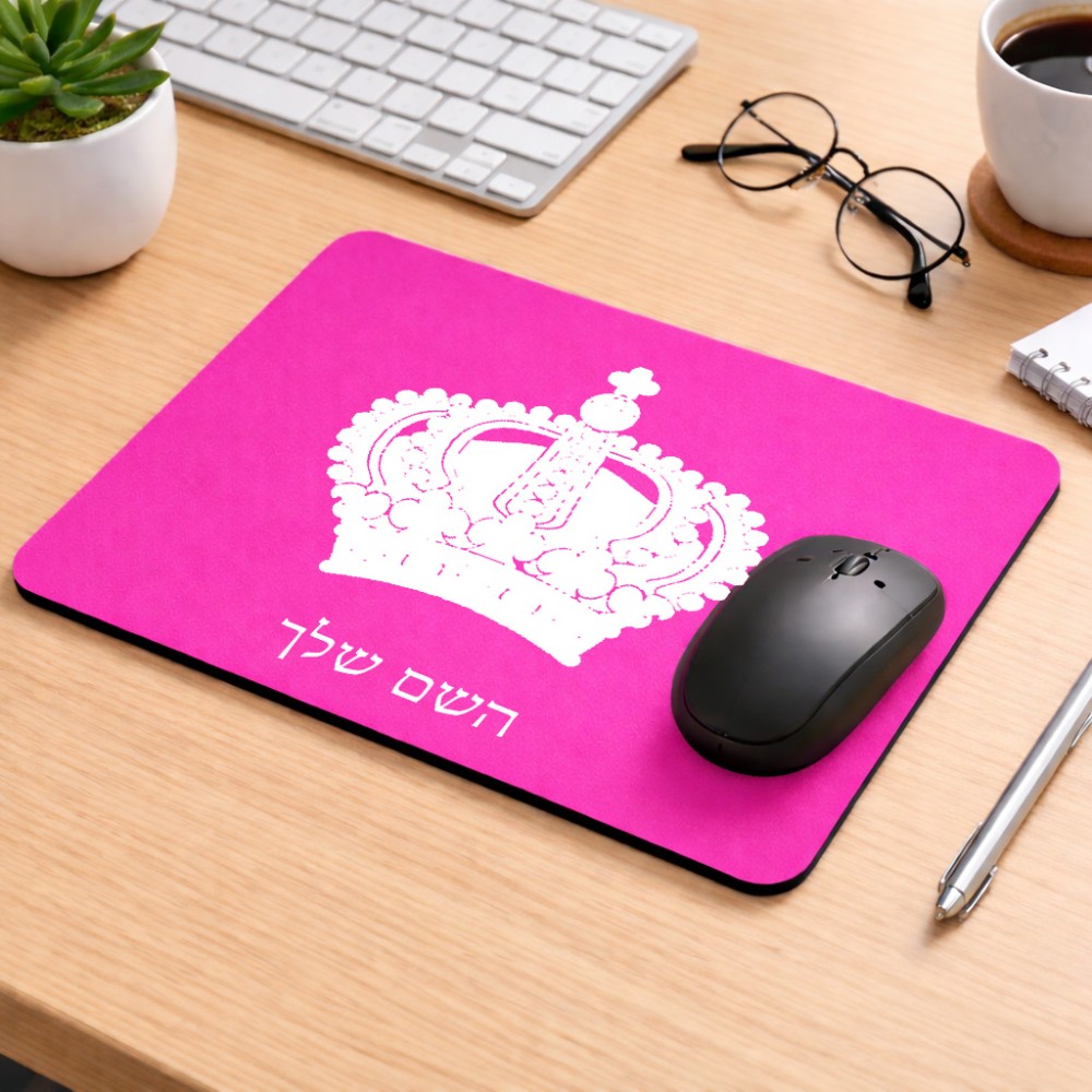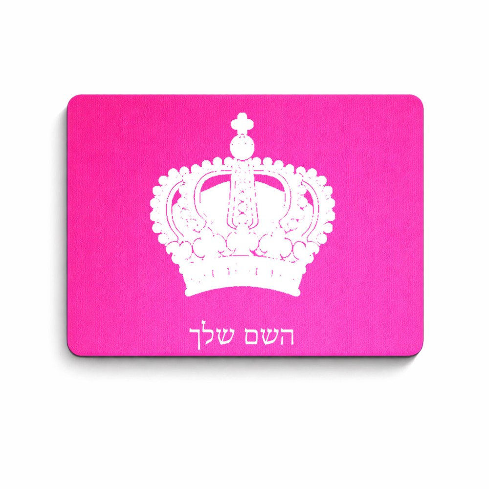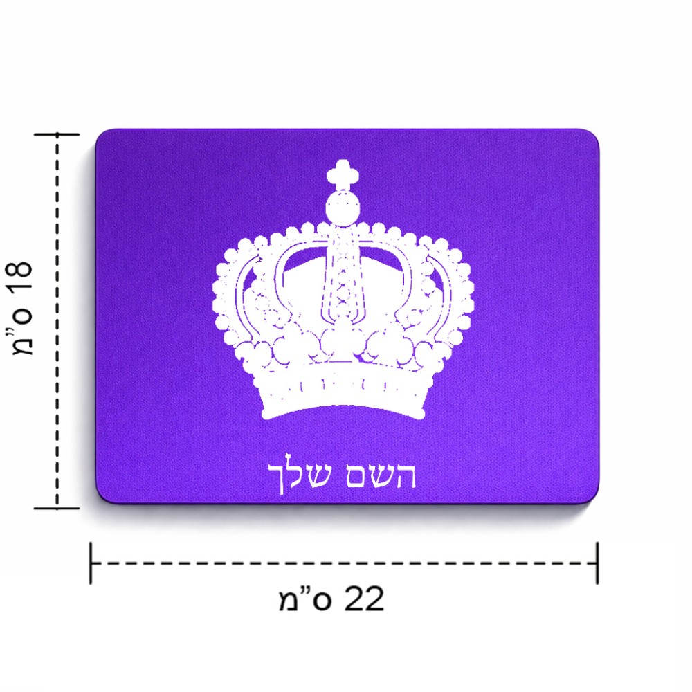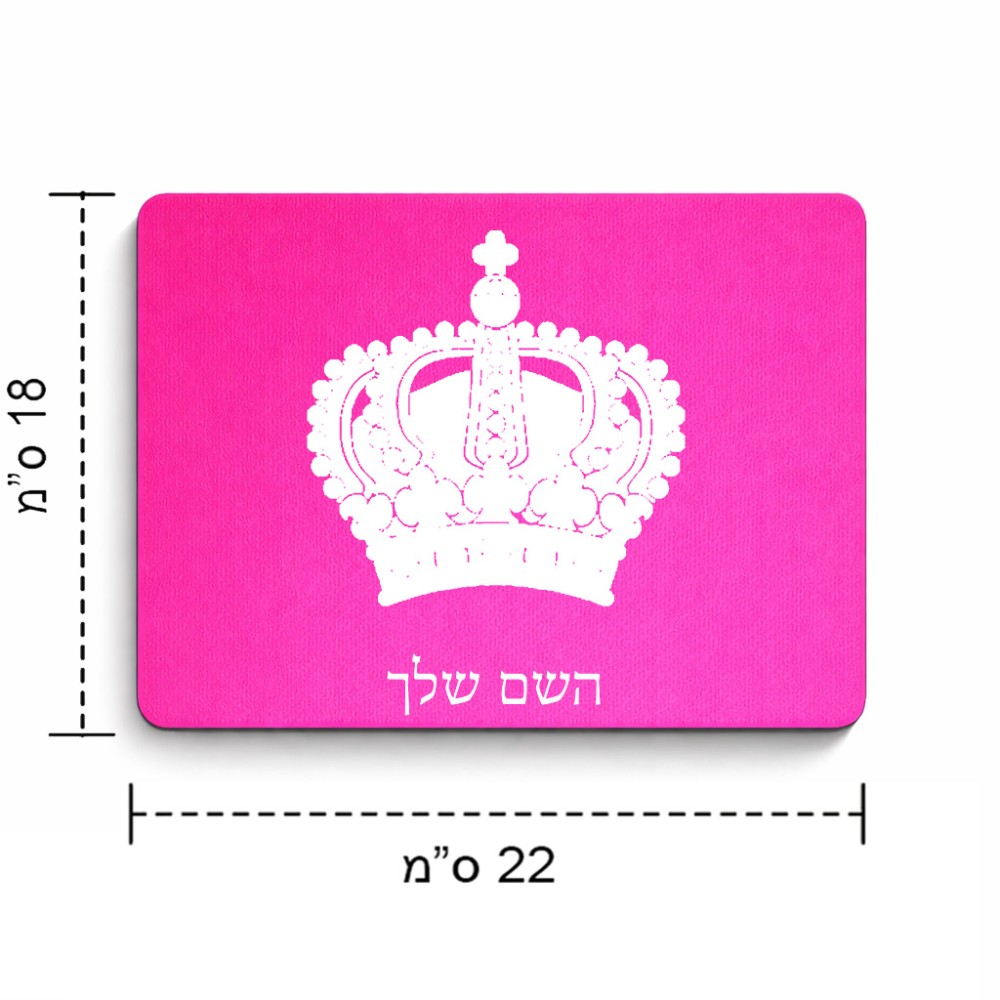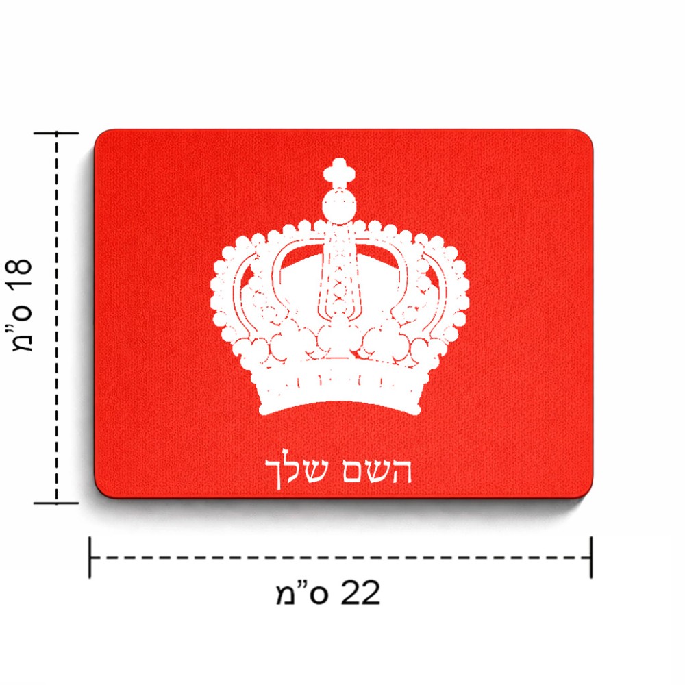 פד לעכבר בעיצוב אישי עם השם שלך בעיצוב כתר מלכותי גודל הפד 22 × 18 ס"מ. את השם המבוקש ניתן לציין בהזמנה, אם לא צויין אנחנו ניצור קשר לבירור.