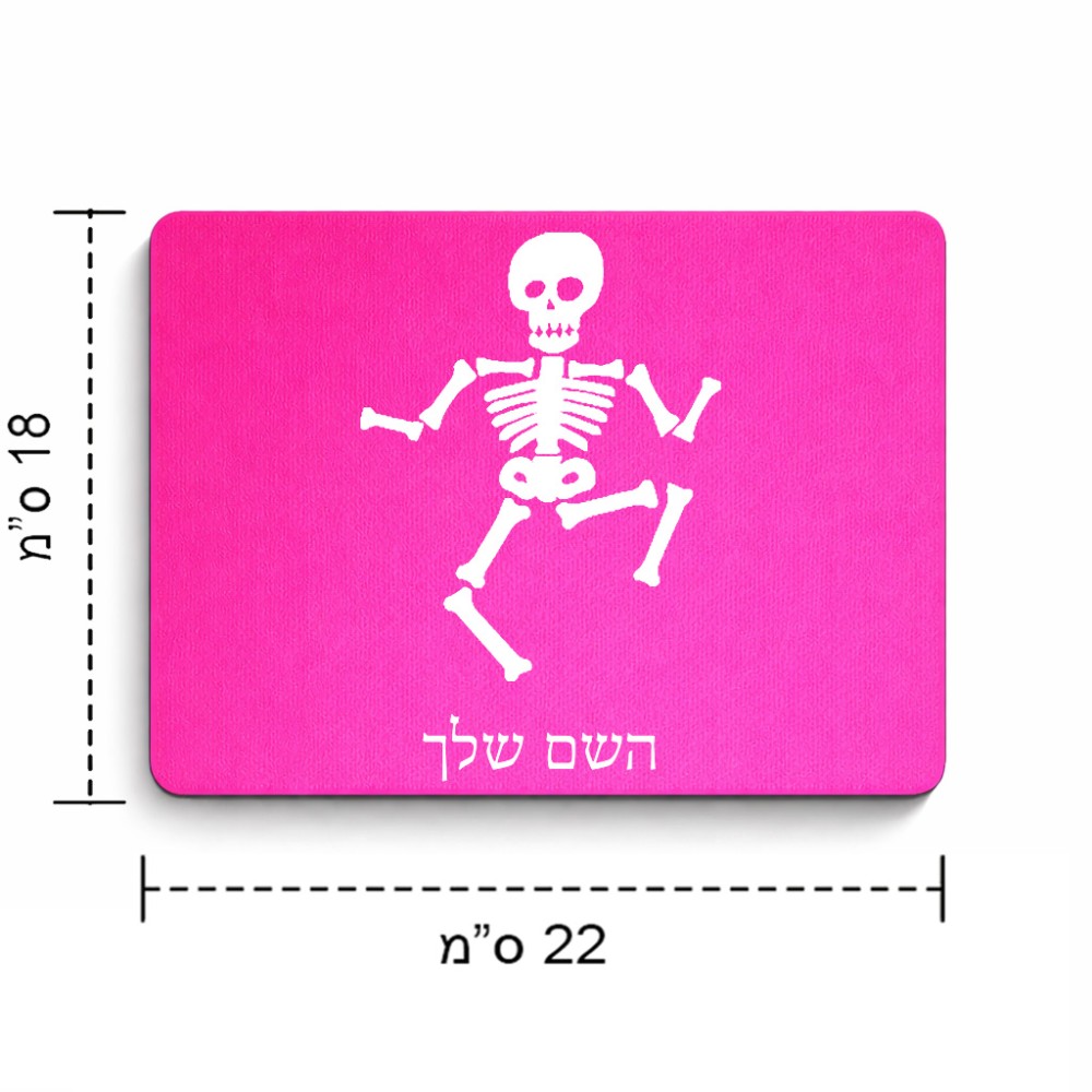 פד לעכבר בעיצוב אישי עם השם שלך בעיצוב סקלטון גודל הפד 22 × 18 ס"מ. את השם המבוקש ניתן לציין בהזמנה, אם לא צויין אנחנו ניצור קשר לבירור.