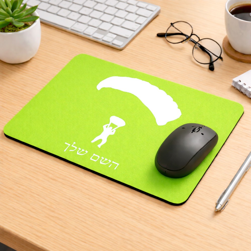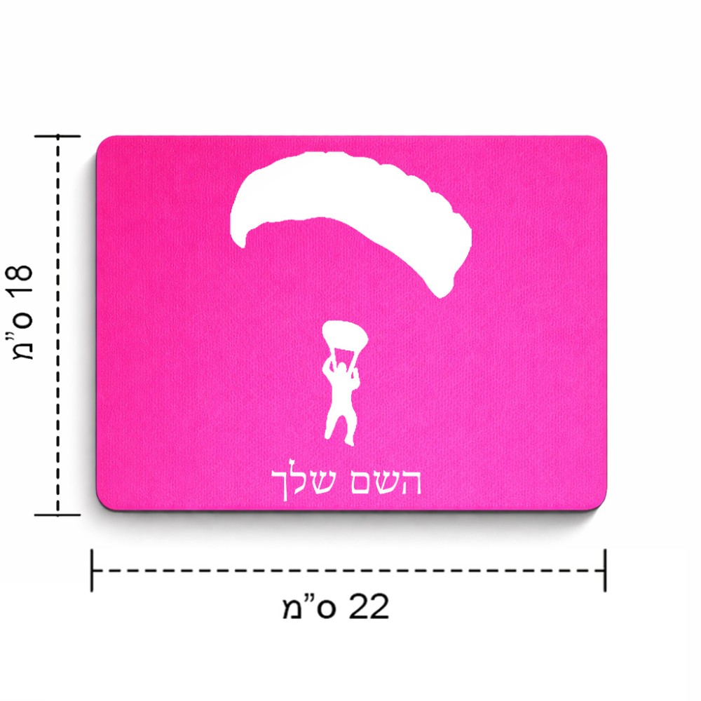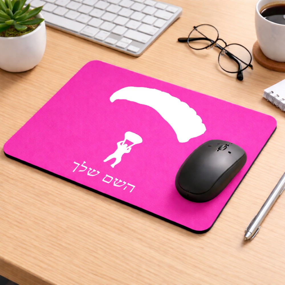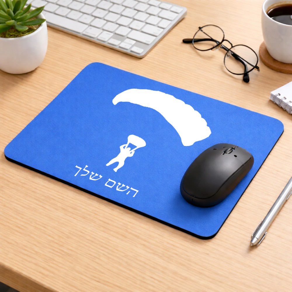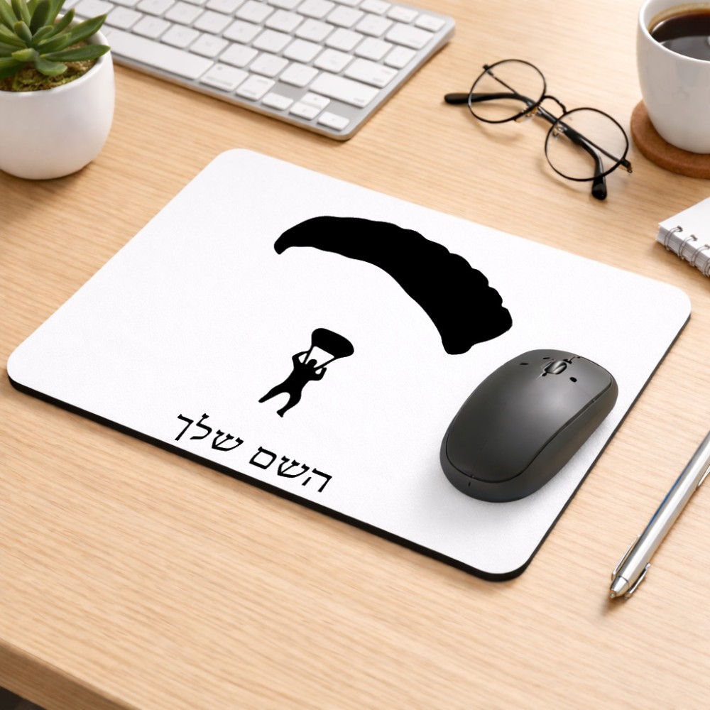 פד לעכבר בעיצוב אישי עם השם שלך בעיצוב צניחה חופשית גודל הפד 22 × 18 ס"מ. את השם המבוקש ניתן לציין בהזמנה, אם לא צויין אנחנו ניצור קשר לבירור.