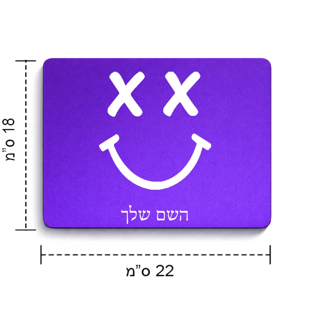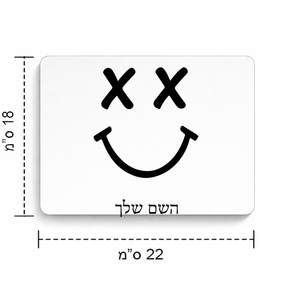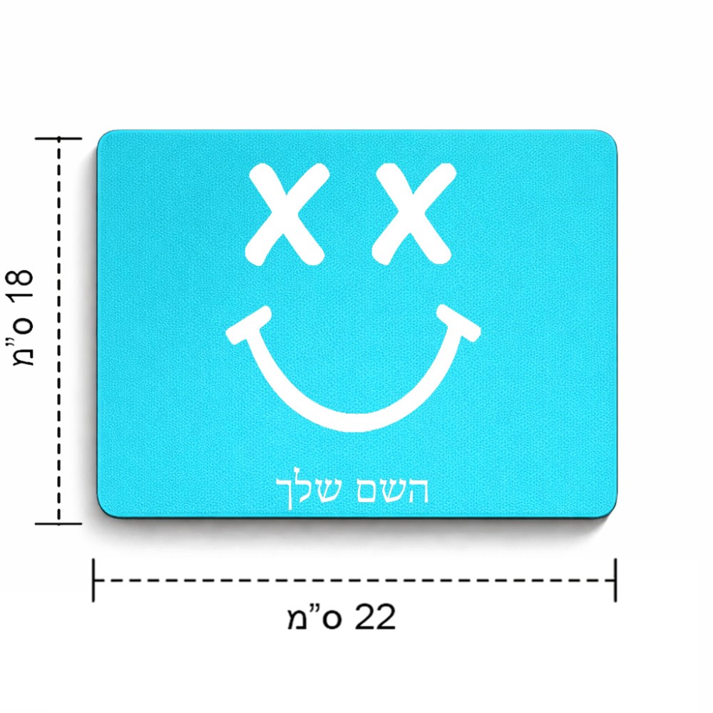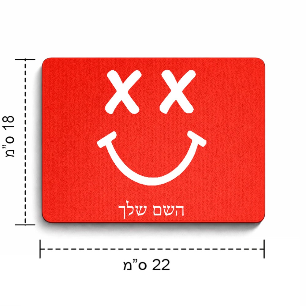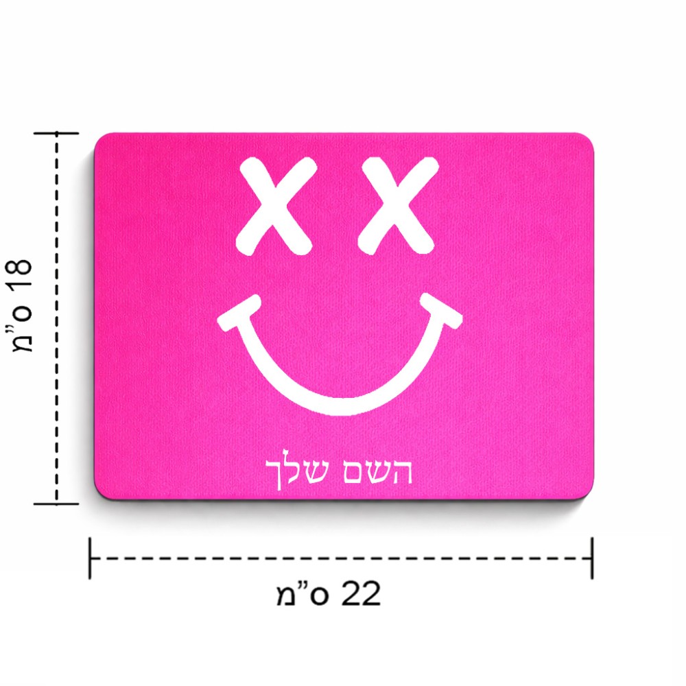 פד לעכבר בעיצוב אישי עם השם שלך בעיצוב סמיילי גודל הפד 22 × 18 ס"מ. את השם המבוקש ניתן לציין בהזמנה, אם לא צויין אנחנו ניצור קשר לבירור.