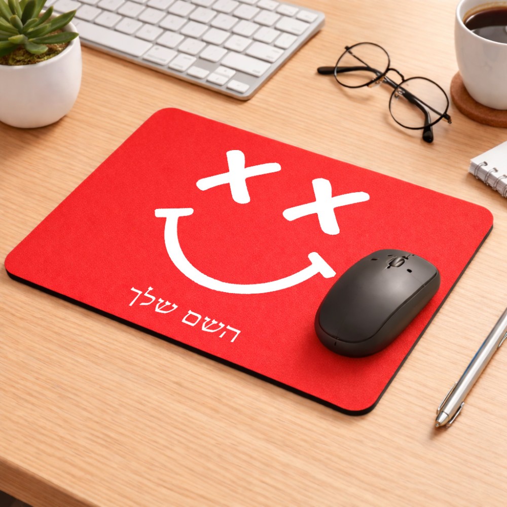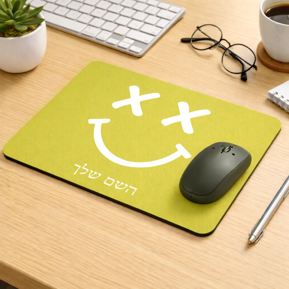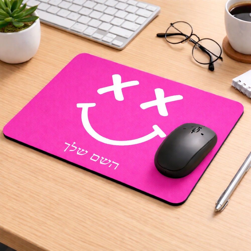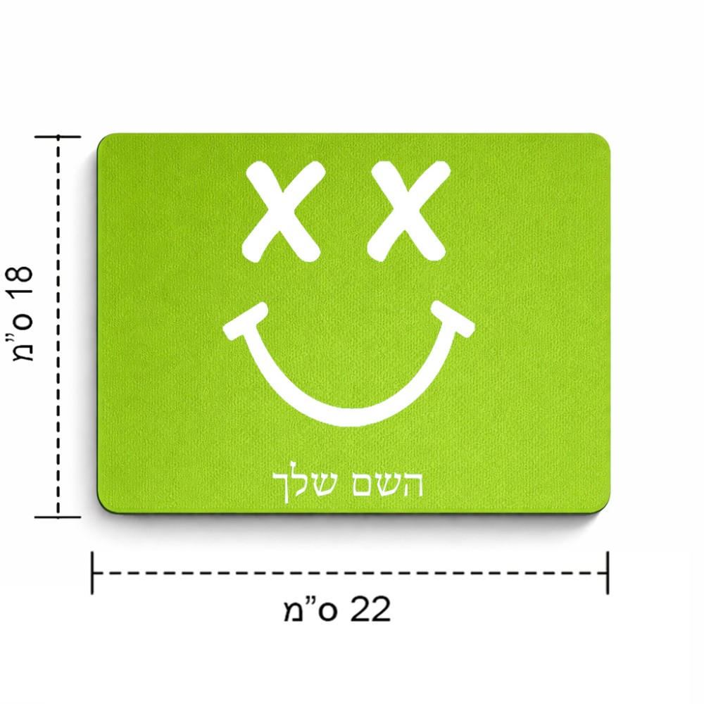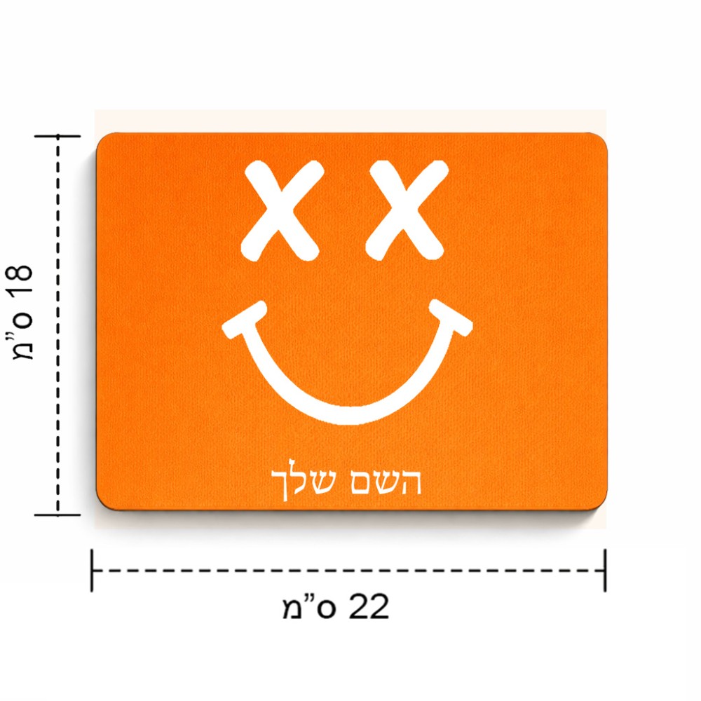 פד לעכבר בעיצוב אישי עם השם שלך בעיצוב סמיילי גודל הפד 22 × 18 ס"מ. את השם המבוקש ניתן לציין בהזמנה, אם לא צויין אנחנו ניצור קשר לבירור.