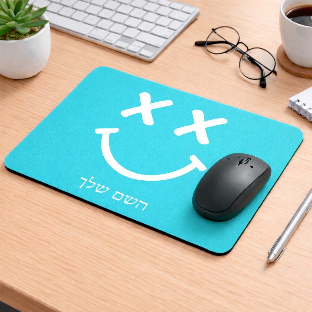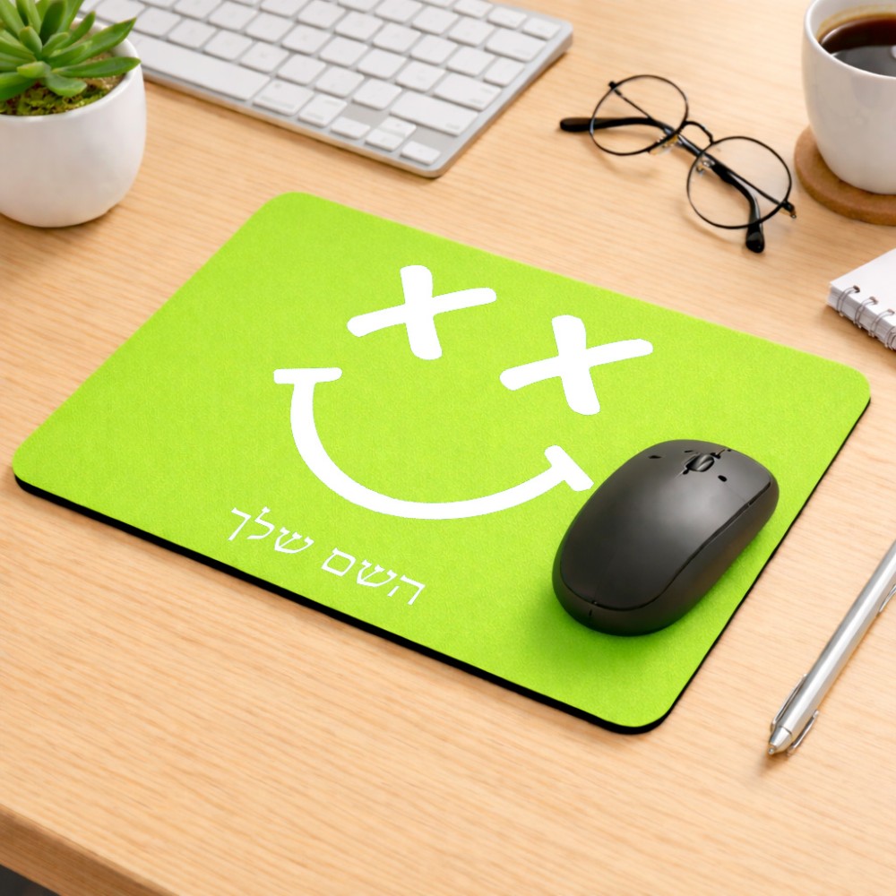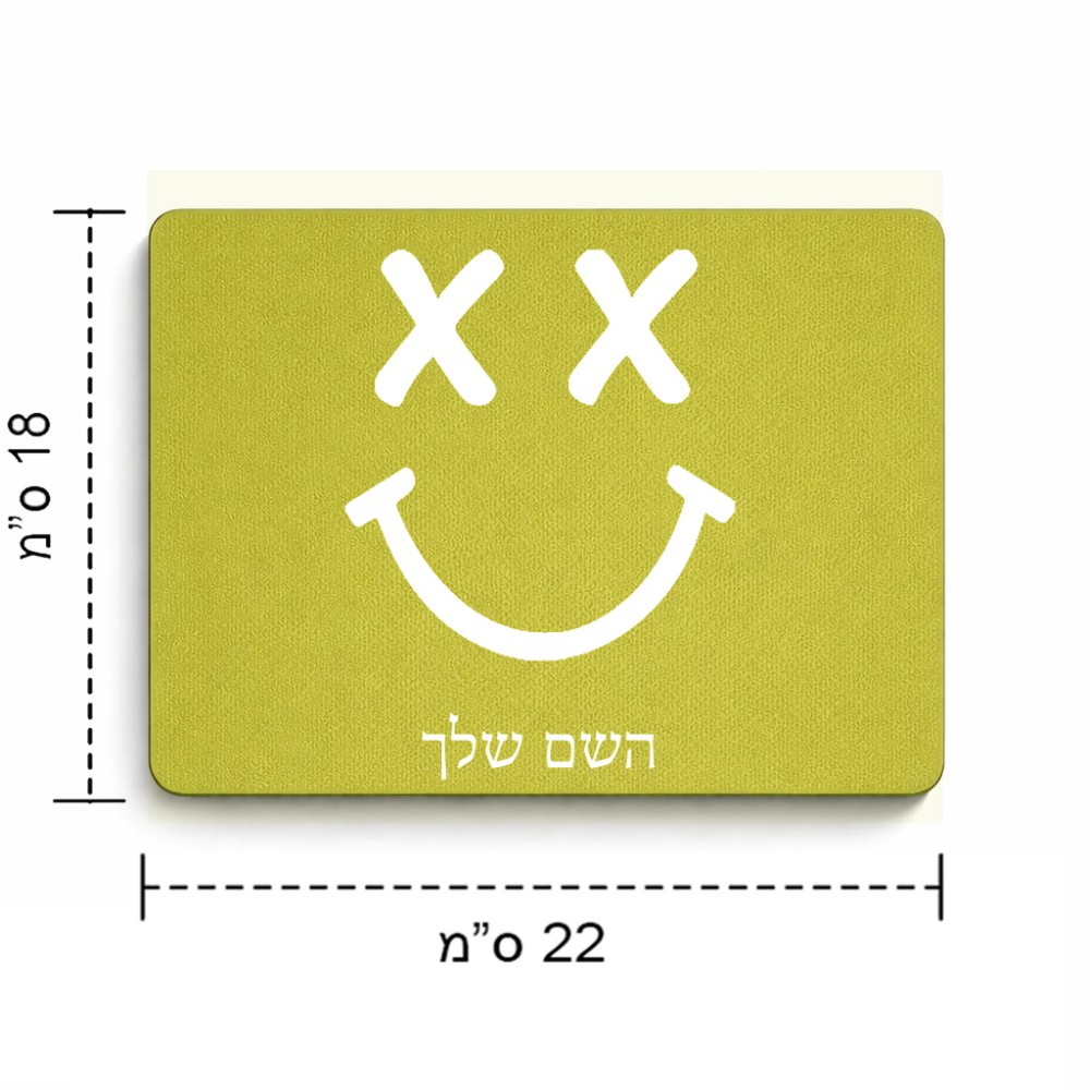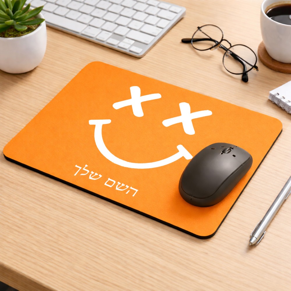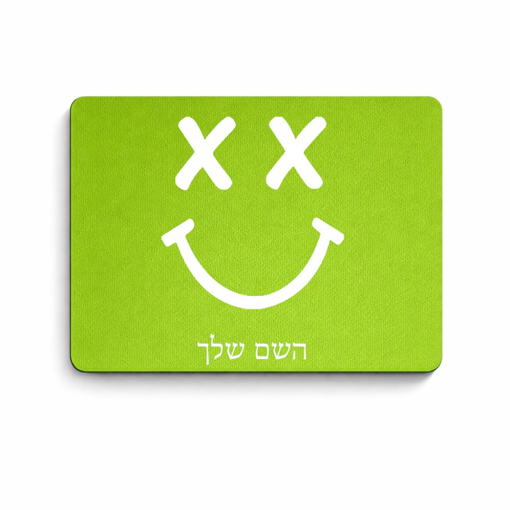 פד לעכבר בעיצוב אישי עם השם שלך בעיצוב סמיילי גודל הפד 22 × 18 ס"מ. את השם המבוקש ניתן לציין בהזמנה, אם לא צויין אנחנו ניצור קשר לבירור.