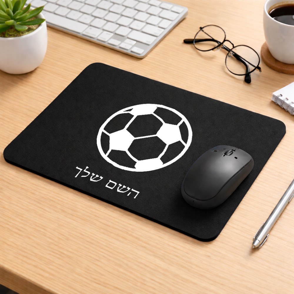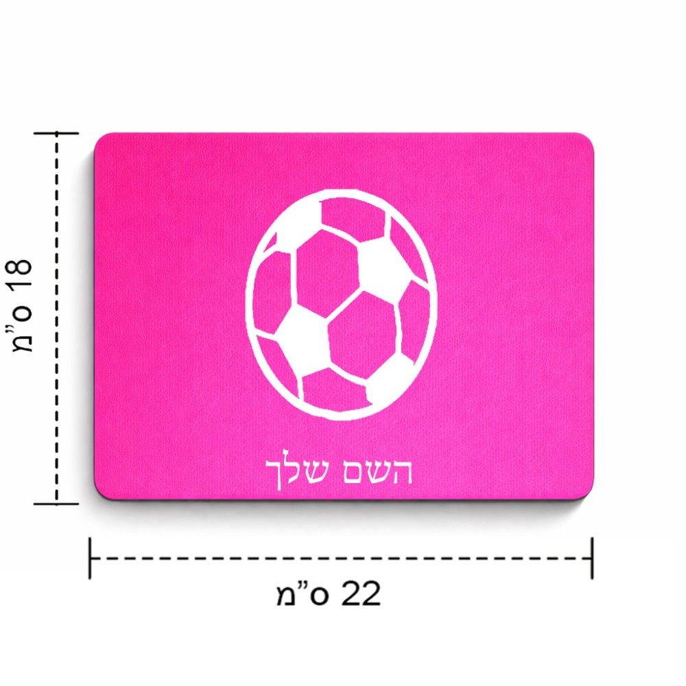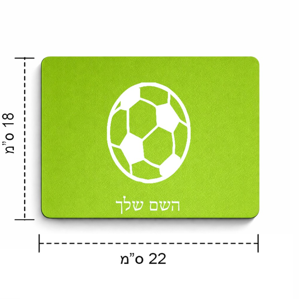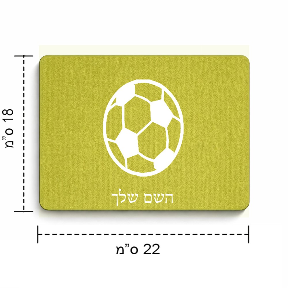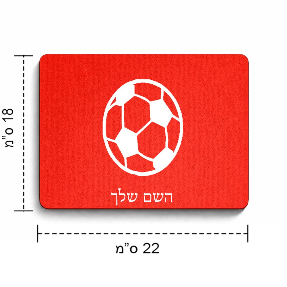 פד לעכבר בעיצוב אישי עם השם שלך בעיצוב כדורגל כדור כדורגל גודל הפד 22 × 18 ס"מ. את השם המבוקש ניתן לציין בהזמנה, אם לא צויין אנחנו ניצור קשר לבירור.