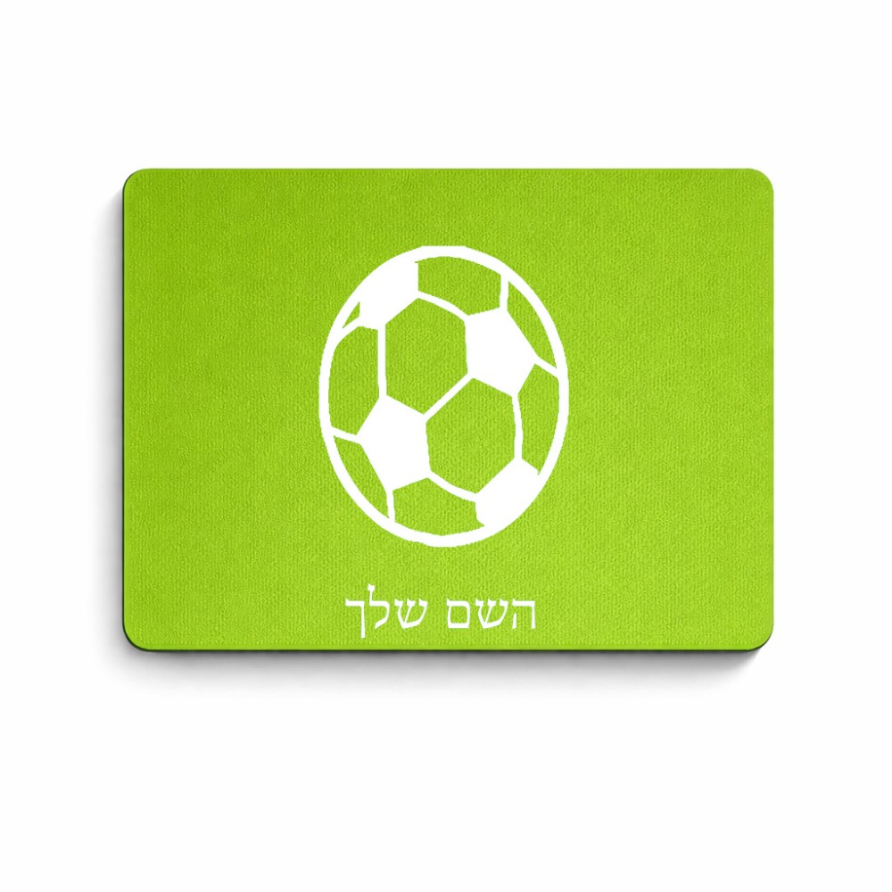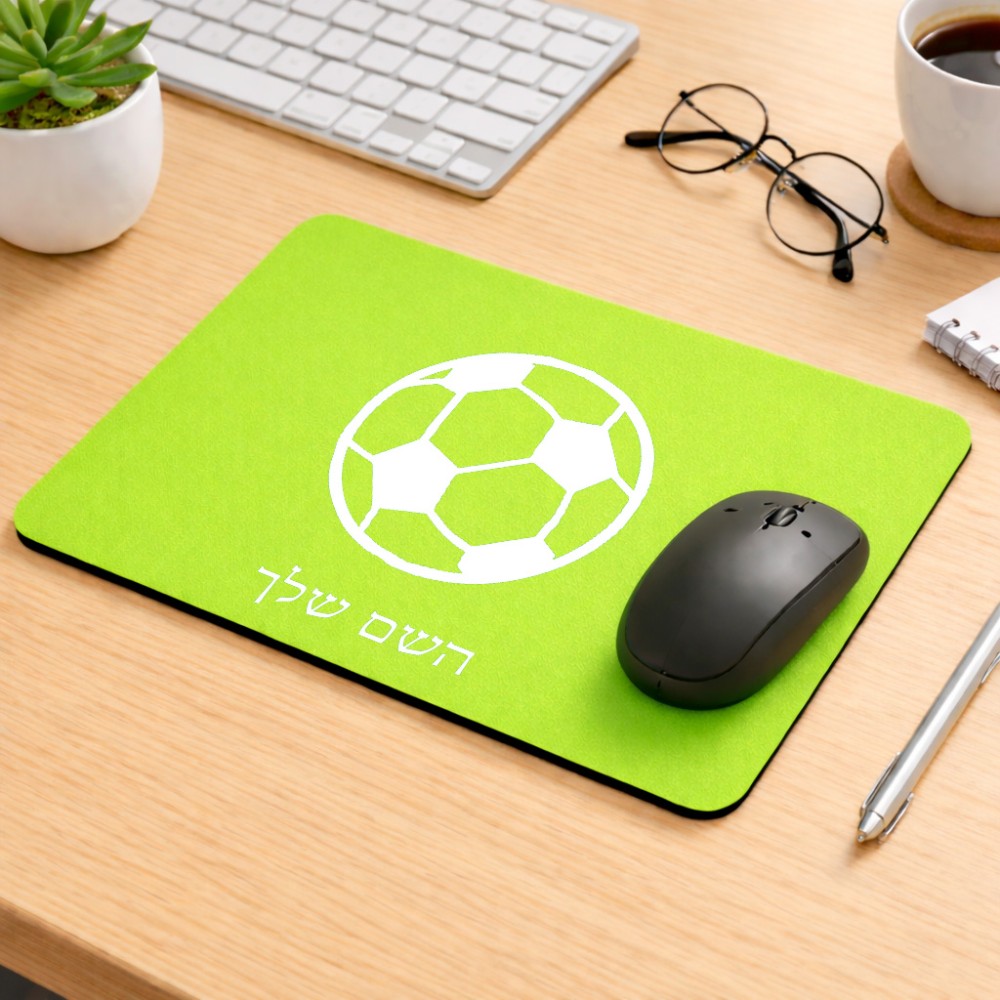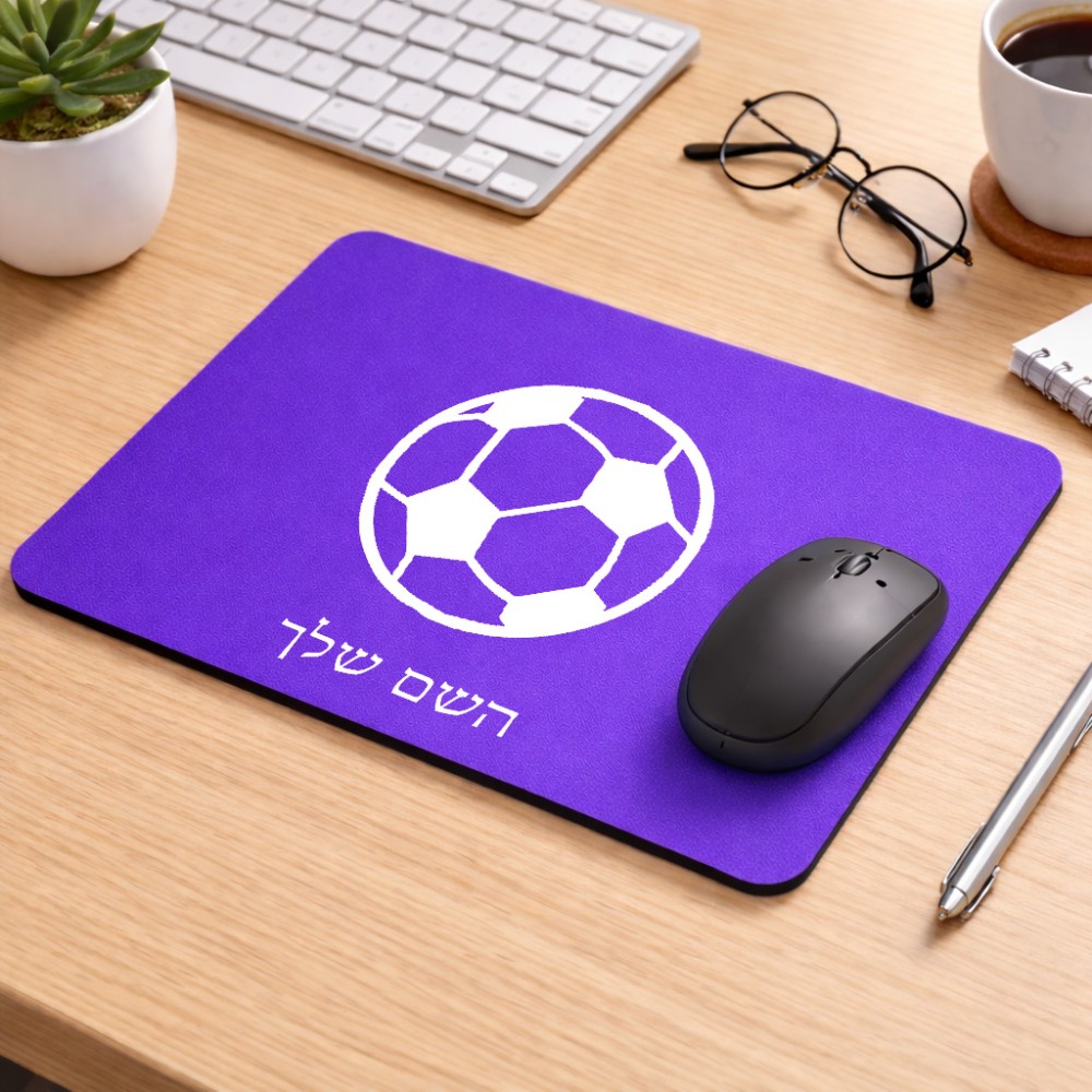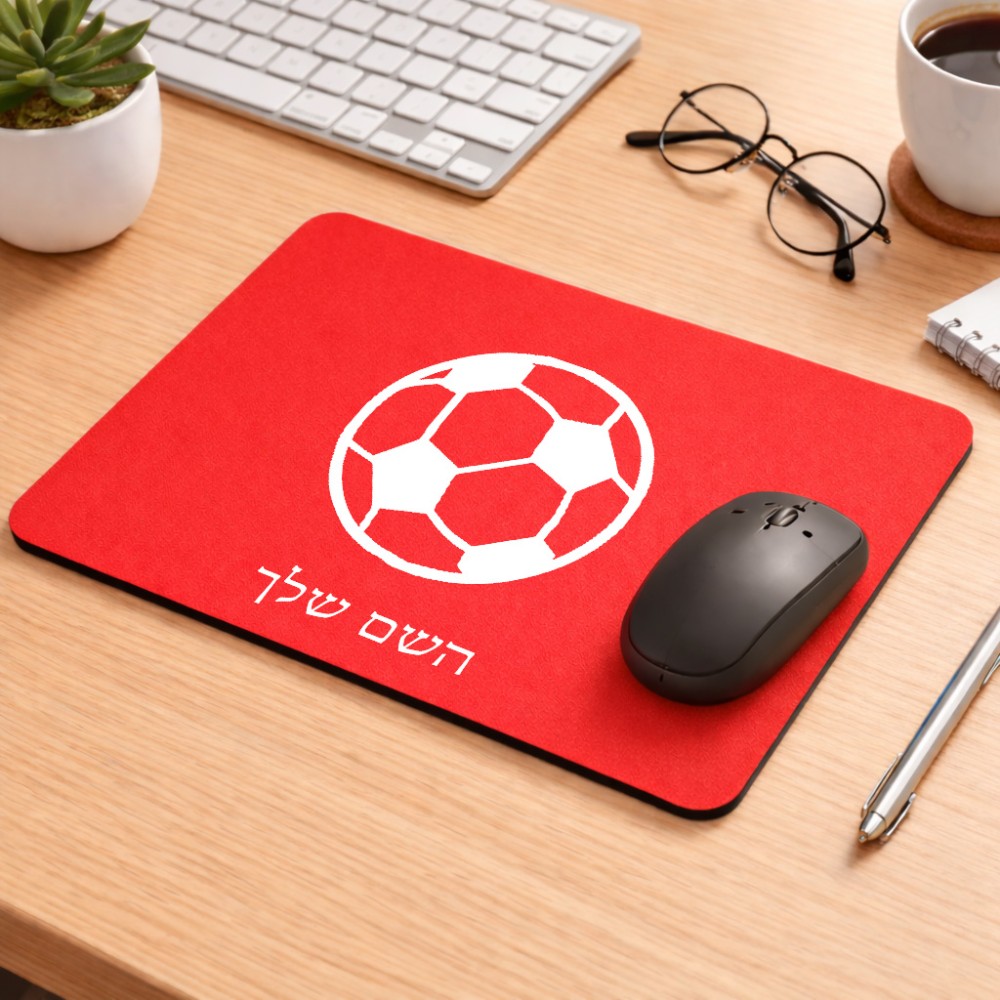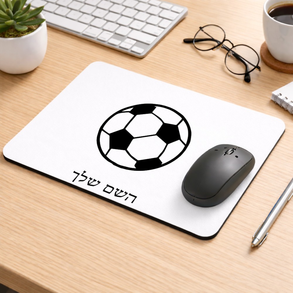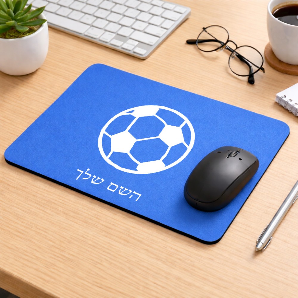 פד לעכבר בעיצוב אישי עם השם שלך בעיצוב כדורגל כדור כדורגל גודל הפד 22 × 18 ס"מ. את השם המבוקש ניתן לציין בהזמנה, אם לא צויין אנחנו ניצור קשר לבירור.