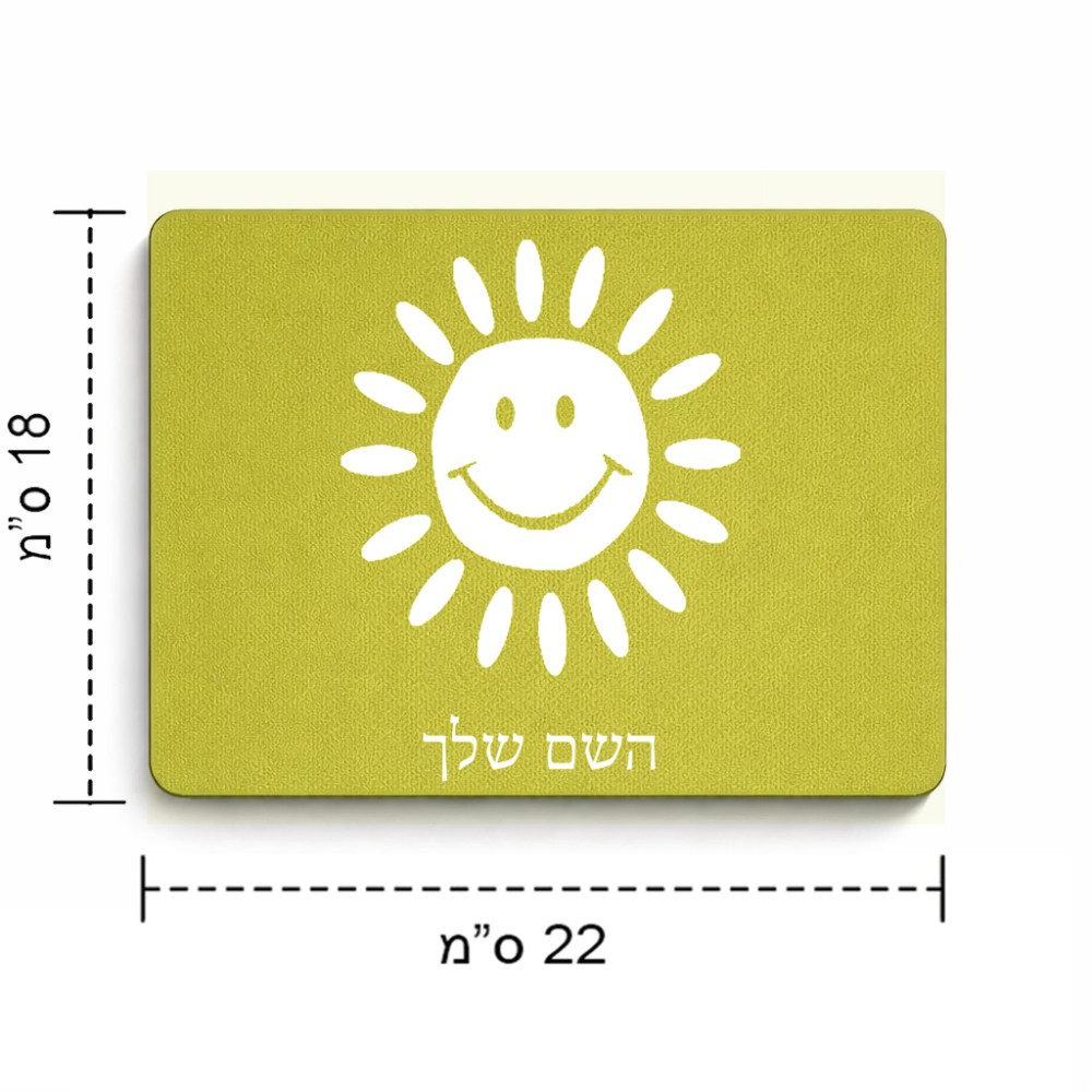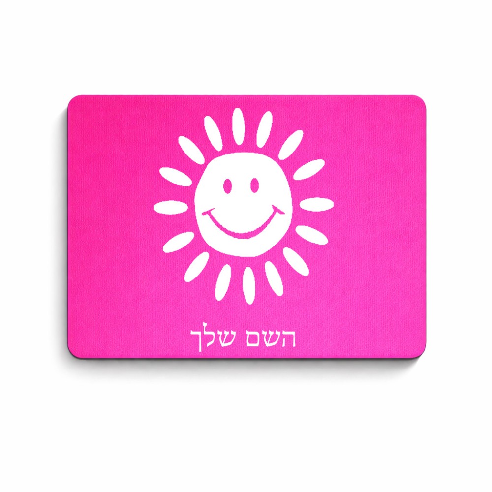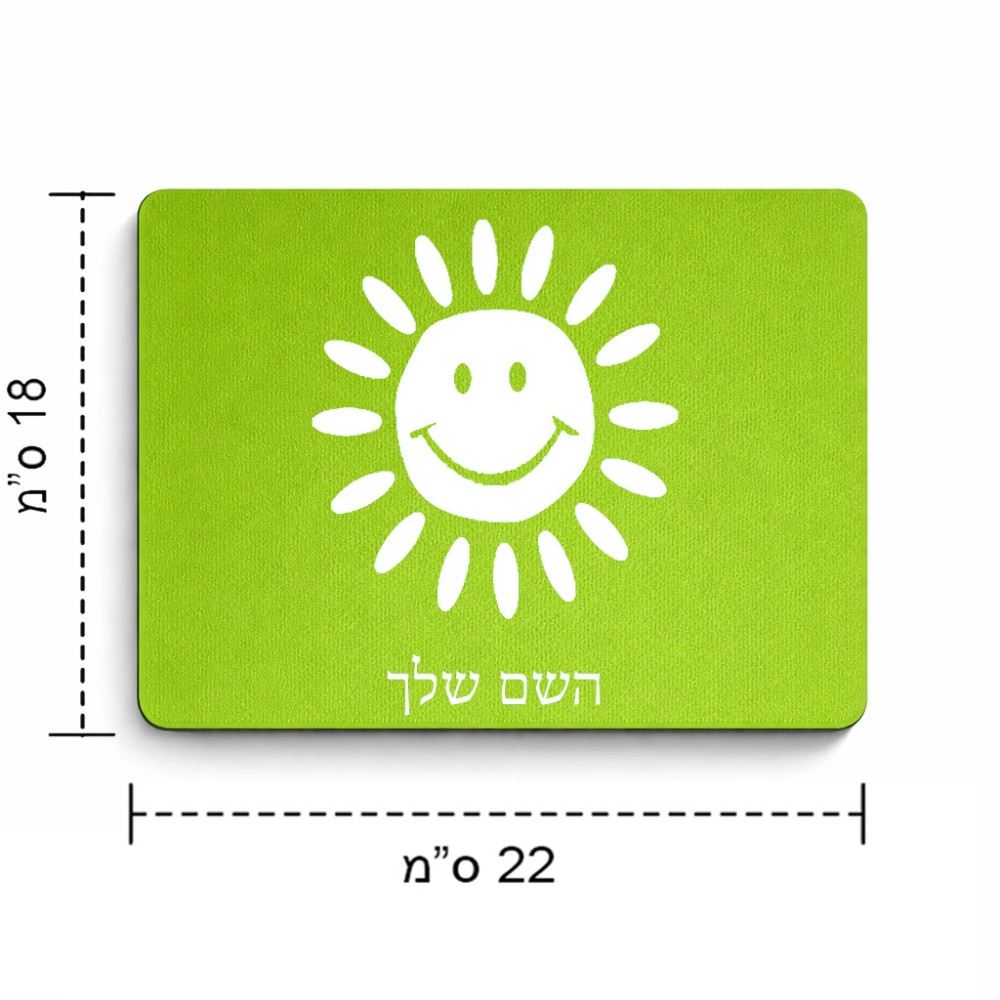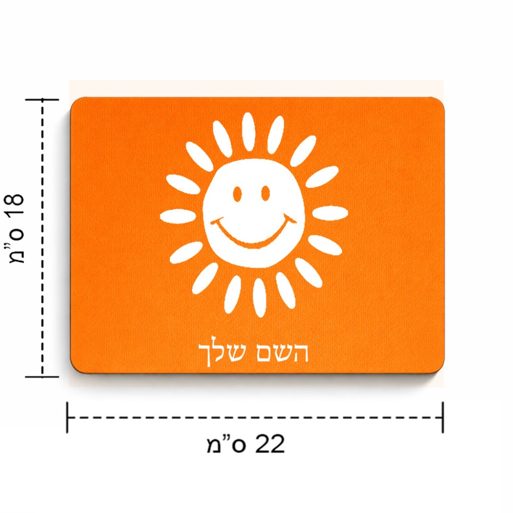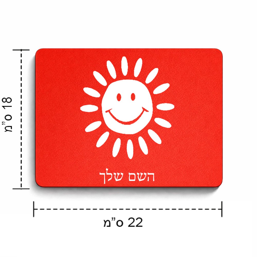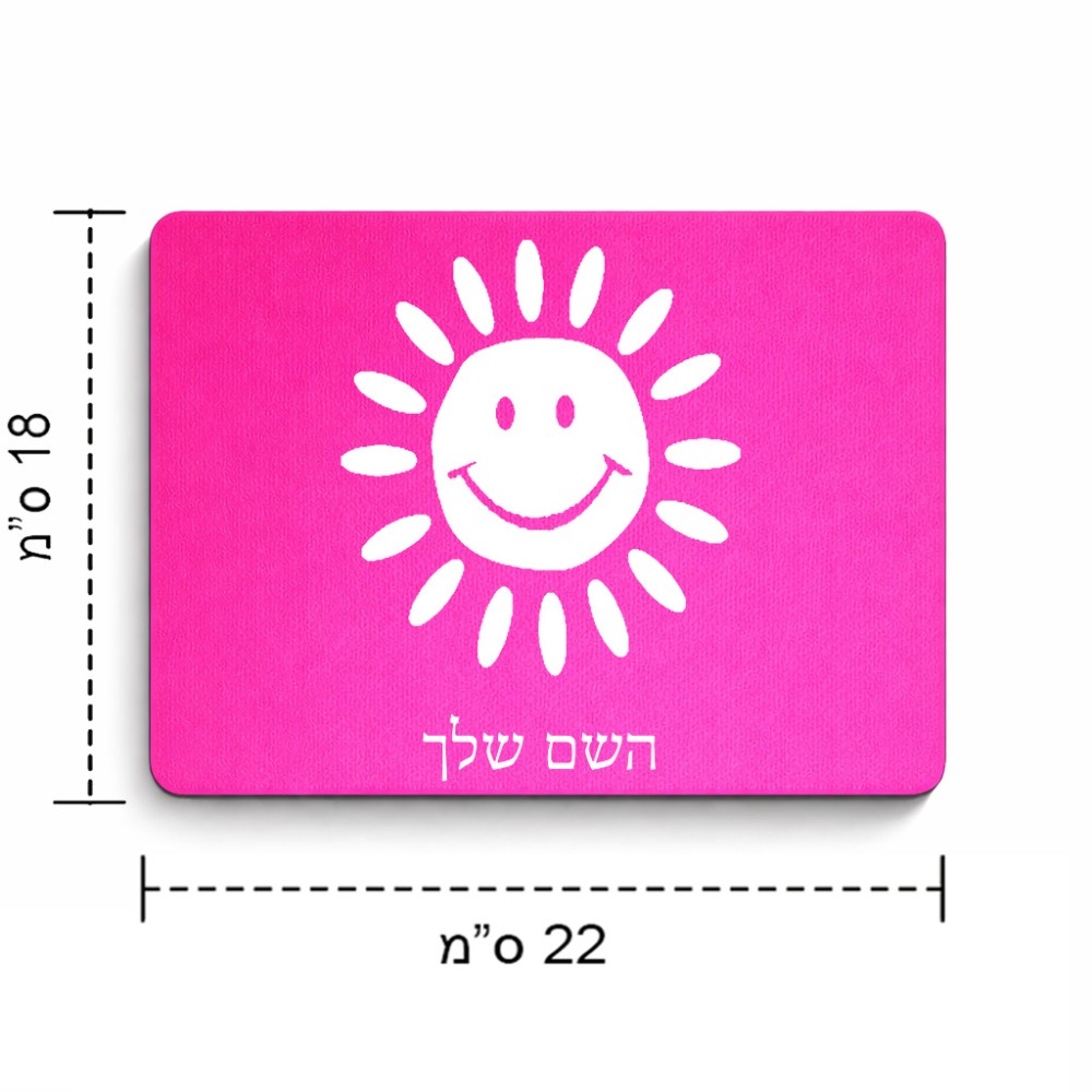 פד לעכבר בעיצוב אישי עם השם שלך בעיצוב שמש גודל הפד 22 × 18 ס"מ. את השם המבוקש ניתן לציין בהזמנה, אם לא צויין אנחנו ניצור קשר לבירור.
