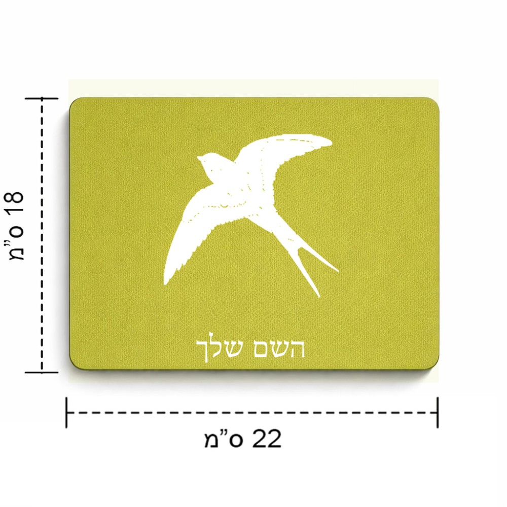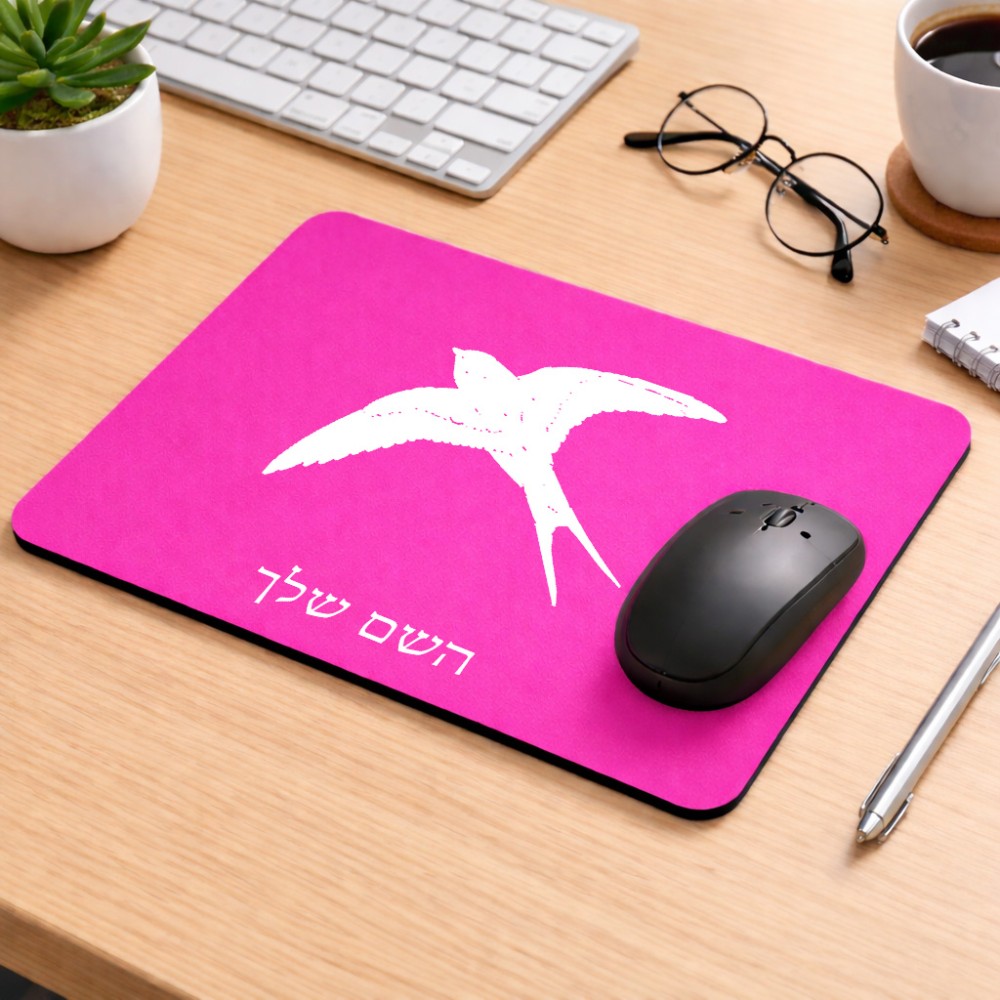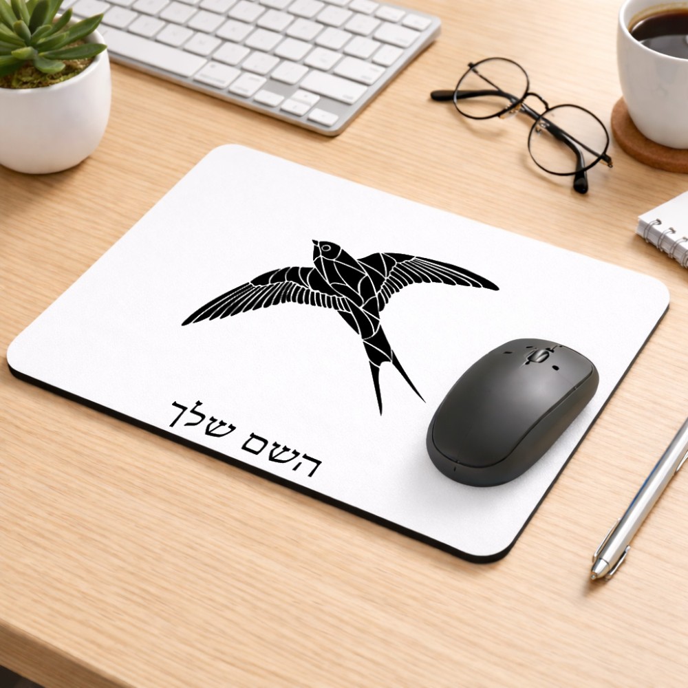 פד לעכבר בעיצוב אישי עם השם שלך בעיצוב לבלוע גודל הפד 22 × 18 ס"מ. את השם המבוקש ניתן לציין בהזמנה, אם לא צויין אנחנו ניצור קשר לבירור.