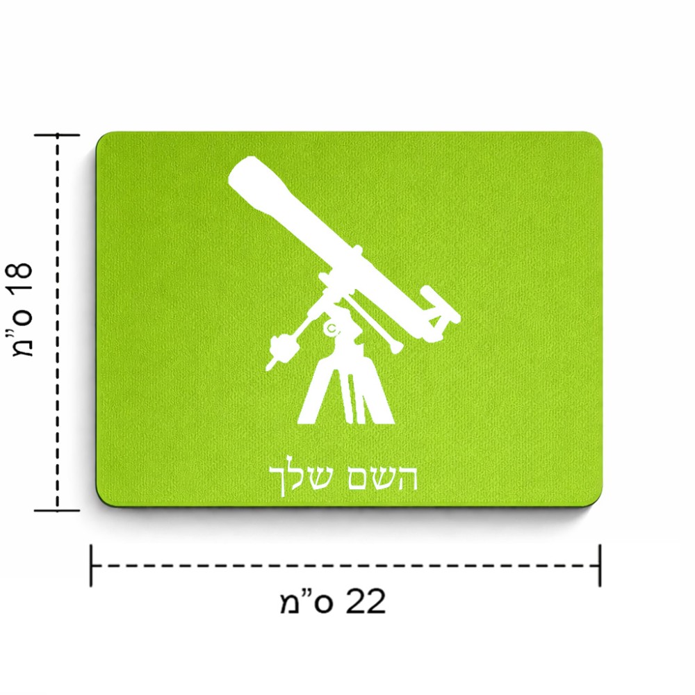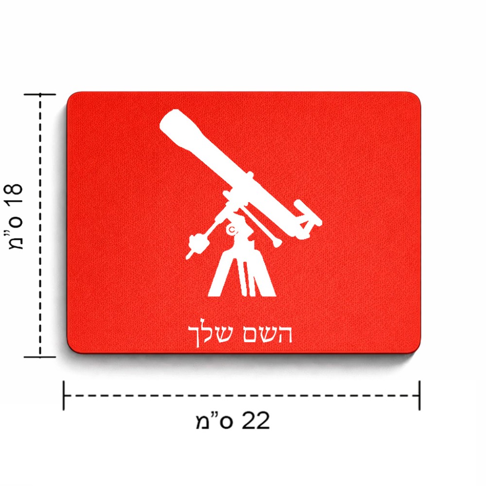 פד לעכבר בעיצוב אישי עם השם שלך בעיצוב טלסקופ גודל הפד 22 × 18 ס"מ. את השם המבוקש ניתן לציין בהזמנה, אם לא צויין אנחנו ניצור קשר לבירור.
