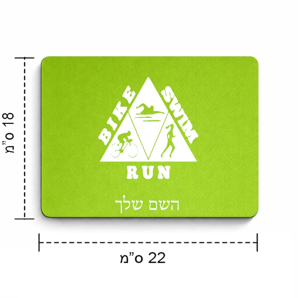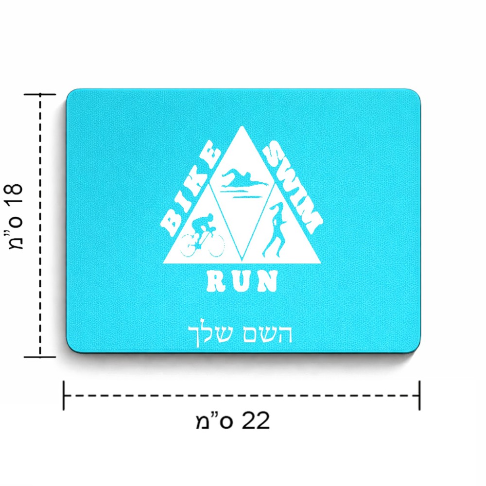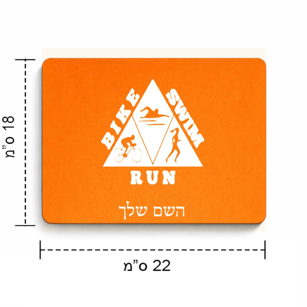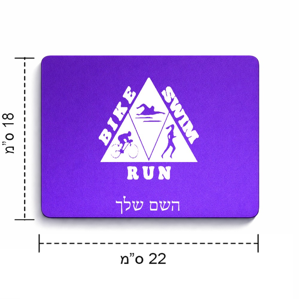 פד לעכבר בעיצוב אישי עם השם שלך בעיצוב טריאתלון גודל הפד 22 × 18 ס"מ. את השם המבוקש ניתן לציין בהזמנה, אם לא צויין אנחנו ניצור קשר לבירור.