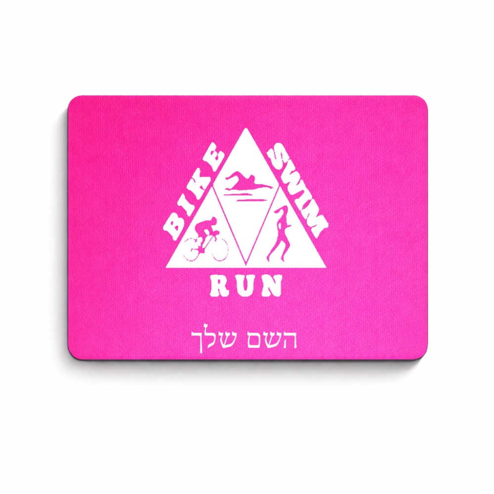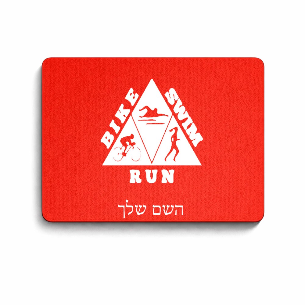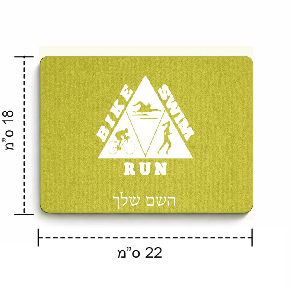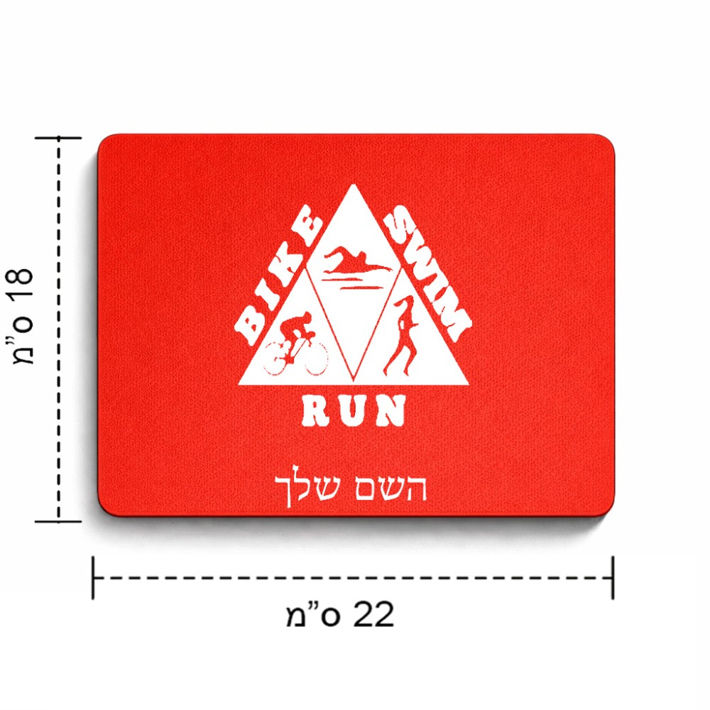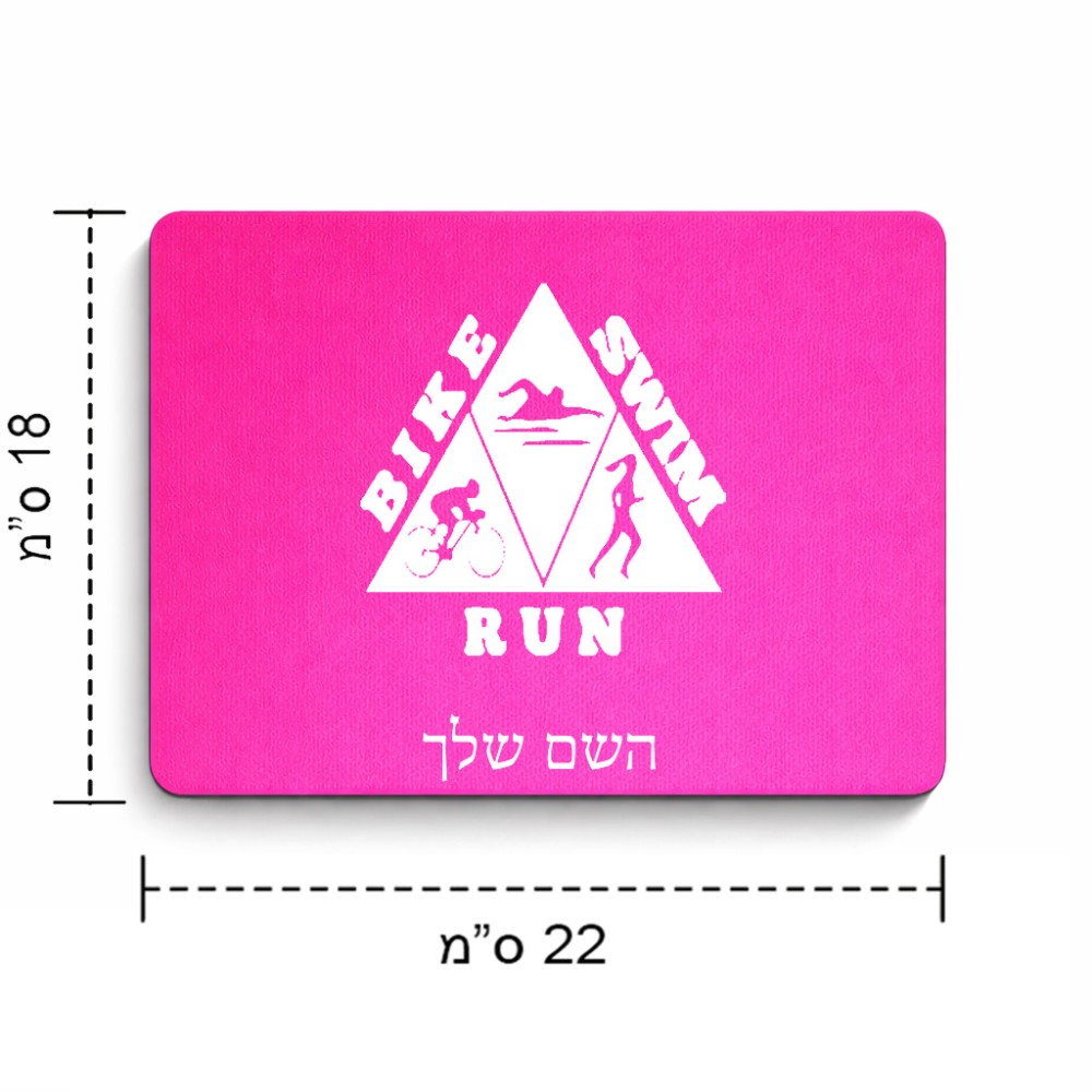 פד לעכבר בעיצוב אישי עם השם שלך בעיצוב טריאתלון גודל הפד 22 × 18 ס"מ. את השם המבוקש ניתן לציין בהזמנה, אם לא צויין אנחנו ניצור קשר לבירור.