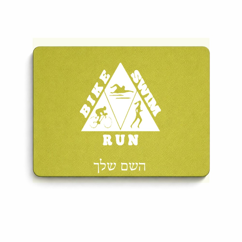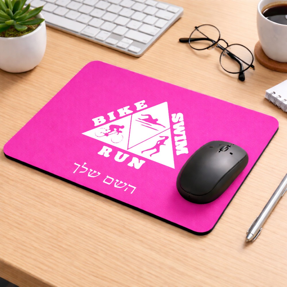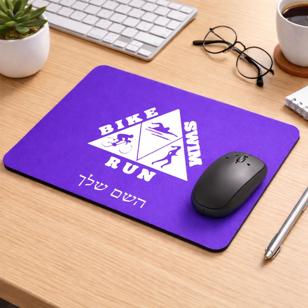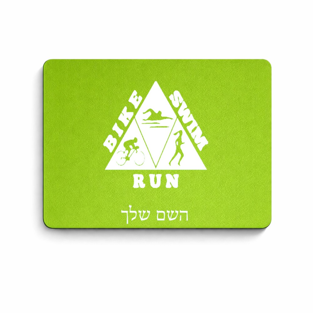 פד לעכבר בעיצוב אישי עם השם שלך בעיצוב טריאתלון גודל הפד 22 × 18 ס"מ. את השם המבוקש ניתן לציין בהזמנה, אם לא צויין אנחנו ניצור קשר לבירור.