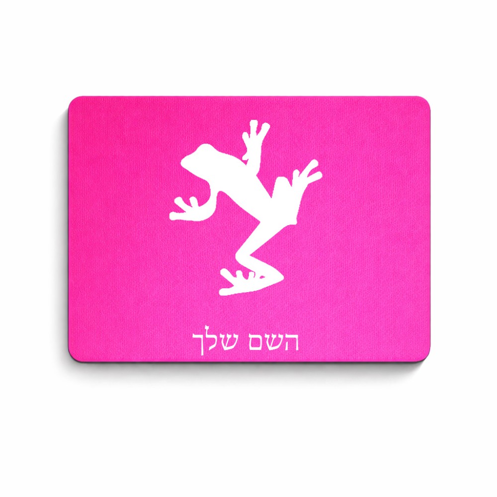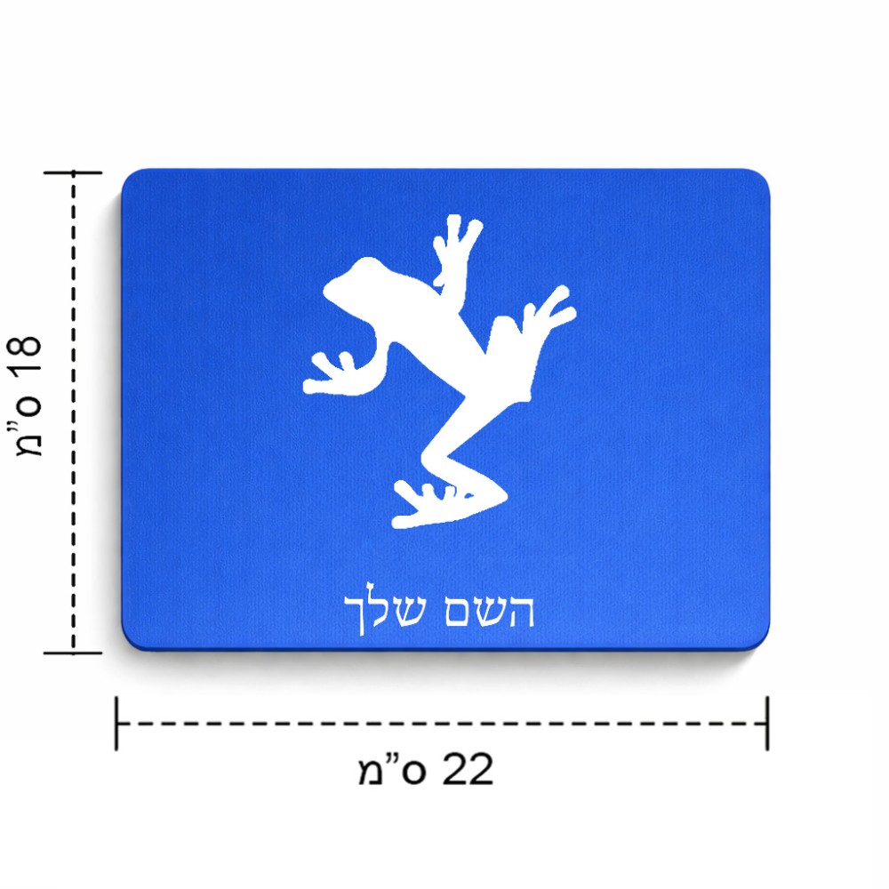 פד לעכבר בעיצוב אישי עם השם שלך בעיצוב צפרדע טרופית גודל הפד 22 × 18 ס"מ. את השם המבוקש ניתן לציין בהזמנה, אם לא צויין אנחנו ניצור קשר לבירור.