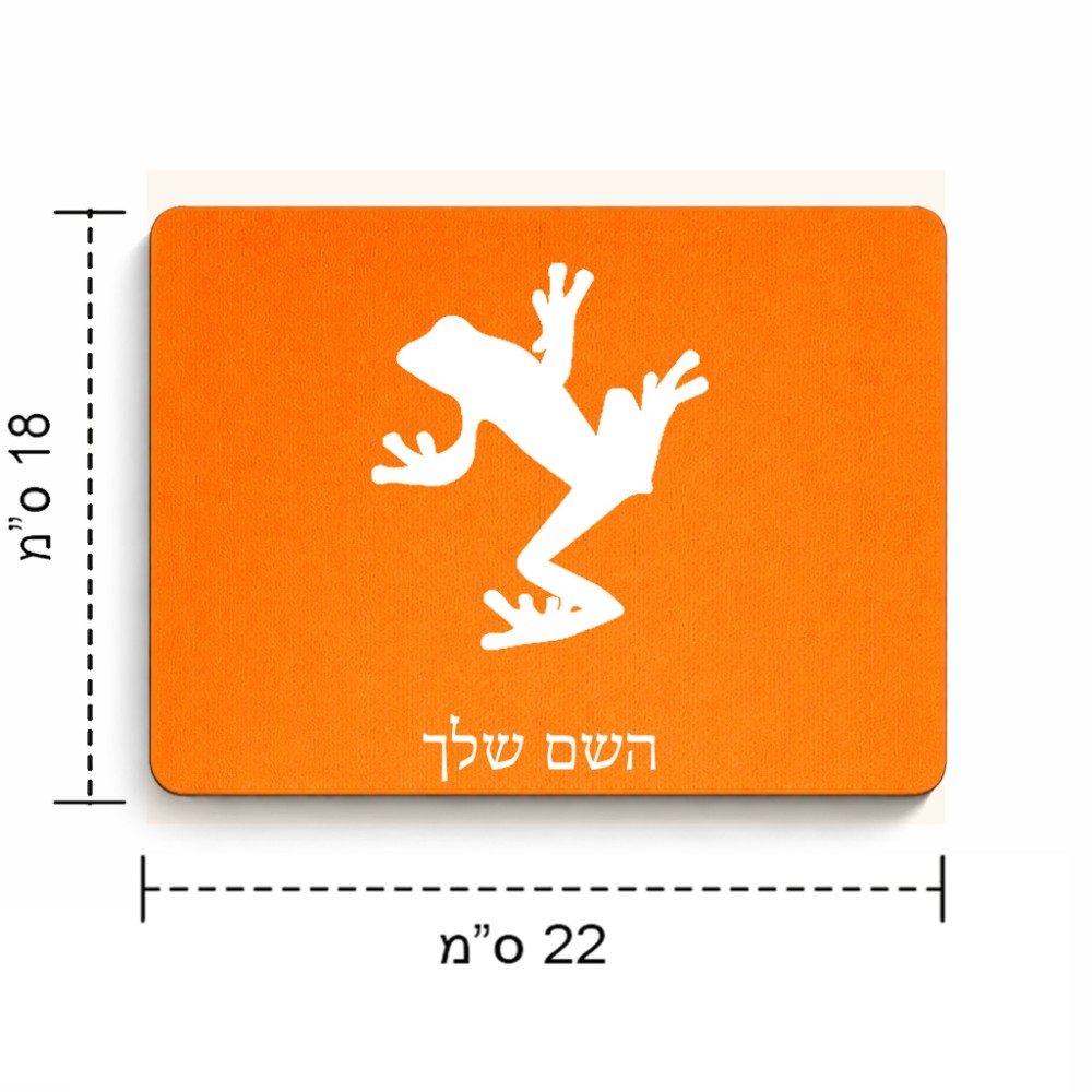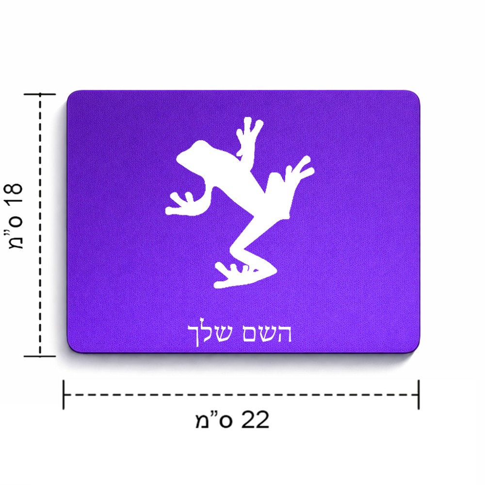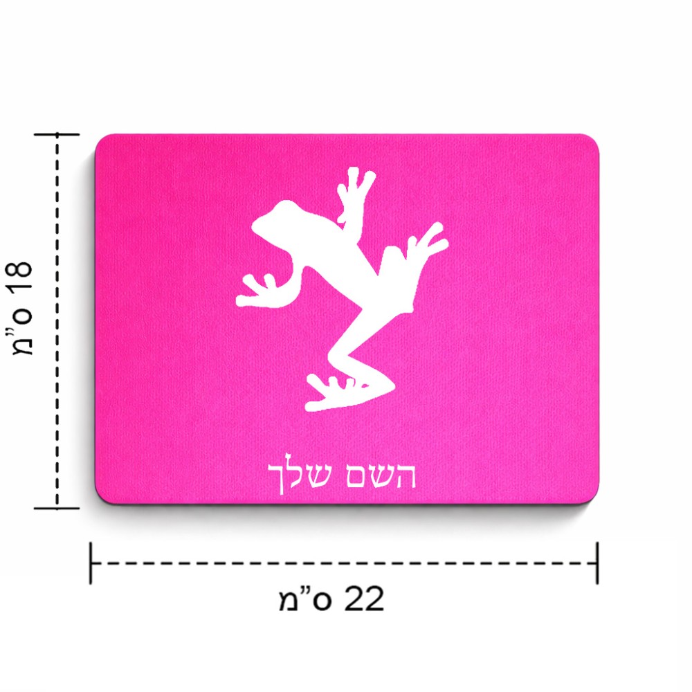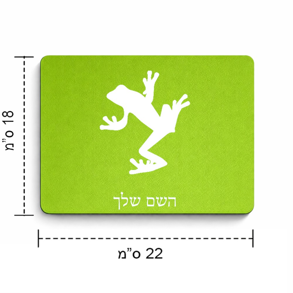 פד לעכבר בעיצוב אישי עם השם שלך בעיצוב צפרדע טרופית גודל הפד 22 × 18 ס"מ