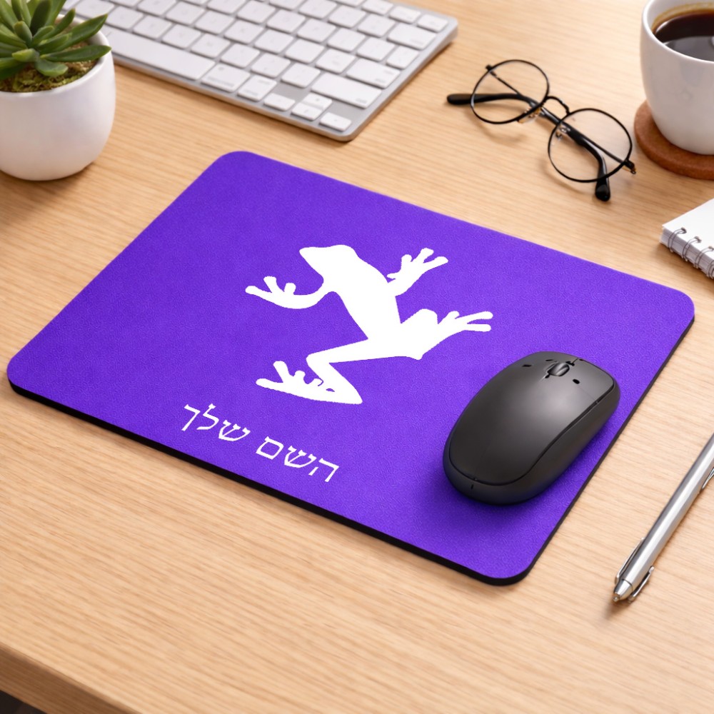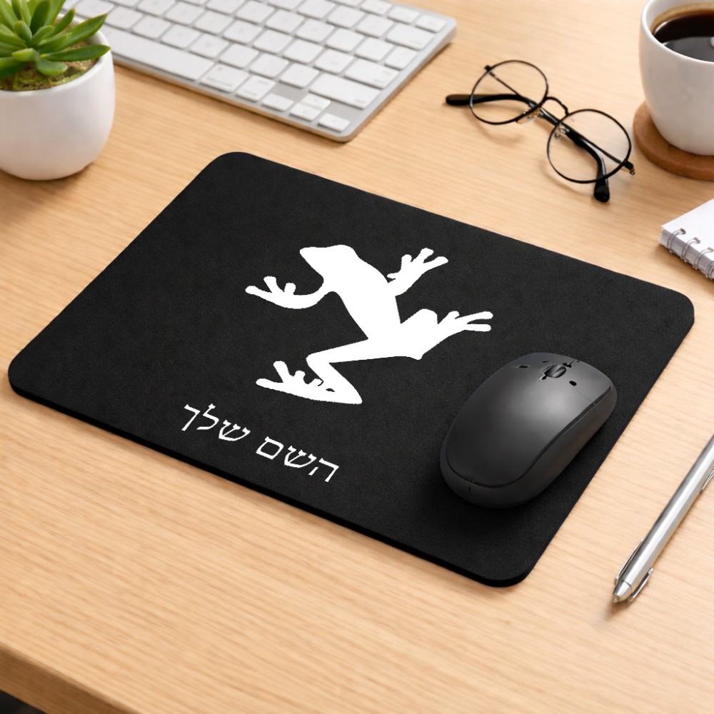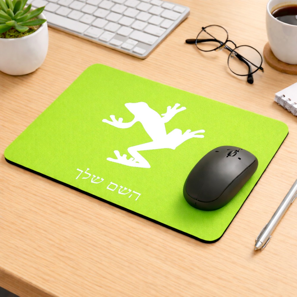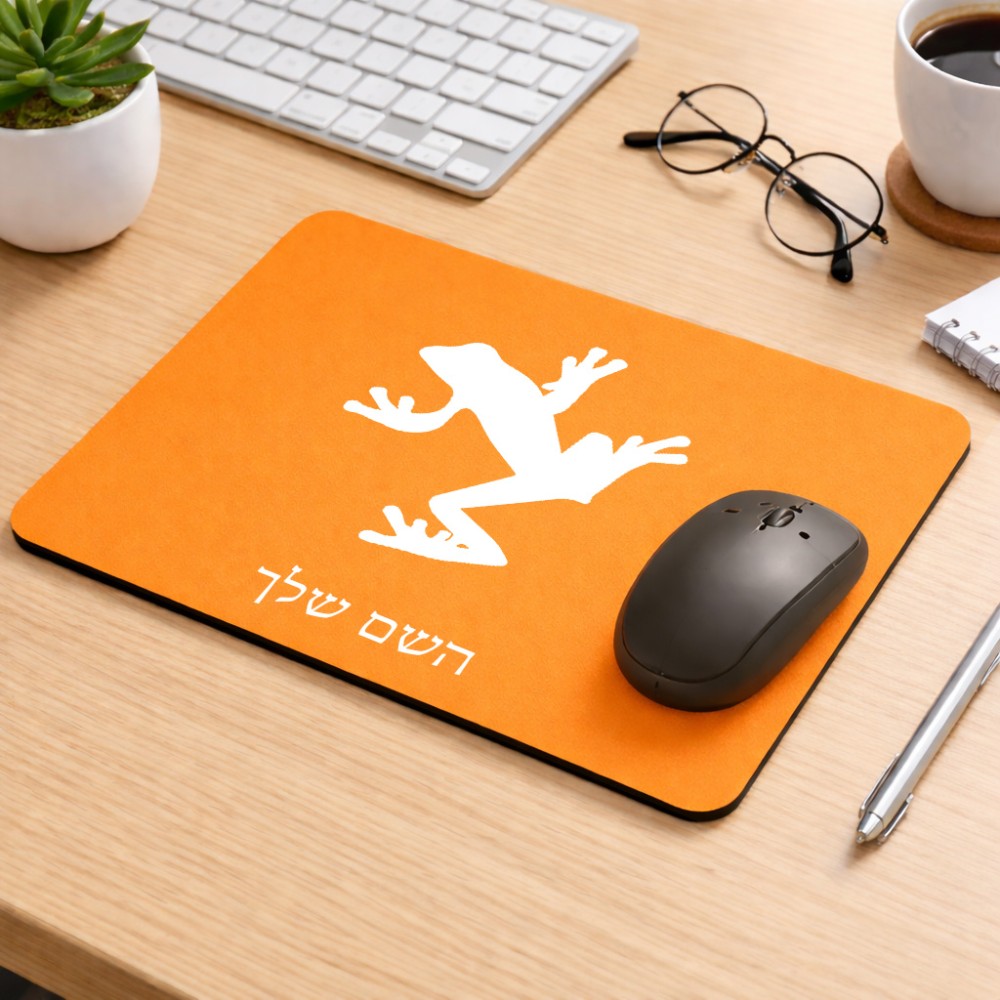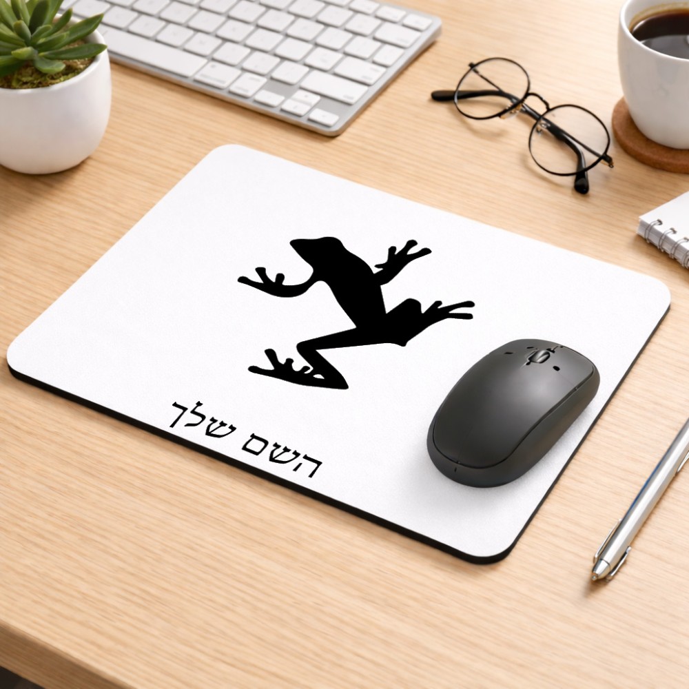 פד לעכבר בעיצוב אישי עם השם שלך בעיצוב צפרדע טרופית גודל הפד 22 × 18 ס"מ