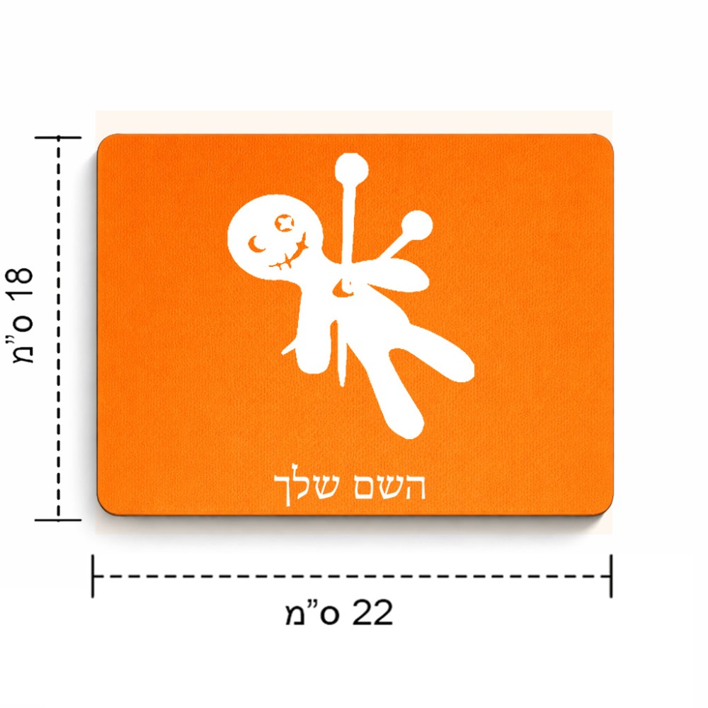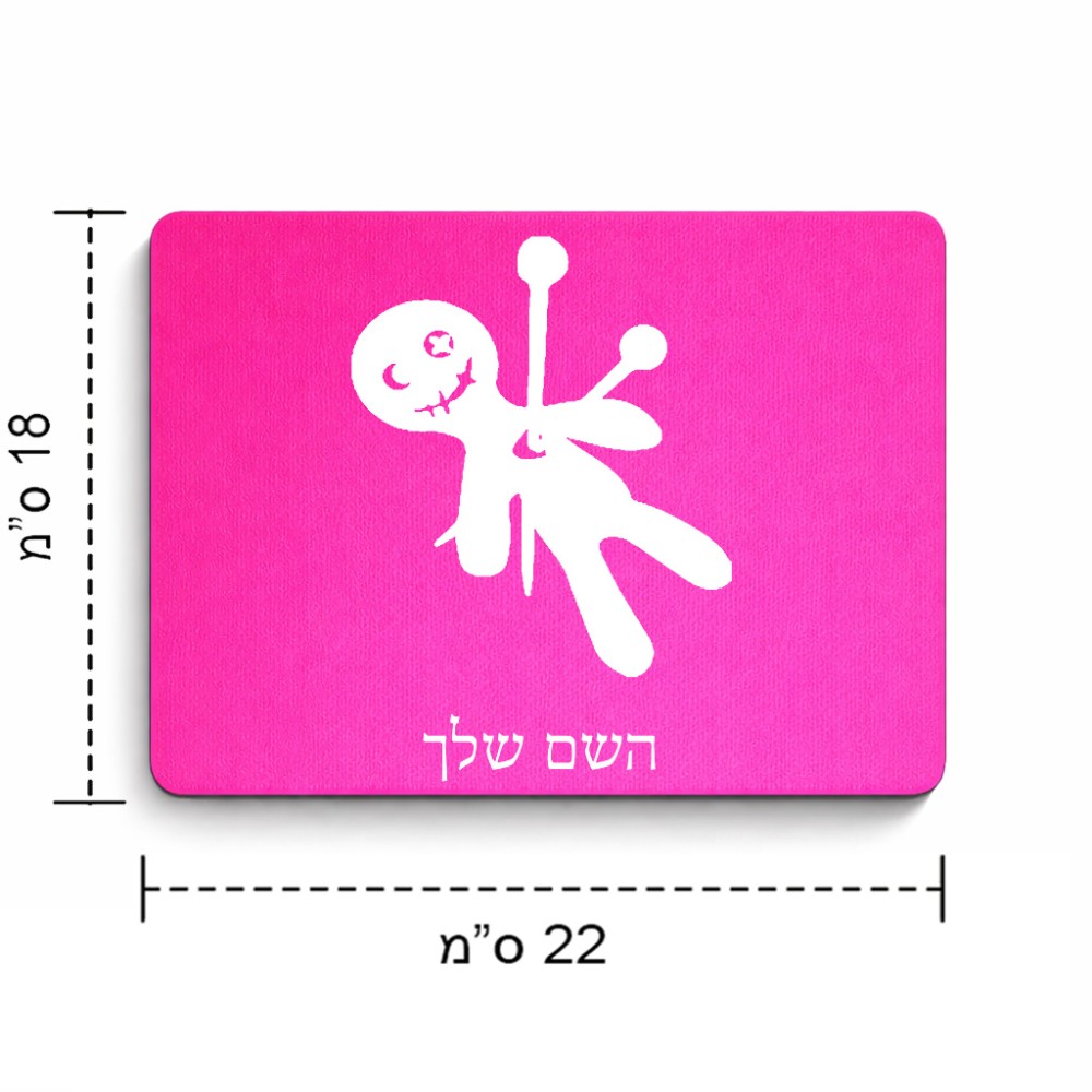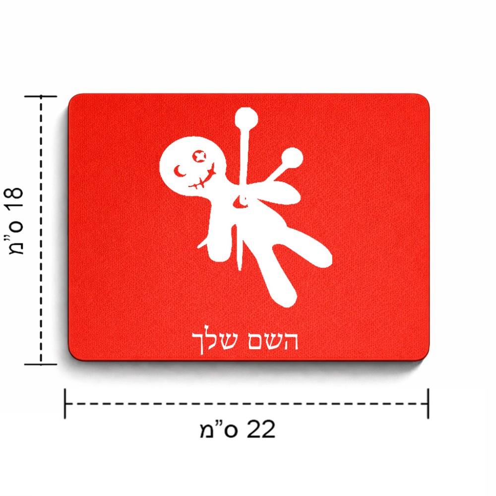 פד לעכבר בעיצוב אישי עם השם שלך בעיצוב וודו גודל הפד 22 × 18 ס"מ. את השם המבוקש ניתן לציין בהזמנה, אם לא צויין אנחנו ניצור קשר לבירור.