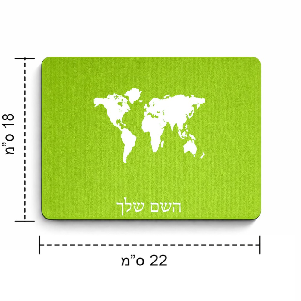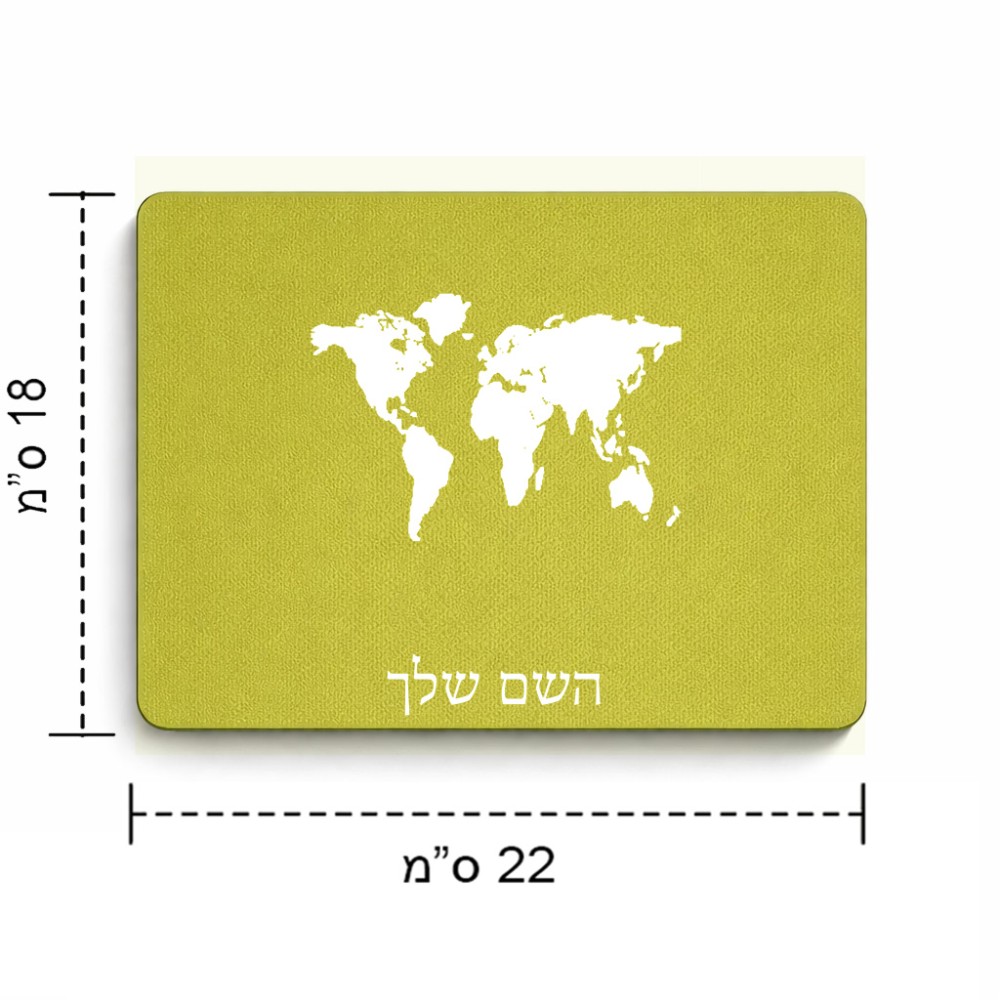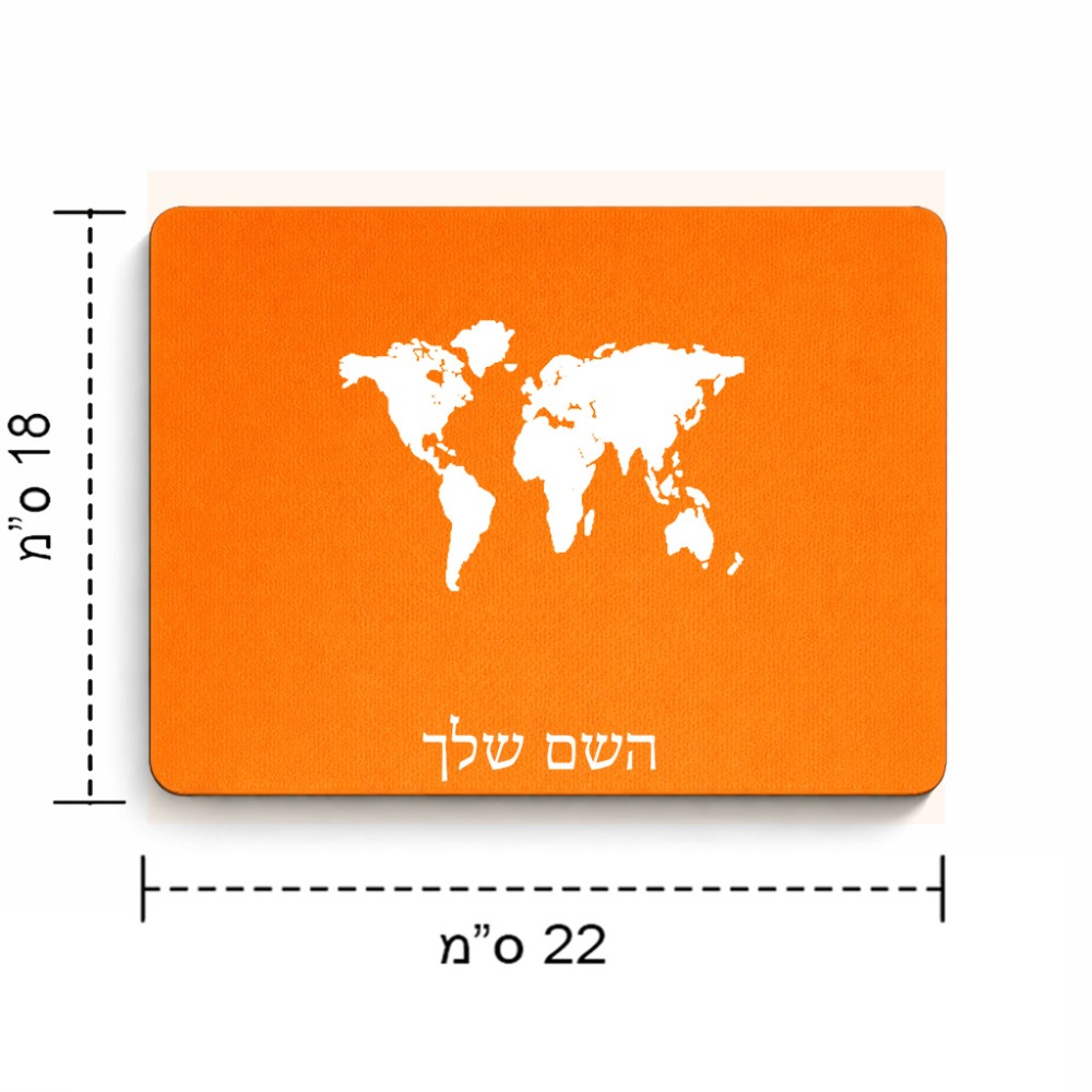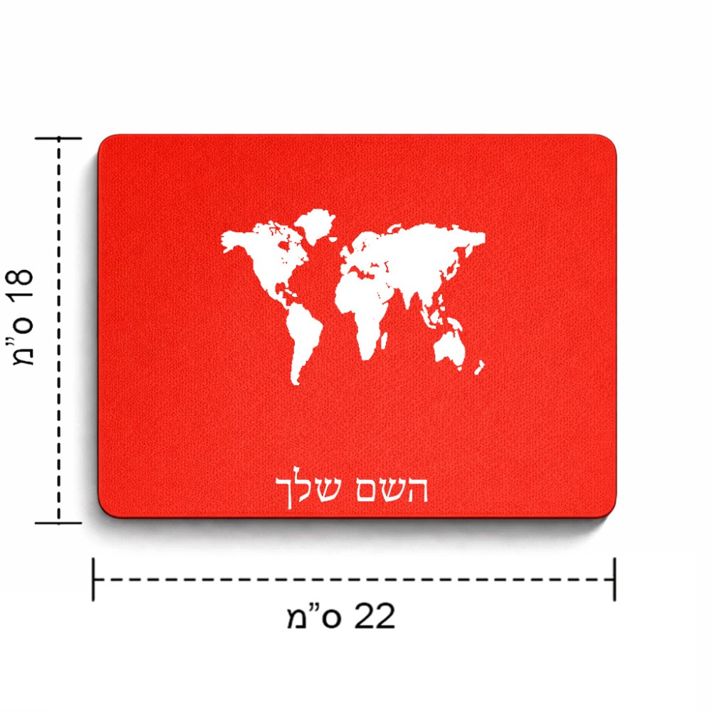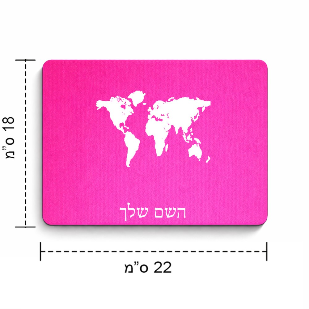 פד לעכבר בעיצוב אישי עם השם שלך בעיצוב מפת העולם גודל הפד 22 × 18 ס"מ. את השם המבוקש ניתן לציין בהזמנה, אם לא צויין אנחנו ניצור קשר לבירור.