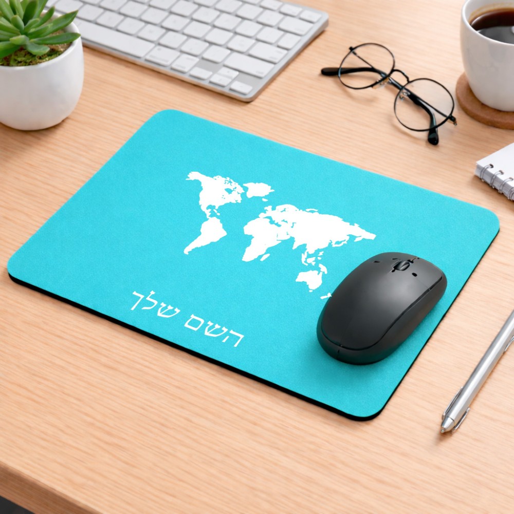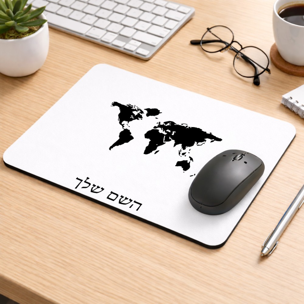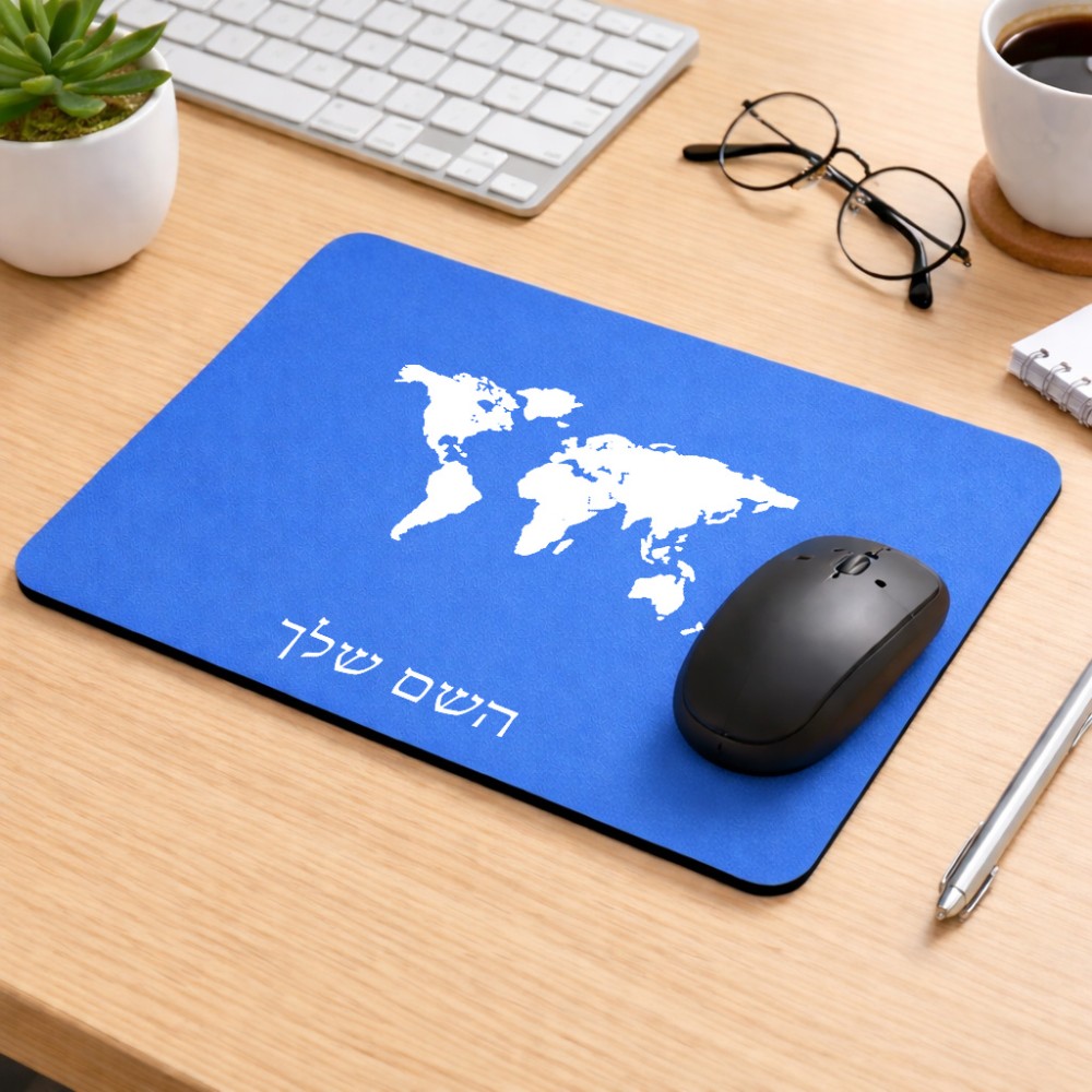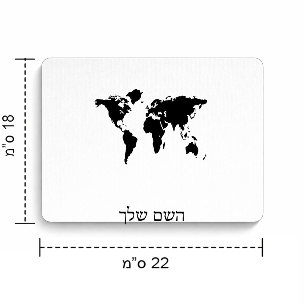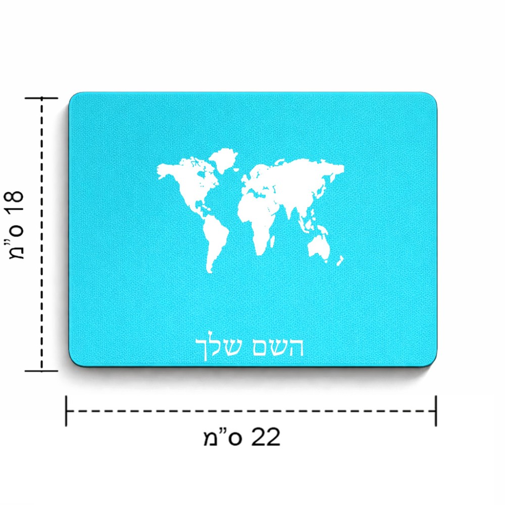 פד לעכבר בעיצוב אישי עם השם שלך בעיצוב מפת העולם גודל הפד 22 × 18 ס"מ. את השם המבוקש ניתן לציין בהזמנה, אם לא צויין אנחנו ניצור קשר לבירור.