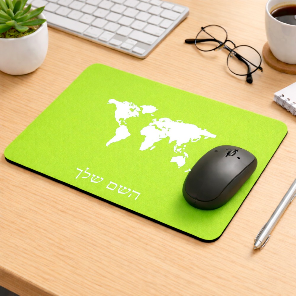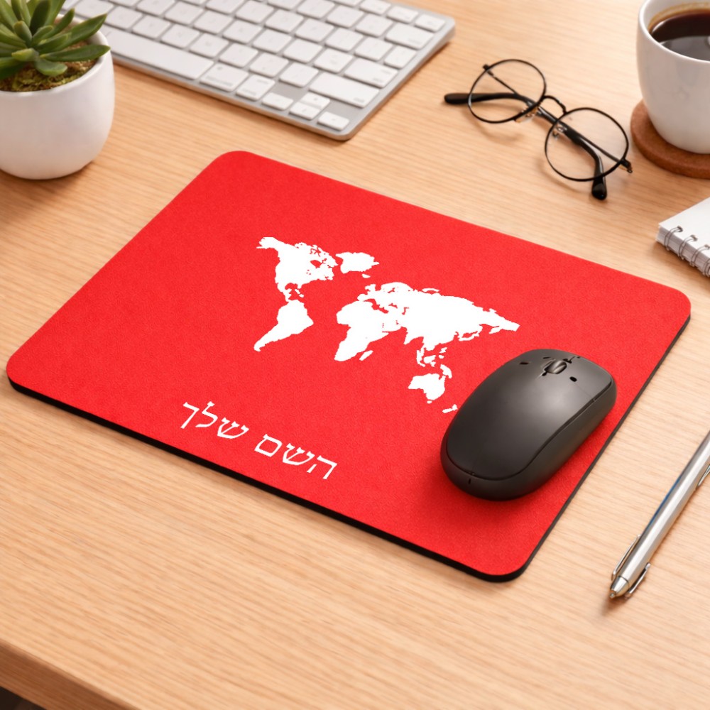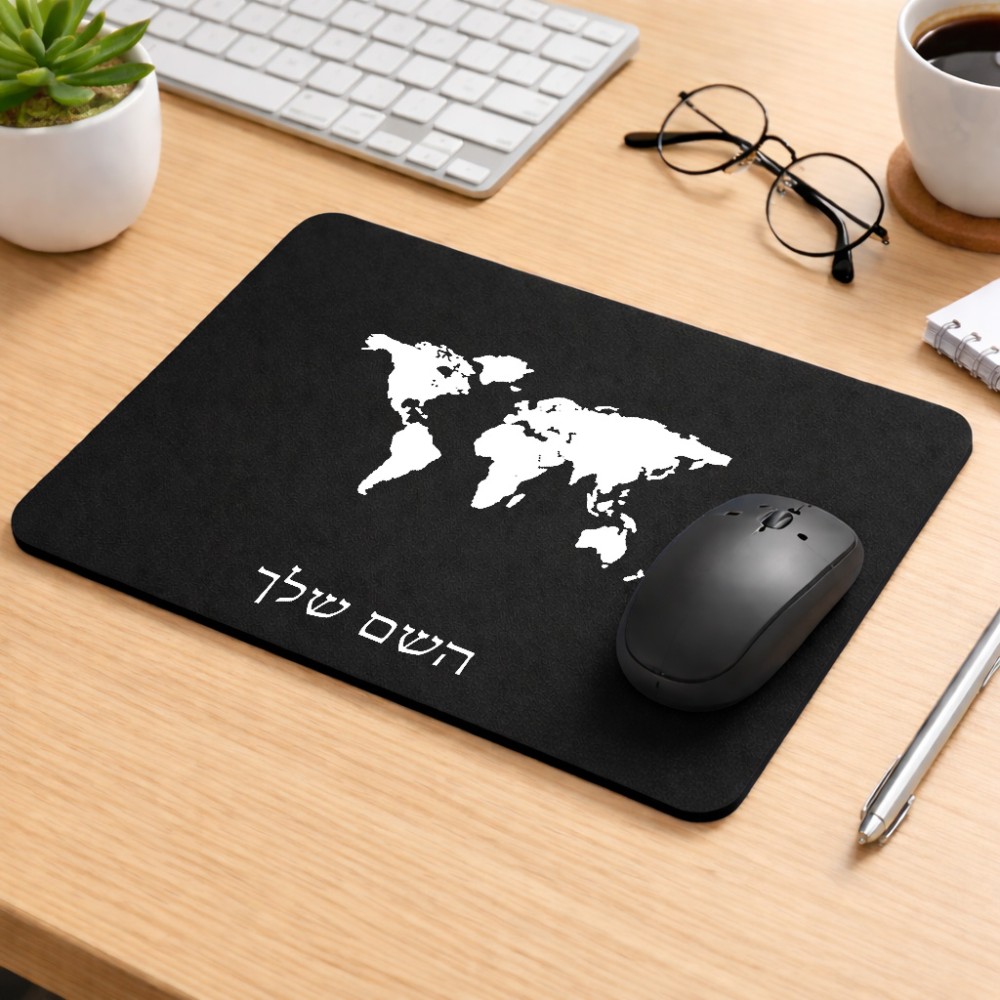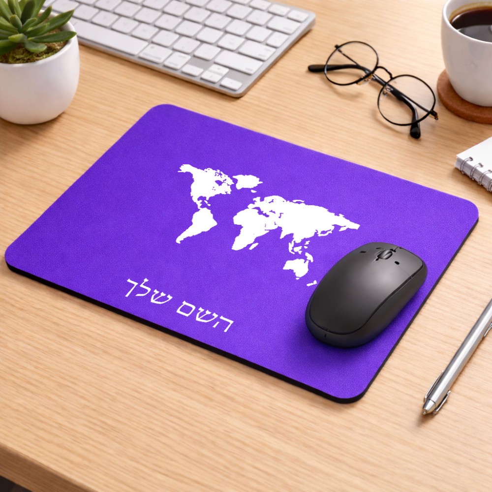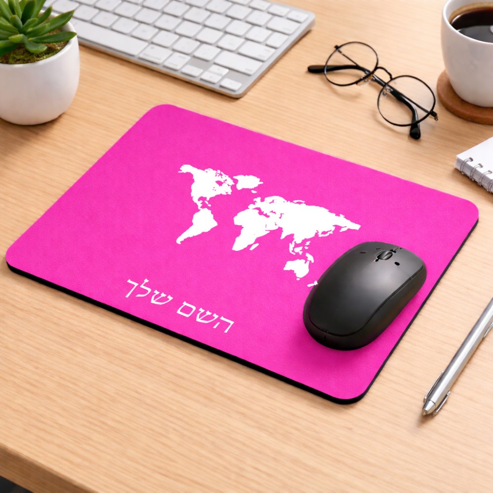 פד לעכבר בעיצוב אישי עם השם שלך בעיצוב מפת העולם גודל הפד 22 × 18 ס"מ. את השם המבוקש ניתן לציין בהזמנה, אם לא צויין אנחנו ניצור קשר לבירור.